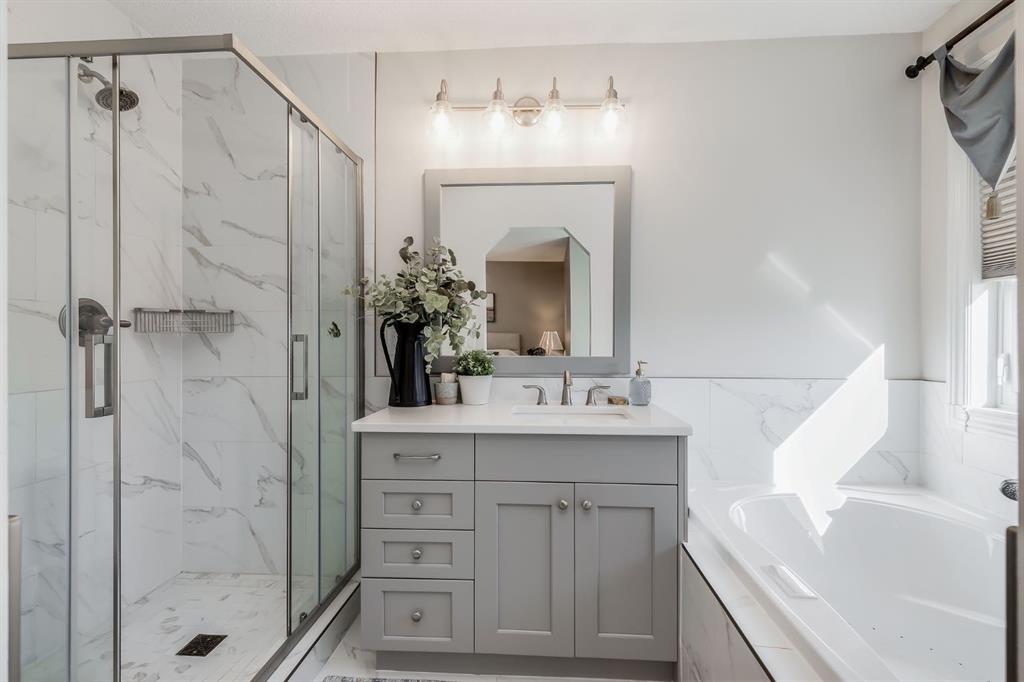 OPEN HOUSE - SAT OCT 25th 2:00 - 4:00pm. *** This EXCEPTIONAL Home was Stunningly Updated with incredible care and attention to every detail, and BACKS ONTO WOODSIDE GOLF COURSE which provides beautiful views for you to enjoy year round. When you arrive you are welcomed by the Front Porch with New Exterior Door, and will be impressed with the Cathedral Ceilings with Extra Windows in the Foyer and Spacious Front Living Room making it an inviting space. The Luxury Vinyl Plank Flooring leads you to a Large Dining Room, and expands to the Family Room that Features a Built in Wall Unit that surrounds the Fireplace, an incredible Picture Window for you to enjoy the views of the Golf Course, and the elegant touch of Upgraded Electric Blinds. The Gorgeous Dream Kitchen features EKKO Kitchen Cabinetry with Crown Mouldings that includes a Lifetime Warranty, an abundance of Pot and Pan Drawers, Corner Pantry, Modern Lighting with Potlights, Stainless Steel Appliances, Backsplash Tiling, Quartz Countertops, a Great Island with lots of storage and extra seating, and another Large Window for you to enjoy the views while you cook. The Main Level also has a Mudroom with Cabinetry, and a Half Bath. The lovely Staircase with Metal Railing leads to the Upper Level that features a Large Primary Bedroom that can fit a King Suite, a Walk in Closet, Sitting Area to enjoy a book, and the Updated Oasis Ensuite with New Vanity, Glass Shower and Air Jetted Jacuzzi Tub. Two Additional Spacious Bedrooms and a Full Bathroom complete the upper level. The Lower Level has a Huge Recreation Room with a Fireplace, the 4th Bedroom with large walk in closet, and 3 pc Bathroom. This amazing Home includes: TRIPLE PANE WINDOWS, Upgraded Lighting throughout, High Efficiency Furnace (2015), Reverse Osmosis System, Water Softener, Underground Sprinklers, Air Conditioning, Singles (2023), and Exterior Doors. The Yard has been lovingly tended and cared for with many perennials and shrubs, a rebuilt 2 Tiered Deck for you to enjoy the yard and views (2018), and an established Apple tree. The Garage has been insulated and drywalled. This Incredible Home is located close to the Golf Course that has excellent Dining, Schools, Transportation, and has easy access to QE2. Come and see this Beauty and Make it Yours.