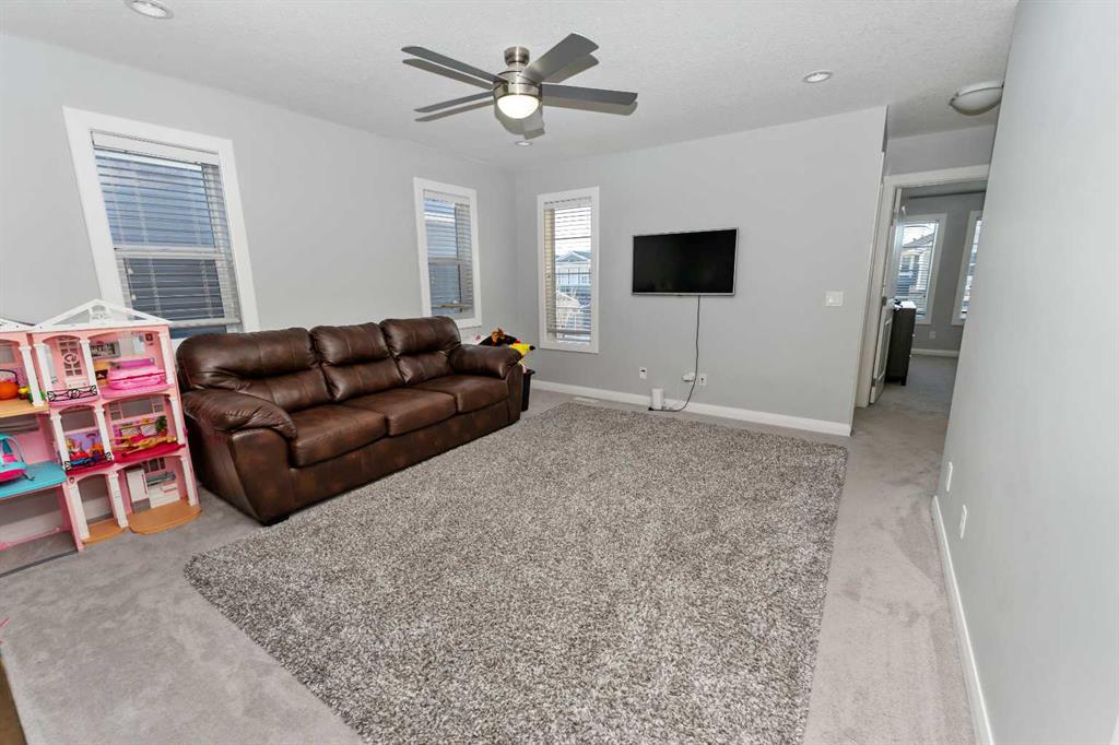 Welcome to 73 Redstone Link NE—a stunning, move-in ready residence offering over 3,000+ sq. ft. of developed living space! This impeccably maintained home impresses from the moment you arrive with its modern curb appeal and stone accents. The main floor features an open-concept layout with durable flooring, a dedicated home office, and a cozy living room centered around a floor-to-ceiling stone gas fireplace. The gourmet kitchen is a chef’s dream, boasting dark cabinetry, a massive granite island, stainless steel appliances with a built-in wall oven, and a walk-through pantry. Upstairs, you will find a rare and highly sought-after layout featuring FOUR spacious bedrooms plus a central bonus room. The primary retreat is a true sanctuary, complete with a walk-in closet and a spa-like 5-piece ensuite. The fully finished illegal basement Suite adds incredible value with a second kitchen, a large rec room, a 4-piece bath, and two additional bedrooms—perfect for extended family or guests. Enjoy the fully fenced backyard with a large deck, ideal for summer hosting. Additional features include a full camera security system, included with the property for added peace of mind. Located just minutes from parks, shopping, and easy access to Stoney Trail. This is the ultimate family home!