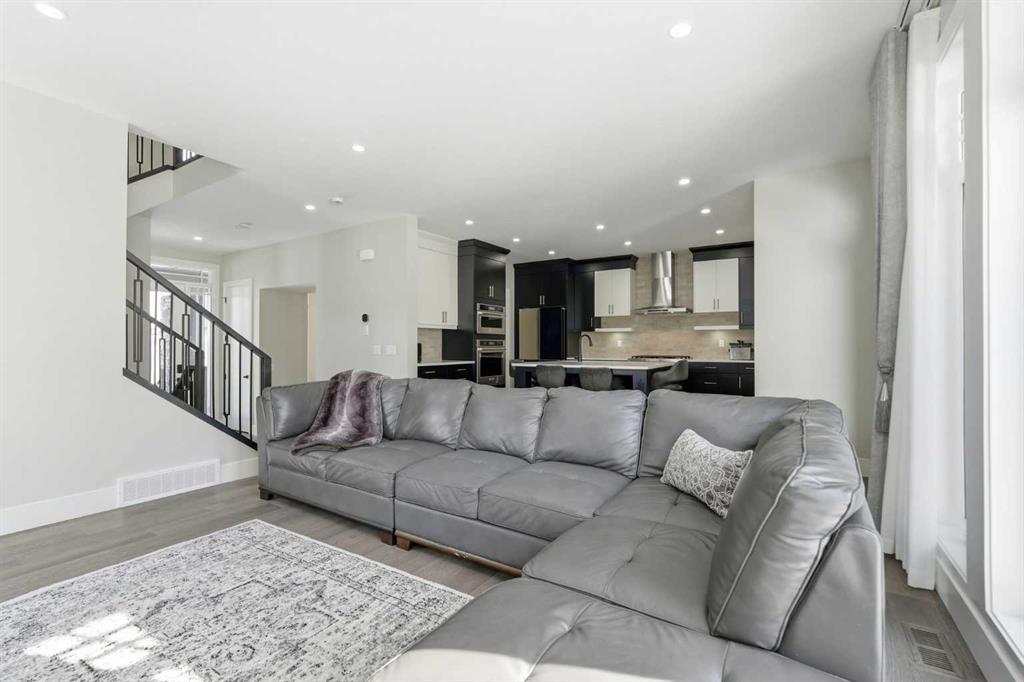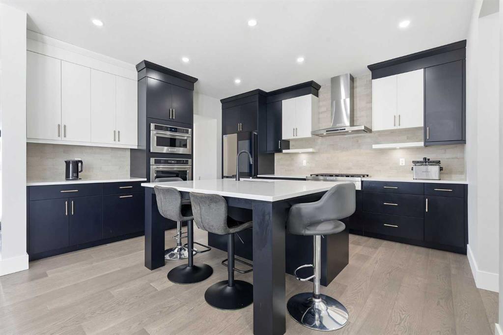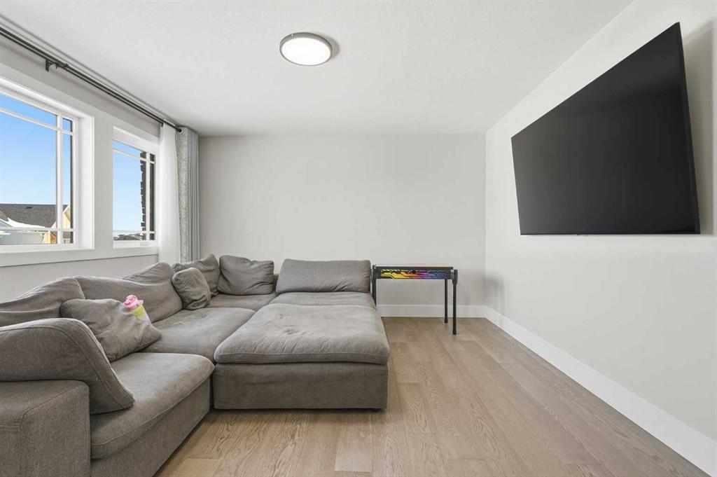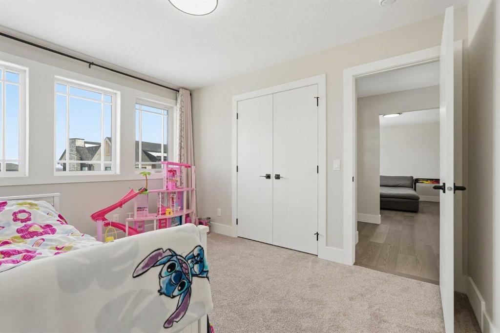 Discover your dream home in this 2025 build Foursquare style design, blending timeless character with a practical layout, thoughtful details, and PARK-FRONT Living! Located in one of Calgary's newest community, Alpine Park, this home features a symmetrical design, 5 BEDROOMS and a welcoming covered front porch, making it a perfect spot to relax while watching the kids play in the front park. With over 3,500 sf of finished space, this layout is both functional and beautiful. The exterior is finished with HARDIE BOARD siding and brick, while inside, warm hardwood floors, and elevated ceilings bring comfort and style together. The kitchen is fitted with quartz counters, a spacious potential walk-through pantry, stainless steel appliances including a GAS RANGE & built in oven, it flows seamlessly into the living room featuring expansive windows allowing the space to fill with natural light, highlighted by a stunning brick wall and gas fireplace. The semi-formal dining room with 10' ceilings makes for a more intimate overall dining experience with family/friends. Rounding out the main floor is the stunning office/flex room with four large windows with great views of the park. Upstairs offers three generously sized bedrooms, and a bonus room - for gathering or retreat. The primary suite is a standout, complete with a freestanding tub, large tile shower, double vanities. It also features an impressive walk-in closet, and a thoughtful layout that adds everyday ease and flow. The fully finished basement expands the living space with two additional spacious bedrooms, 4pc bathroom, and a rec/media room. Additional highlights include a side covered porch w/ bbq gas line, REAR ATTACHED DOUBLE GARAGE, and the Alberta New Home Warranty. Plus easy access to the mountains, via Stoney trail, and just minutes from Costco, shopping, parks, schools, dining, and scenic walking paths!