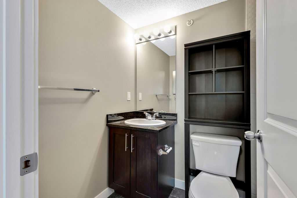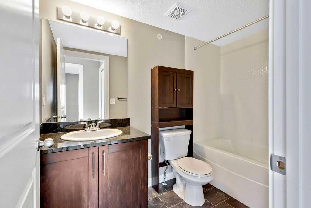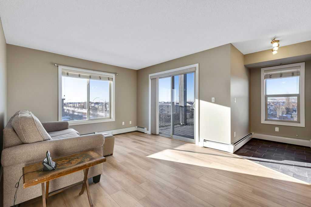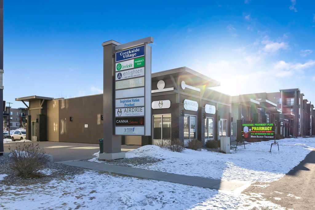 This TOP FLOOR two-bedroom, two-bathroom suite offers TWO Parking Stalls in Downtown Airdrie’s most desirable location, with beautiful southwest-facing views. With almost 1,000 square feet, the thoughtfully designed layout includes two spacious bedrooms plus a versatile den area. Recent upgrades include new carpeting, vinyl plank flooring, stainless steel appliances, and a custom 2” blind package, enhancing both comfort and style. The open-concept living space is bathed in natural light from expansive windows, creating a bright and welcoming atmosphere. Elegant kitchen features granite countertops, a breakfast island, soft-close cabinetry, and a dedicated dining area—perfect for everyday living and entertaining alike. The living room opens through patio doors to a generously sized balcony, ideal for hosting guests or simply enjoying the stunning views. The primary bedroom offers a private 3-piece ensuite, while the second bedroom is conveniently located near a full four-piece bathroom. Large foyer with an office nook and in-suite laundry adds further functionality. This well-appointed condo includes one titled underground parking stall and one above-ground surface stall. With numerous upgrades and a walkable location close to Sobeys, Good Earth Café, fitness facilities, shops, and transit, this is a true move-in-ready opportunity—simply settle in and enjoy.