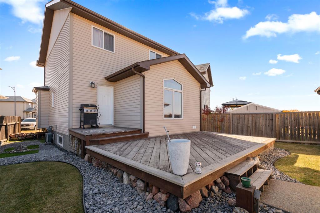 Welcome to this well taken care of 2 storey home on a triangle lot in West Park. You'll love the spacious front entry that invites you into this great property. The main floor boasts a large kitchen and dining area with vaulted ceilings, an Island and walk- in pantry perfect for gatherings or entertaining. A cozy gas fireplace in the living room adds warmth and charm, while the convenience of main floor laundry and a 2 piece bathroom makes daily living easy. Upstairs, you'll find 3 comfortable bedrooms, including a primary suite with double closets and a 3 piece ensuite. The fully finished basement provides tons of storage, 2 piece bathroom, and recreation room ideal for movie nights. Outside enjoy summer evenings around the firepit, with no houses behind for added privacy. The property also features a double detached heated garage, front stone accents, and a partially fenced yard. With paved back alley - there is space for additional parking or small trailer. Don't miss the chance to make it yours.