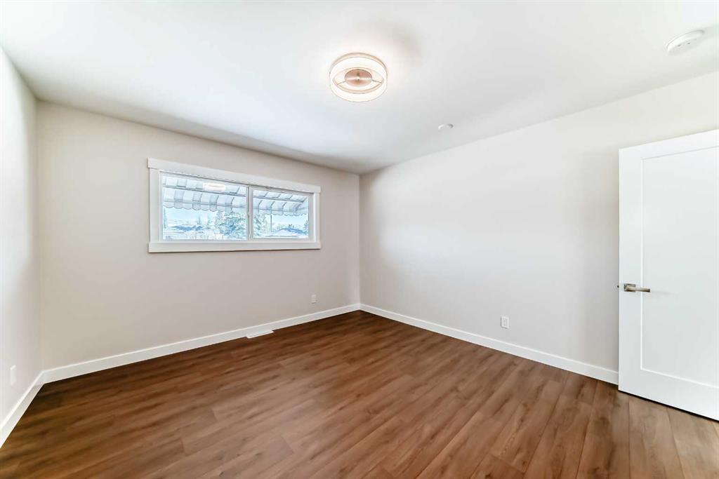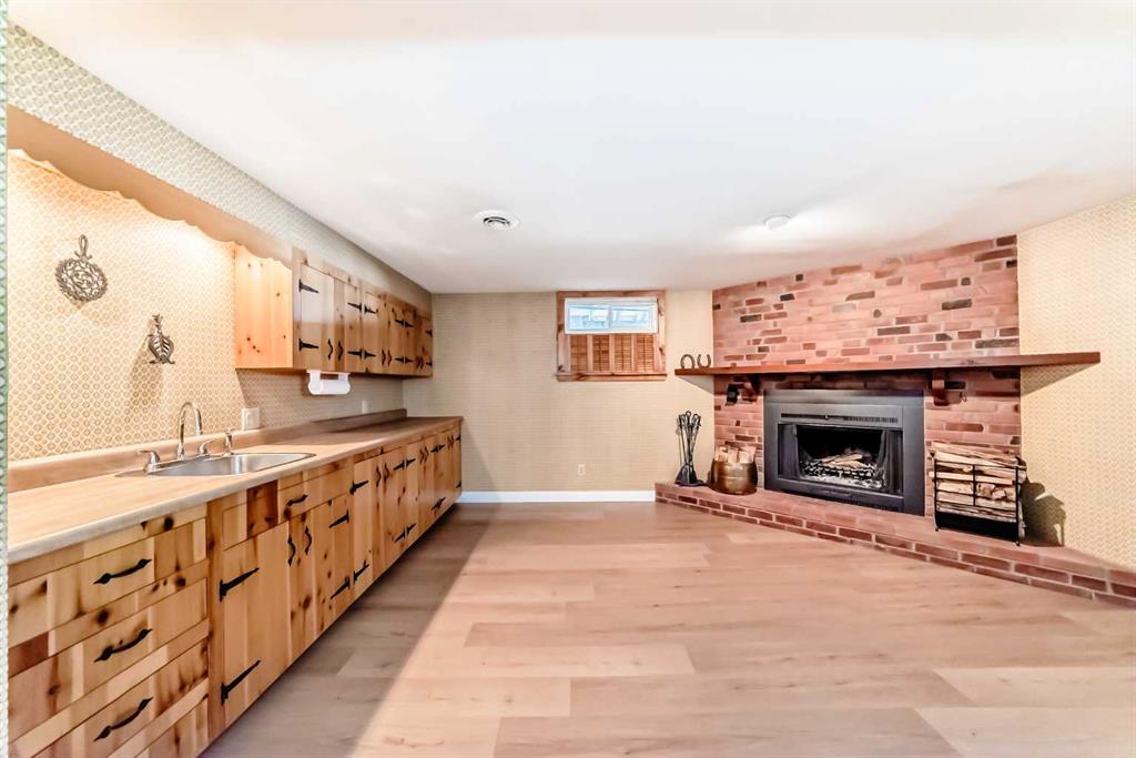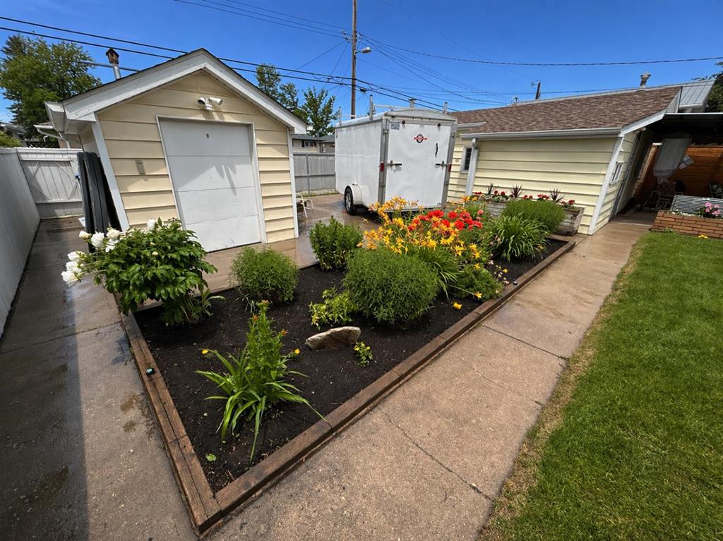 Having just undergone a comprehensive renovation, this spacious bungalow offers over 2,300 square feet of living space and feels remarkably close to a brand new home! With a new kitchen, flooring, lighting, updated wiring and electrical panel, two furnaces, hot water tank, roof shingles, and more, it is truly move-in ready. Proudly owned and enjoyed by the same family for 65 years, this home is ready to welcome its next chapter. The main level features brand new luxury vinyl plank flooring and a bright, stylish eat-in kitchen with crisp white shaker cabinets, granite countertops, and stainless steel appliances. The adjoining flex space has served as a formal dining room for decades but can easily adapt to suit your needs. At the front of the home, the living room is filled with natural light from a large east-facing window, creating the perfect setting to enjoy your morning coffee by the cozy gas fireplace. Three bedrooms complete the main floor, all served by a five-piece bathroom with dual sinks. One of the bedrooms includes a sliding door with access to the composite deck, where you can relax under the natural gas heater and take in views of the many birds that visit the backyard. The side door provides direct access to the lower level which offers a generous family room anchored by a charming brick wood-burning fireplace, along with a wet bar/summer kitchen featuring a beverage fridge and ample cabinetry. There is also a guest room, a full bathroom, laundry room, and plenty of storage space. Outside, the large west-facing backyard is mature and beautifully maintained, complete with underground irrigation, garden beds, and a covered patio with custom lighting and lush vines - the ideal place to spend summer evenings! The oversized single garage accommodates one vehicle and includes space for tools and a workbench, and the attached, fully finished motorcycle garage offers a secure spot for your prized ride. A large parking pad provides room for RV or trailer storage, and the custom-built tool shed includes an overhead door with electric opener. Located just steps from George Moss Park, you will enjoy access to tennis courts, walking paths, a skate park, pump track, and baseball diamond. The home also offers convenient access to schools, shopping, restaurants, transit, and major roadways. A future Green Line LRT stop planned just a few blocks away adds even more long-term value to this already appealing location. Call your favorite Realtor to come see it for yourself, you will not be disappointed!