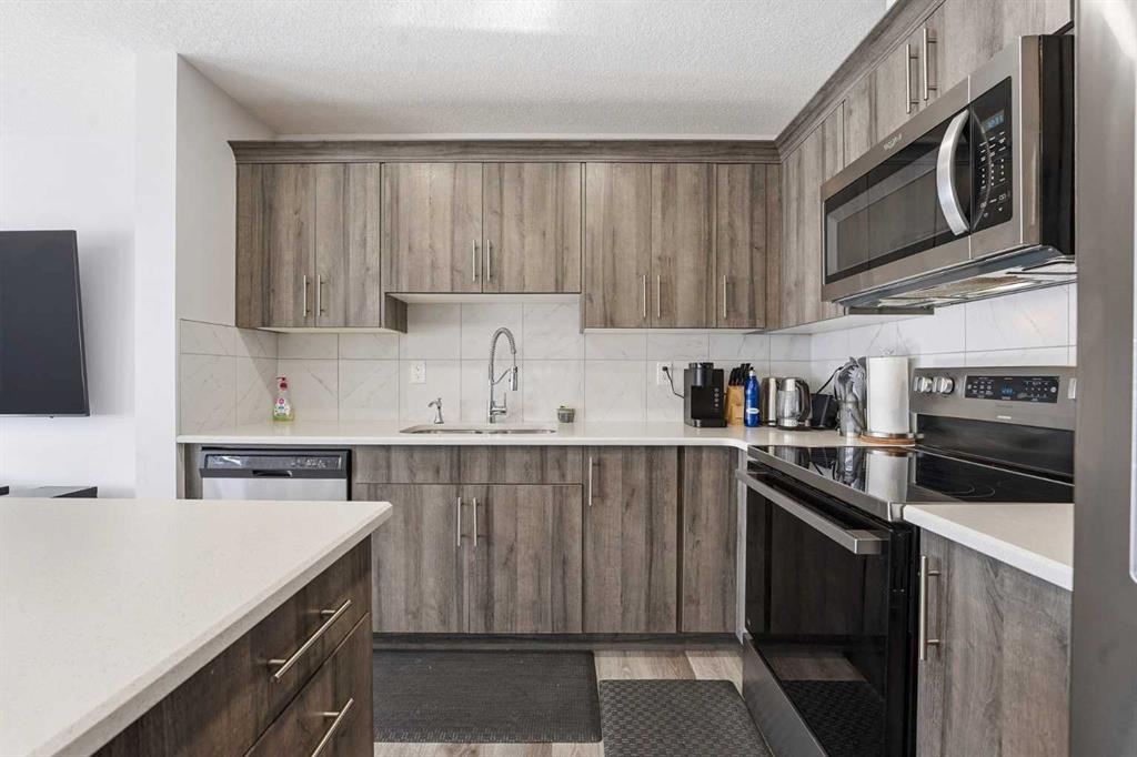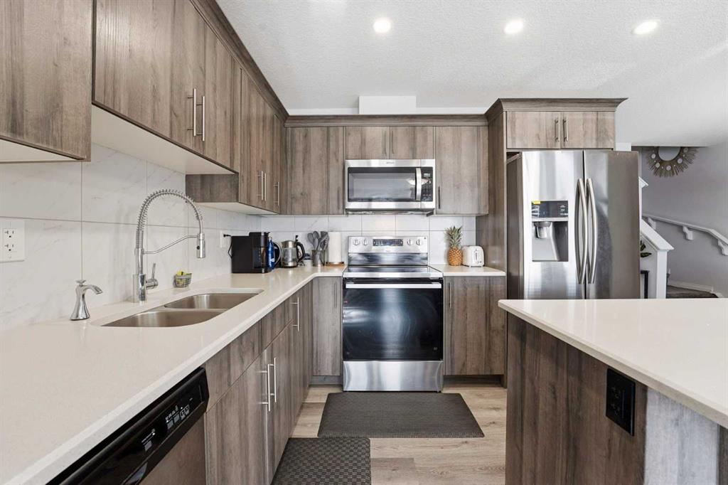 Welcome to 752 Osborne Drive SW, a well-designed 2-storey row townhouse in the established community of South Windsong. Built in 2019 and offering 1,368 sq. ft. of above-grade living space, this 3-bedroom, 2.5-bath home delivers a functional layout, modern finishes, and fee-simple ownership with no condo fees. The main floor is laid out for everyday living. A front foyer opens into a bright living area with durable vinyl plank flooring and clean sightlines through the dining space and kitchen. The kitchen is practical and contemporary, featuring stone countertops, a central island with breakfast bar seating, and a stainless steel appliances. A 2-piece bathroom completes the main level, making the space equally suitable for families, guests, or entertaining. Upstairs, all three bedrooms are well proportioned. The primary bedroom offers generous space, a full 4-piece ensuite, and excellent separation from the secondary bedrooms. Two additional bedrooms share a 4-piece bathroom, and a central upper-level family room provides flexible space for a home office, media area, or kids’ zone. The full basement is unfinished and ready for future development, with laundry already located on this level. Outside, enjoy both a front porch and upper balcony, along with a small lawn area. Parking is a standout feature, with a rear double attached garage accessed by the alley, plus additional street parking. Located close to parks, playgrounds, schools, shopping, and walking paths, this home offers a straightforward, low-maintenance option in a growing southwest Airdrie neighbourhood. Possession is flexible, making it suitable for both owners and investors looking for a move-in-ready property with room to add value.