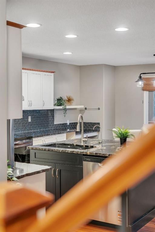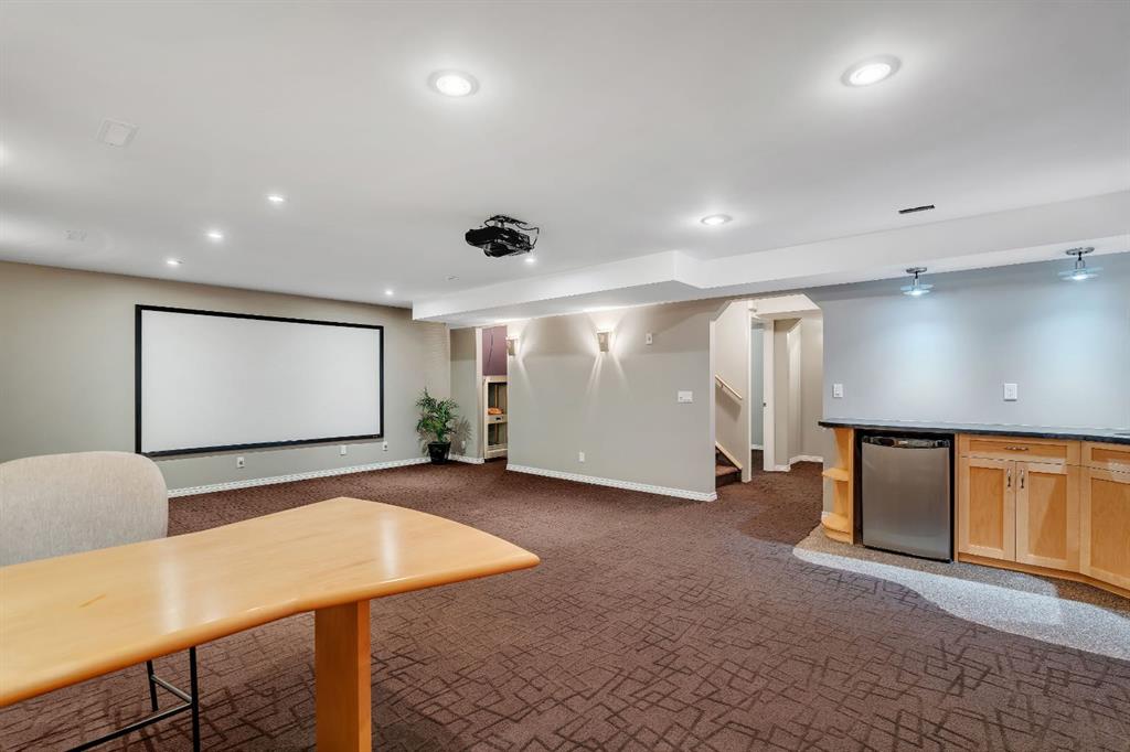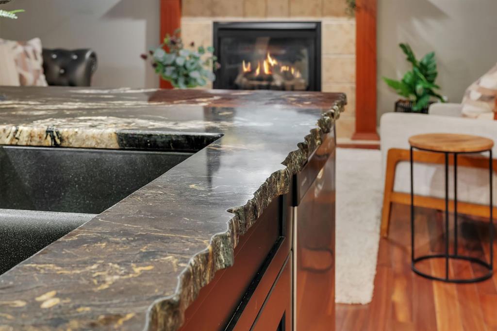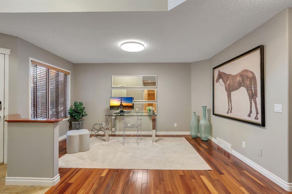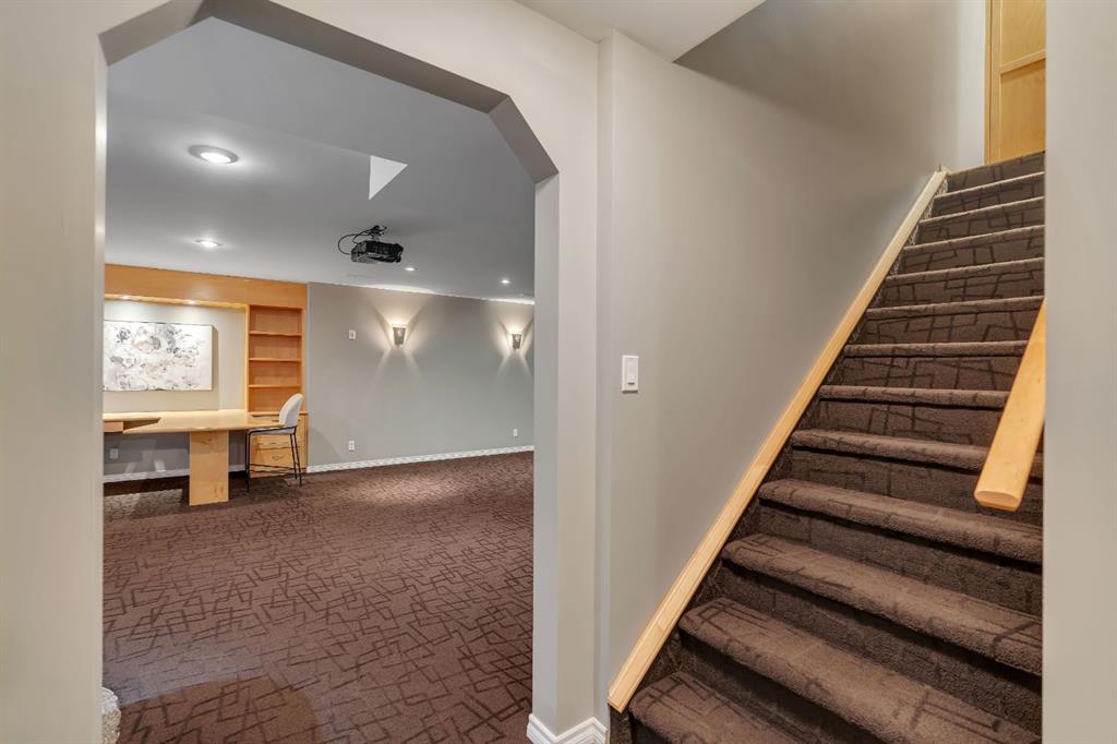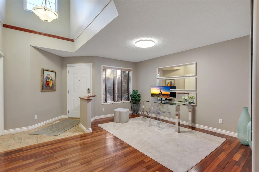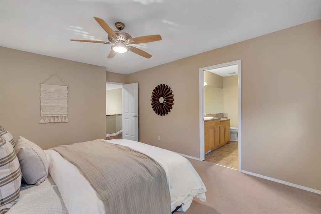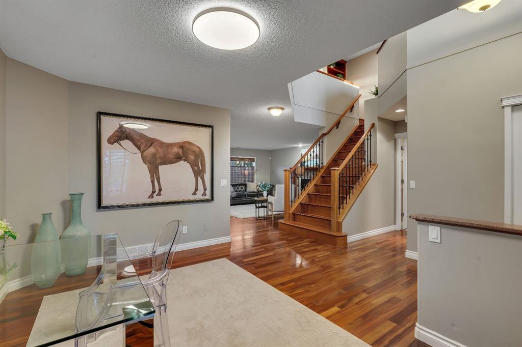 Open House Sat October 25th 1:30-3:30 PM. An Impressive & rare home with 4 beds up and over 3000 sq ft of fully developed space sitting on a huge wide lot, just steps to schools. Welcome to this exceptional home offering a beautifully finished living space, set on a premium lot with lovely mountain views from the front bedroom. Located only a 2 minute walk to the elementary school and under 8 minutes to the middle school, this is a rare find in an ideal family focused location. Step inside to discover a bright and open layout with soaring vaulted ceilings in front foyer, rich Brazilian cherry hardwood floors, upgraded lighting, and a welcoming living area anchored by a soothing gas fireplace. Perfectly positioned windows frame the lush garden views, bringing the outdoors in and filling the space with natural light. The front home office is ideal for remote work, a music room, or a dining/flex space, while the open concept design flows seamlessly into a perfectly placed dining area and a beautifully appointed kitchen. The standout kitchen features upgraded French shaker maple cabinetry, sleek granite countertops with natural stone edge, a large island with extra cabinetry, professional grade appliances, a spacious corner pantry, and plenty of prep and storage space perfect for home cooks and entertainers alike. Completing the main level is a 2 piece powder room and a modern, functional mudroom that includes a newer washer and dryer with customized storage as well as direct access to the oversized insulated double garage. Upstairs, the primary suite is a peaceful retreat with large windows overlooking the rear yard, a walk-in closet, and a functional ensuite with a comfort height vanity, soaker tub, and separate shower. Three additional bedrooms offer generous closet space and share a modern 4-piece bath. A bright bonus/games room provides the perfect spot for family movie or game nights or a quiet reading/homework nook for the kids. The basement has been professionally developed with estate level finishings including 9’ ceilings, plush custom carpet and modern trim. This level features a spacious recreation room with custom built in cabinetry, 6.1 sound system and projector/screen (as is), an additional 5th bedroom or gym space with large closet, a bathroom area ready to be developed, and plenty of storage. Enjoy outdoor living in the sunny backyard oasis, complete with mature landscaping, a large patio, and gas BBQ hookup perfect for relaxing evenings or weekend entertaining. Additional highlights include upgraded lighting, well-maintained roof shingles, full hardwood stairs, built ins, new interior paint, window coverings, and air conditioning for added peace of mind. This home combines pride of ownership with thoughtful upgrades in a serene, sought-after setting just minutes from Fish Creek Park, athletic fields, an outdoor chilled skating rink with its own Zamboni, shopping, and quick access to the new ring road. Move-in ready & a must see! Call now!
