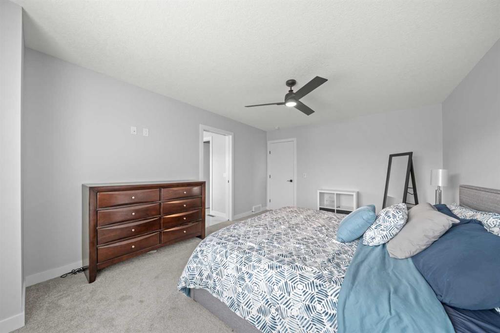 Step into this exceptional 2022-built Calbridge home and experience immediate comfort and sophistication. A covered front walkway leads to an inviting entry featuring durable luxury vinyl plank flooring and impressive 9-foot ceilings that create an expansive, airy atmosphere throughout the main level. The front office/den offers an ideal space for remote work or homework, while the stylish kitchen serves as the heart of the home. It boasts elegant two-tone cabinetry, sleek quartz countertops, a generous central island, full-height upper cabinets, premium stainless steel appliances, a striking feature hood fan, under-cabinet lighting, and a gas range—perfect for both everyday family meals and effortless entertaining. Adjacent, the spacious living room features a cozy fireplace, pot lights, and a knockdown stipple ceiling, flowing seamlessly into a large eating nook that can easily function as a formal dining area. A walk-through pantry provides abundant storage, and the thoughtfully designed mudroom connects to the garage, complete with space for an extra refrigerator, freezer, and coat storage for maximum functionality. Upstairs, a rare and expansive bonus room separates the luxurious master suite from the three additional bedrooms. Bathed in abundant natural light, this level also includes convenient upper-level laundry facilities with extra storage. The oversized master bedroom easily accommodates a king-size bed and opens to a spa-like ensuite featuring dual sinks, a separate soaker tub, a separate shower, and an expansive walk-in closet. The three secondary bedrooms are generously proportioned—each comfortably fitting queen-size beds with plenty of remaining space—and share easy access to a full bathroom. The professionally finished basement by Calbridge Homes includes a large recreation room, ample storage, an additional bedroom, and another full bathroom. This home is equipped with modern comforts such as central air conditioning and numerous upgrades throughout. Backing directly onto a charming children's park, the backyard feels like a natural extension of your private outdoor space. Situated on a quiet street in the highly desirable community of Sage Hill, this residence offers unparalleled convenience—within easy walking distance to grocery stores, restaurants, banks, and a wide array of amenities. A truly turn-key opportunity in one of Calgary's most sought-after northwest communities.