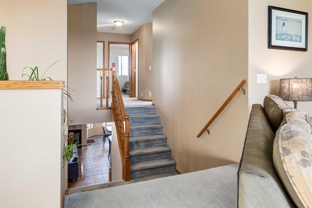 INCREDIBLE LOCATION and beautifully updated, this Somerset home is sure to impress! Step out your back door onto the walking path leading to the Somerset school and ball diamond as well as the Somerset Park with splash park, playground and tennis/basketball courts. You will love the modern curb appeal with mature landscaping and inside offers 2,828 SF of developed living space with ample room for a growing family. The main floor greets you with a large foyer leading to the bright and open main floor featuring tile and hardwood flooring, an abundance of natural light and a well-equipped kitchen with ample cabinetry, stainless steel appliances, a corner pantry and island with breakfast bar. The dining area provides access to the deck with backyard views and a 3 way fireplace is shared with the family room. A den with french door access, conveniently located laundry room and a 2-piece bathroom complete this space. Upstairs, the vaulted bonus room, with a corner gas fireplace, is a perfect space for movie night or watching the big game! The generously scaled master bedroom comes complete with a walk-in closet and spa-like 4-piece ensuite with dual sink vanity and a glass encased walk-in shower. Two additional bedrooms which share a 4 piece bathroom are also found on this level. The walk-out basement is finished with family room with wet bar, a 3-piece bathroom, ample storage and gives access to the stunning backyard with expansive patio making this an ideal space for summer gatherings. Don't overlook the central AC for those hot summer days. Nearby you will find the LRT, bus stops, public library, YMCA and an array of shopping and amenities along with easy access to Stoney Trail and other main arteries. This home is a MUST SEE!