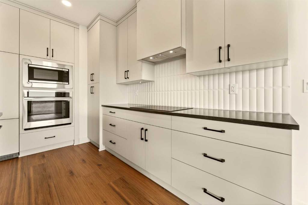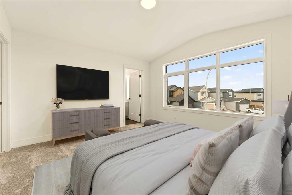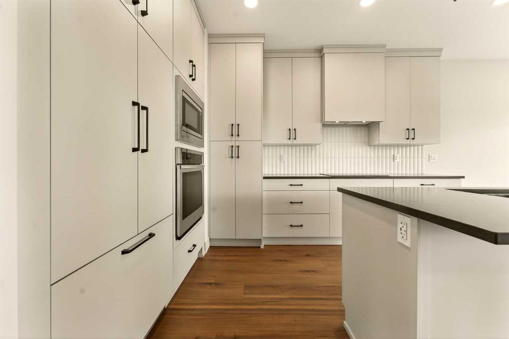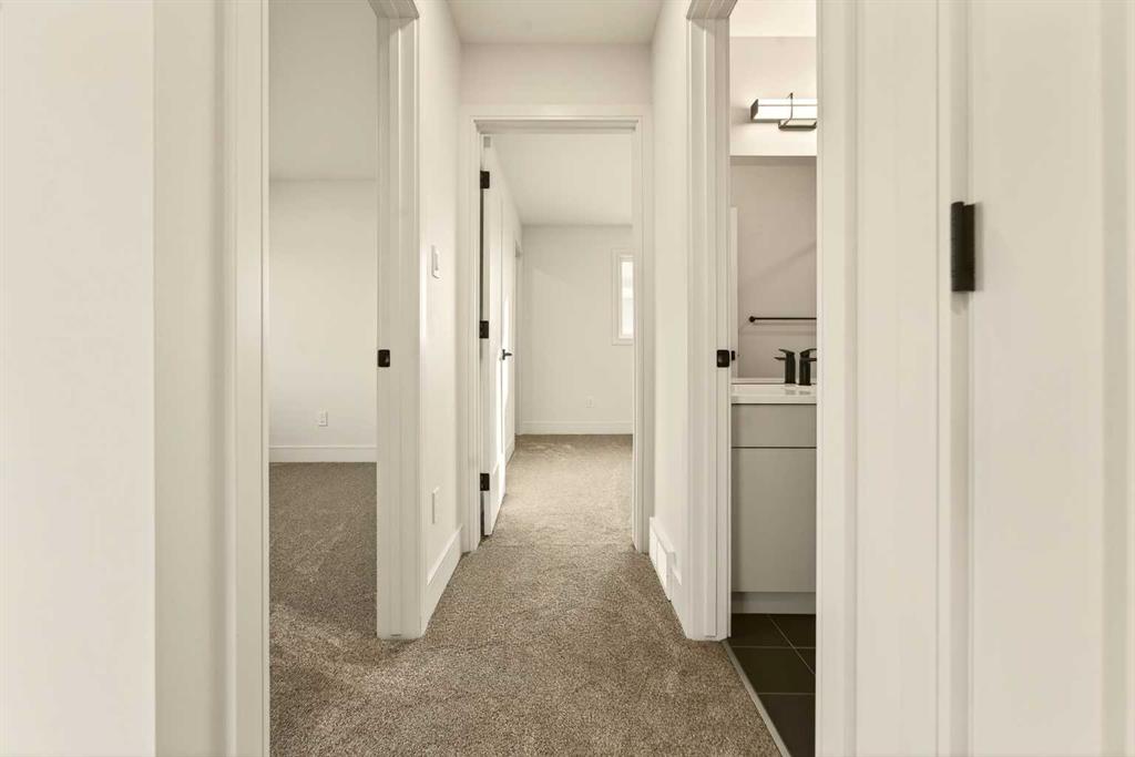 Welcome to a brand new Christensen floor plan by Stranville Living Master Builder, tucked away on a quiet cul-de-sac in the desirable Country Meadows community and set on a rare pie-shaped lot with convenient alley access. This is the kind of location buyers wait for—low traffic, extra backyard space, and a layout that actually makes sense for everyday living. The main floor is bright, open, and intentionally designed to feel both elevated and functional, anchored by a standout kitchen that truly sets the tone for the home. Extended cabinetry runs all the way to the ceiling, paired with quartz countertops and a sleek induction cooktop, while the built-in oven and microwave keep everything clean and streamlined. The panelled Fisher & Paykel fridge and matching panelled dishwasher blend seamlessly into the cabinetry, giving the kitchen a polished, high-end look without feeling overdone. Just off the kitchen, the dining and living areas flow effortlessly together and open to the spacious backyard through sliding glass doors, perfectly positioned for a future deck and indoor-outdoor entertaining. Upstairs, the layout continues to impress with a generous bonus room that works equally well as a second living space, media room, or kids’ hangout. Two large bedrooms each feature their own walk-in closet, making them ideal for family or guests, and are complemented by a well-appointed four-piece bathroom. The primary bedroom checks every box, offering plenty of space for a king-sized bed, a walk-in closet, and a four-piece ensuite highlighted by a tiled walk-in shower that feels both modern and timeless. Thoughtfully designed, beautifully finished, and located in a quiet pocket of Country Meadows, this home delivers the comfort of a new build with the layout and features that everyone is looking for. Included in the price is a 10 year new home warranty and GST! Photos are virtually staged.