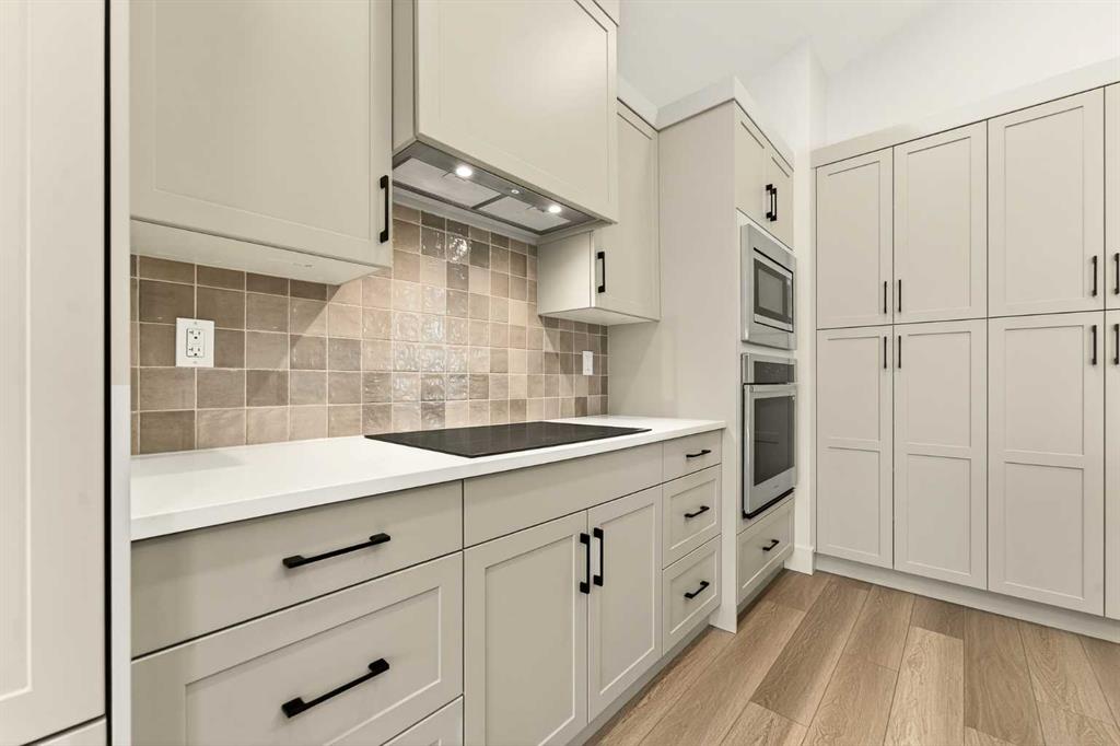 Welcome to a brand new, legally suited home built by Stranville Living Master Builder, located in one of Lethbridge’s most sought-after family neighbourhoods—Copperwood in West Lethbridge. This is a thoughtfully designed property that actually gets suited living right, with key features like two furnaces, separate laundry for each living space, separate parking, and a layout that works just as well for homeowners as it does for extended family or rental income. The bi-level design creates an impressive main living space, highlighted by vaulted ceilings that immediately give the home a sense of scale and openness. The kitchen is a true focal point, finished with quartz countertops, Stranville’s signature panelled Fisher & Paykel fridge, an induction cooktop, built-in oven and microwave, and a panelled dishwasher that blends seamlessly into the cabinetry for a clean, high-end look. Adjacent to the kitchen, the dining area is bright and inviting, with sliding glass doors that open onto the deck, making it easy to enjoy the outdoors or plan future entertaining. Just off the dining area, the living room is framed by chalet-style windows that flood the space with natural light and add to the overall grandeur of the main floor. This level also includes two spacious bedrooms and a well-appointed four-piece bathroom, making it ideal for families or guests. The primary bedroom is set apart on its own level, offering privacy that’s rarely found in a legally suited home. It features a generous walk-in closet and a standout ensuite with dual vanities and a tiled walk-in shower—an upgrade that truly elevates the space. Adding even more functionality is a full-size laundry room on this level, complete with a wash bay, a practical detail that’s easy to appreciate once you have it. The legal suite is accessed through a separate rear entrance, conveniently located just past the rear parking pad. Downstairs, you’ll find a large living area, a functional kitchen finished with quartz countertops and stainless steel appliances, two spacious bedrooms, and a four-piece bathroom. The layout is bright, comfortable, and designed to feel like a true secondary home rather than an afterthought. Set in Copperwood, close to schools, parks, walking paths, and everyday amenities, this legally suited property offers flexibility, quality construction, and long-term value in one of West Lethbridge’s best neighbourhoods. This home is virtually staged, and included in the price is a 10-year new home warranty and GST.