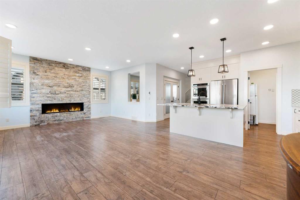 OPEN HOUSE JAN 31 & FEB 01, SAT, SUN: 1-3PM Welcome to this beautifully upgraded corner-lot family home in the heart of Midtown, Airdrie, backing onto the pond and walking paths with park-facing views that offer calming scenery and exceptional privacy. This home provides over 2,500 sq ft of thoughtfully designed living space above grade, plus an unfinished basement ready for future development. Inside, you’ll appreciate 9-foot ceilings throughout, a vaulted upper-level living area, and an expanded back wall that enhances natural light and usable space. The main floor features a functional open-concept layout with a spacious kitchen complete with double wall ovens, a pot filler above the range, a dedicated pantry fridge, and seamless flow into the dining and living areas anchored by an upgraded stone fireplace featuring one of the largest fireplace sizes available. Upstairs offers an ideal family layout with a generous primary retreat and spa-inspired ensuite with the largest tub option, additional well-sized bedrooms, a kids’ wet-room bathroom with three sinks, shower, and tub, convenient upper-level laundry, and excellent built-in storage. The outdoor space has seen over $30,000 invested, including a stone patio with fire pit, low-maintenance deck, and natural gas hookup, all perfectly positioned to enjoy pond views and the surrounding pathways. Practical upgrades include lifetime-warranty shutters on every window, a water softener system, a custom mudroom with cleaning closet and coat hooks, and an extra-long, extra-wide garage ideal for trucks, with natural gas and power roughed in for a heater, hose bibs, and security wiring. Located in the vibrant Midtown community, this home is steps from walking paths, parks, and green spaces, close to schools, shopping, restaurants, and everyday amenities, with easy access to major routes, making it a rare opportunity to own a premium, park-front, pond-backing home in one of Airdrie’s most desirable neighborhoods.