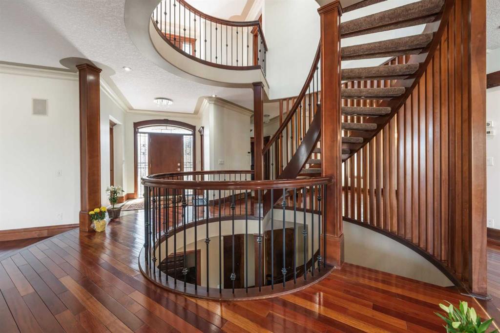 Are you looking for a house like no other, with a unique floor plan? See it to believe it. An extraordinary custom built LUXURY HOME in Calgary’s most sought-after neighborhood. Just moments from the prestigious Calgary French International School, premier shopping, and convenient highways, this stunning 5-bedroom, 4-full, 2-half-bath residence spans over 4500 square feet of sun-filled living space. As you enter, a cozy foyer welcomes you into a world of sophistication. The UNIQUE OPEN SPIRAL STAIRCASE stands as a centerpiece, CONNECTING ALL THREE LEVELS IN A FREE FLOWING LAYOUT. Unlike typical basements, this home embraces an open, airy feel, NO CEILING CUTS THE BASEMENT OFF; instead, the basement, VISIBLE FROM THE TOP FLOOR, invites you into a UNIFIED living experience. The main floor dazzles with 2 expansive living areas, perfect for hosting, and a formal living room with a fireplace. The RENOVATED and UPGRADAED chef’s kitchen is a dream—granite countertops, mostly BRAND NEW APPLIANCES, and a separate SPICE KITCHEN. 3 BALCONIES in the house expand your living space, perfect for summer gatherings, while the home is bathed in natural light from LARGE WINDOWS. Upstairs, enjoy the convenience of a bedroom-level laundry, complete with a SKYLIGHT, while the secondary bathroom also boasts ANOTHER SKYLIGHT, ensuring brightness at every turn. Upstairs, 4 serene bedrooms await, with two sharing a RENOVATED luxurious spa-like bathroom, each with double vanity sinks. The master suite is a private haven, featuring a fireplace, double-door entry, and a spa-inspired ensuite with a jetted tub, steam shower, and walk-in closet. The home offers ample storage, and central air for comfort year-round. The walkout basement is an entertainer’s dream—a cozy living area with a fireplace, a wine cellar, wet bar, bedroom, and den—perfect for guests. With a large garage, a flex room, and abundant storage, every detail is designed for practicality. Bathed in positivity, with abundant windows, this home is a masterpiece—where openness, elegance, and a warm family vibe come together. You will appreciate the location of this home surrounded by grocery stores like Co-op, No Frills and Save-on foods and only 12 minutes to the Shouldice park. A great convenience of walking distance to the prestigious Calgary French & International School and just minutes to Webber Academy. Upscale living in a family friendly community, your search ends here.....
