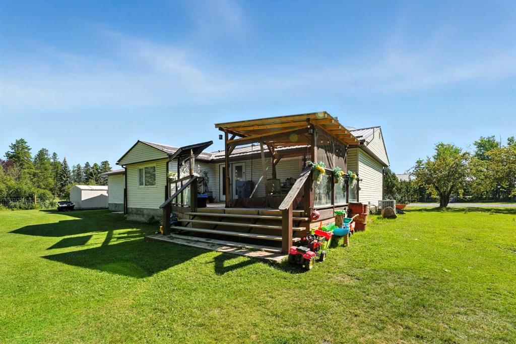 Just west of Rocky Mountain House, on pavement and only minutes from the golf course, this acreage offers the perfect balance of convenience and peaceful country living. Mature, lush trees wrap the property in privacy, creating a tranquil retreat you can come home to every day. Step into the beautifully landscaped yard and you’ll find fruit trees ready for summer picking, a well-producing garden to grow your own fresh vegetables, and multiple storage sheds to keep everything organized. Imagine quiet mornings in the brand-new gazebo on the private back deck, coffee in hand, listening to the breeze move through the trees. The home itself has been upgraded for comfort and peace of mind—new central A/C unit, furnace, hot water tank, and eavestroughs—plus the attached double garage now has a newly insulated ceiling, making it a functional space year-round. For the hobbyist, the large shop is ready for anything. Outfitted with a vehicle hoist, brand-new insulation and plywood, upgraded electrical with a new panel, and 220 power—it’s perfect for projects. This is acreage living without compromise: room to breathe, space to work, and a setting you’ll never want to leave—all just minutes from town.