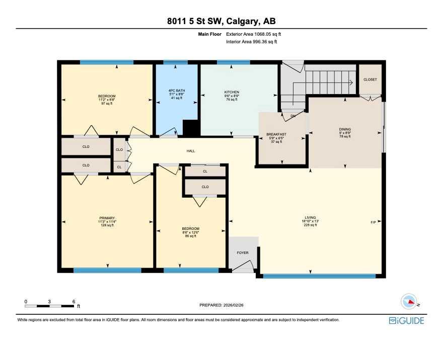 | Bedroom - Primary | 11`4" x 11`3" | Main |
