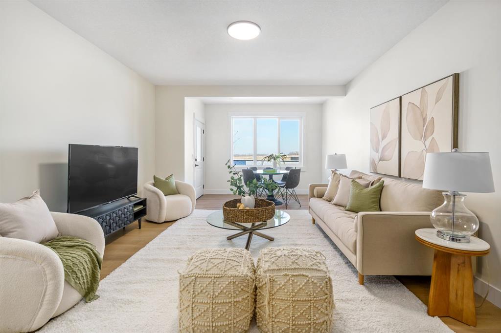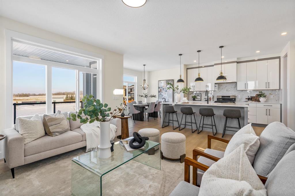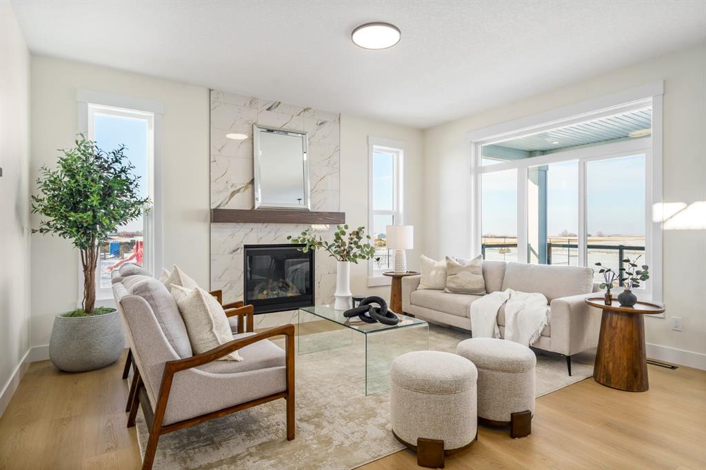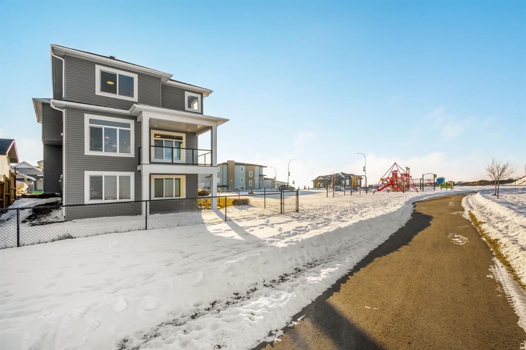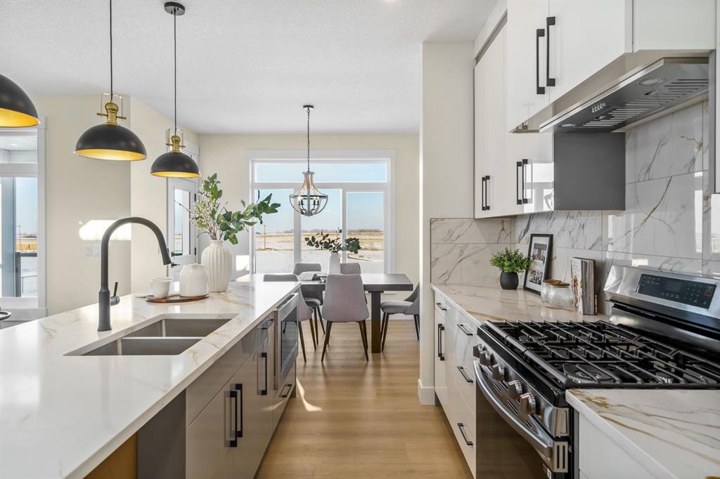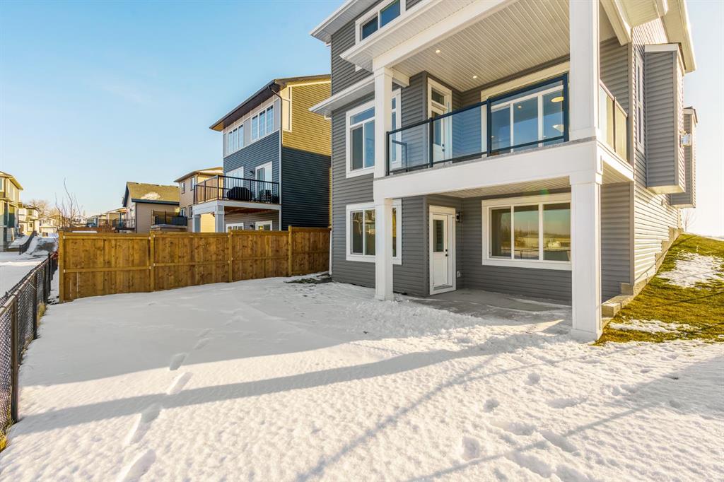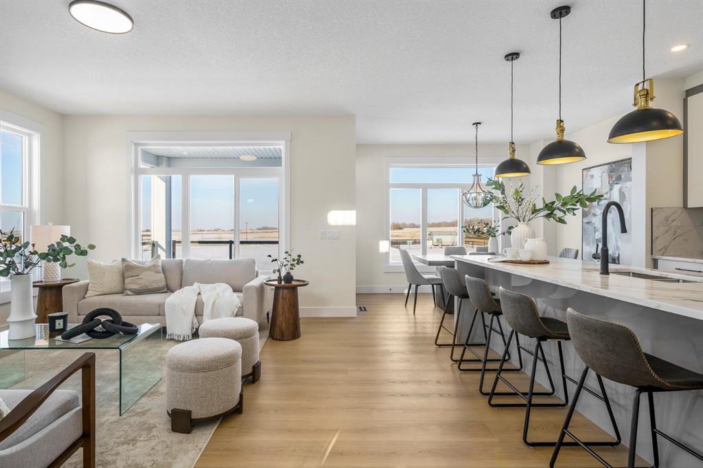 This Christmas, imagine unwrapping a brand-new custom home—one that backs onto endless green space. Welcome to 804 Lakewood Circle — a 2025 custom-built Shayman Homes luxury residence in Strathmore’s emerging lake community, Lakewood. This south-facing 5-bedroom, 3.5-bath home offers 2,200 sq. ft. above grade with a fully developed walkout basement, backing onto green space with unobstructed views of the future lake, pathways, and park. From the moment you arrive, the stone-accented exterior and architectural detailing set an elevated tone. Step through the custom glass-insert door into a bright vaulted foyer with an 8-ft closet and open sightlines that introduce the home’s modern, elegant design. A main-floor office with oversized windows provides an ideal workspace. The open-concept main level features 9-ft ceilings and upgraded 9-inch luxury vinyl plank flooring. The chef’s kitchen is anchored by a 9-ft quartz island with a built-in stainless-steel microwave and dishwasher, complemented by a gas stove with hood fan, stainless-steel fridge with water hookup, undermount sink, quartz counters, and soft-close cabinetry with black hardware. Six-foot windows fill the space with natural light, highlighting the floor-to-ceiling tiled gas fireplace in the living room. The covered upper deck with glass railings and a gas line extends the living space year-round. A custom walk-through pantry with built-in shelving leads to the mudroom, complete with a built-in shoe rack, coat hooks, and full closet—perfect for busy families. Direct access to the oversized double garage, with a gas line rough-in and side entrance, makes winter days and grocery runs effortless. Upstairs, a vaulted bonus room offers a bright, inviting family retreat. The upper laundry room includes tile flooring and a quartz folding counter. The serene primary suite features large windows and a spa-inspired ensuite with a dual quartz vanity, soaking tub, fully tiled shower, separate toilet room, and walk-in closet. Two additional spacious bedrooms—one with a walk-in—share a beautifully finished four-piece bathroom. The fully developed walkout basement continues the high-end feel with 9-ft ceilings, luxury vinyl plank flooring, and abundant natural light. A generous family room transitions to a 10-ft wet bar with quartz counters, tile backsplash, under-cabinet lighting, custom cabinetry, and built-in wine storage—an entertainer’s dream. Two bright bedrooms, a full four-piece bath, mechanical room, and storage complete the level. Step outside to a covered concrete patio and landscaped yard with chain-link fencing on the park side and wood privacy fencing along the neighbour’s lot. This is a rare opportunity to own a brand-new, custom lake-community home with luxury finishes, thoughtful design, and exceptional indoor-outdoor living. 804 Lakewood Circle offers the perfect blend of privacy, nature, and modern comfort—ideal for families seeking long-term value in one of Strathmore’s most exciting new neighbourhoods.