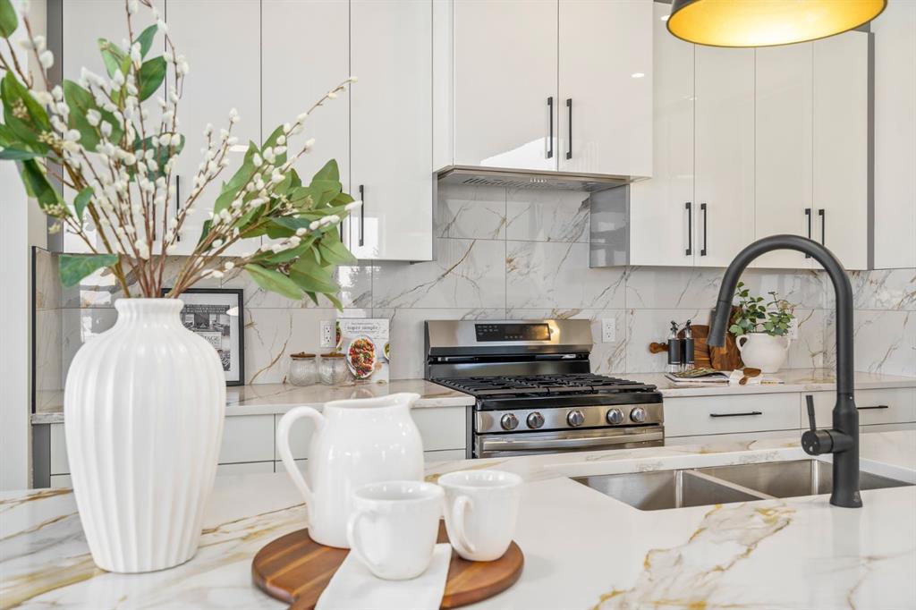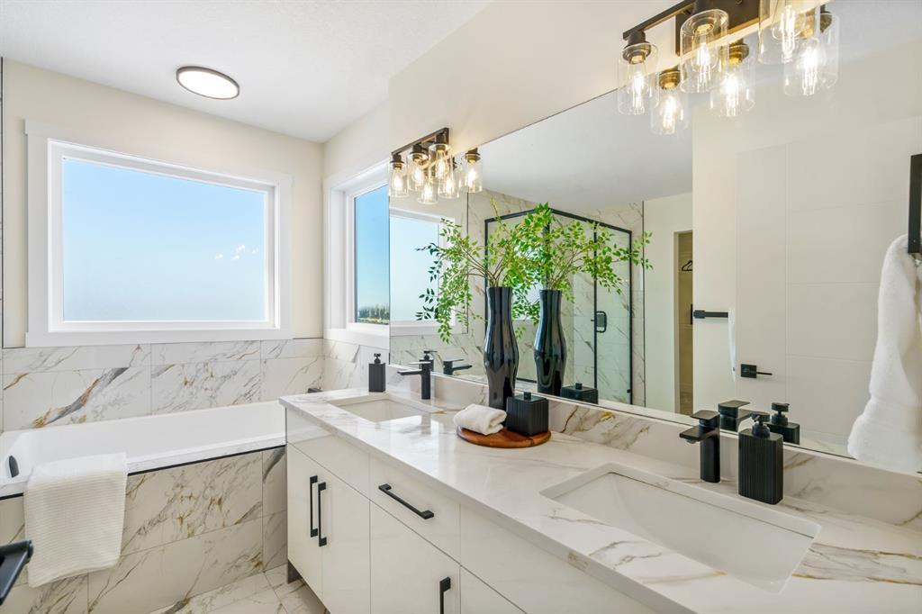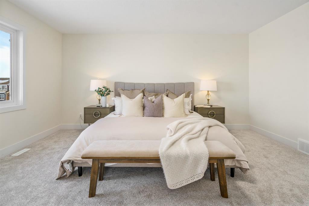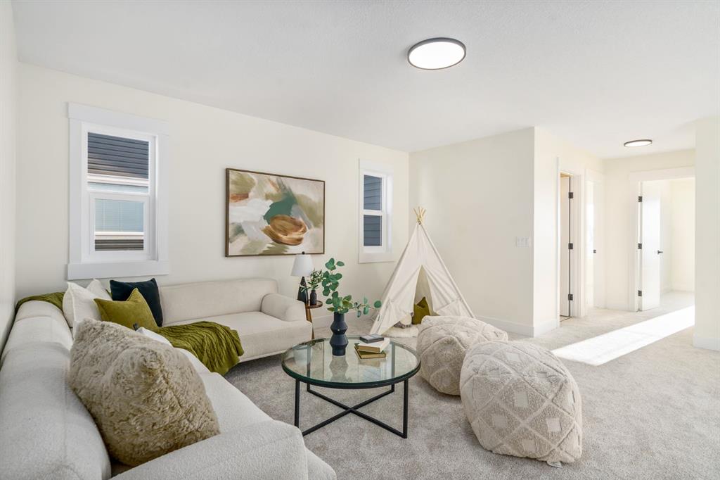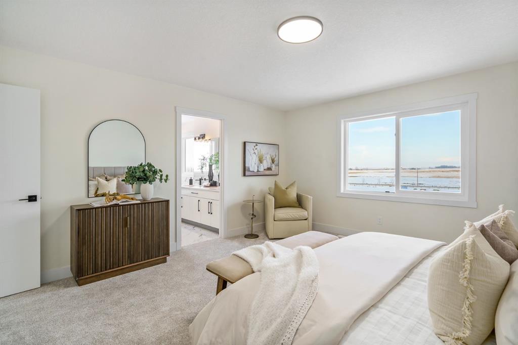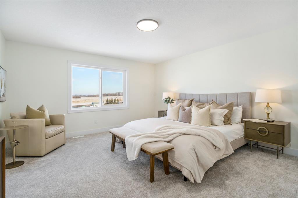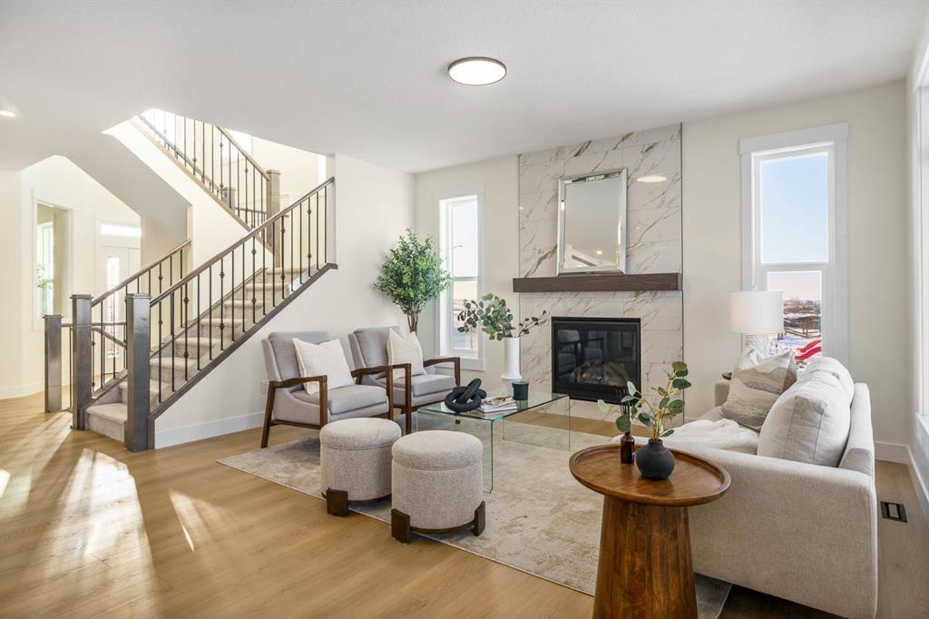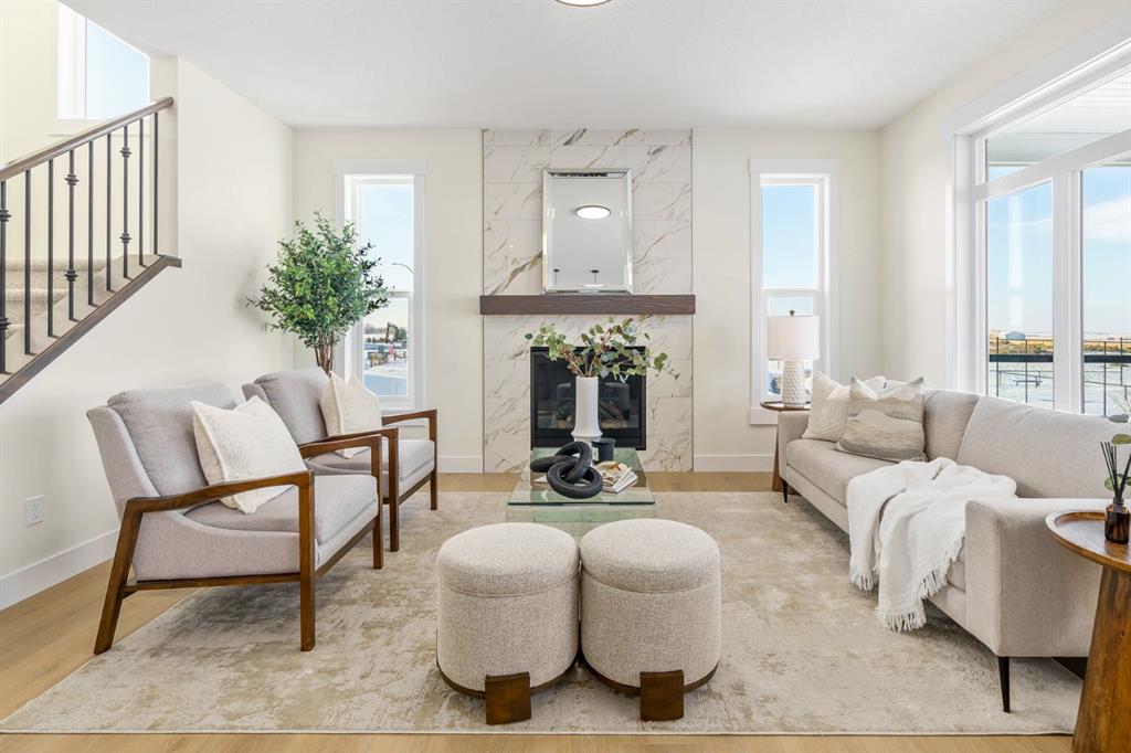 This Christmas, imagine unwrapping a brand-new custom home—one that backs onto endless green space. Welcome to 804 Lakewood Circle — a 2025 custom-built Shayman Homes luxury residence in Strathmore’s emerging lake community, Lakewood. This south-facing 5-bedroom, 3.5-bath home offers 2,200 sq. ft. above grade with a fully developed walkout basement, backing onto green space with unobstructed views of the future lake, pathways, and park. From the moment you arrive, the stone-accented exterior and architectural detailing set an elevated tone. Step through the custom glass-insert door into a bright vaulted foyer with an 8-ft closet and open sightlines that introduce the home’s modern, elegant design. A main-floor office with oversized windows provides an ideal workspace. The open-concept main level features 9-ft ceilings and upgraded 9-inch luxury vinyl plank flooring. The chef’s kitchen is anchored by a 9-ft quartz island with a built-in stainless-steel microwave and dishwasher, complemented by a gas stove with hood fan, stainless-steel fridge with water hookup, undermount sink, quartz counters, and soft-close cabinetry with black hardware. Six-foot windows fill the space with natural light, highlighting the floor-to-ceiling tiled gas fireplace in the living room. The covered upper deck with glass railings and a gas line extends the living space year-round. A custom walk-through pantry with built-in shelving leads to the mudroom, complete with a built-in shoe rack, coat hooks, and full closet—perfect for busy families. Direct access to the oversized double garage, with a gas line rough-in and side entrance, makes winter days and grocery runs effortless. Upstairs, a vaulted bonus room offers a bright, inviting family retreat. The upper laundry room includes tile flooring and a quartz folding counter. The serene primary suite features large windows and a spa-inspired ensuite with a dual quartz vanity, soaking tub, fully tiled shower, separate toilet room, and walk-in closet. Two additional spacious bedrooms—one with a walk-in—share a beautifully finished four-piece bathroom. The fully developed walkout basement continues the high-end feel with 9-ft ceilings, luxury vinyl plank flooring, and abundant natural light. A generous family room transitions to a 10-ft wet bar with quartz counters, tile backsplash, under-cabinet lighting, custom cabinetry, and built-in wine storage—an entertainer’s dream. Two bright bedrooms, a full four-piece bath, mechanical room, and storage complete the level. Step outside to a covered concrete patio and landscaped yard with chain-link fencing on the park side and wood privacy fencing along the neighbour’s lot. This is a rare opportunity to own a brand-new, custom lake-community home with luxury finishes, thoughtful design, and exceptional indoor-outdoor living. 804 Lakewood Circle offers the perfect blend of privacy, nature, and modern comfort—ideal for families seeking long-term value in one of Strathmore’s most exciting new neighbourhoods.