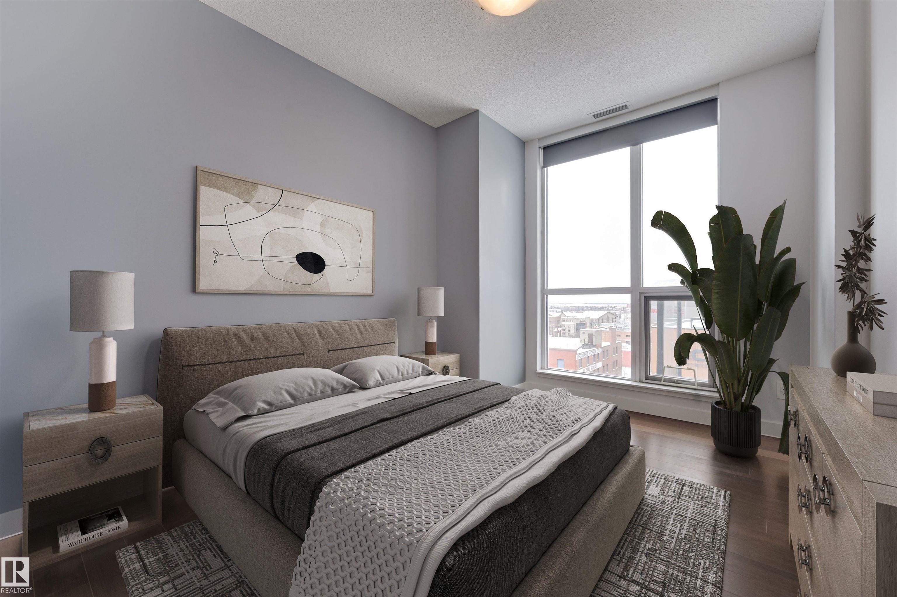 Live above it all in this stunning high-rise condo offering breathtaking city and downtown views from nearly every room. This beautifully designed 2 bedroom, 2 bathroom, 2 titled, side-by-side heated underground parking stall unit features a bright, open-concept layout with floor-to-ceiling windows that flood the space with natural light. The modern kitchen is finished with quartz counters, contemporary cabinetry, & stainless steel appliances, flowing seamlessly into the generous living and dining areas finished with hardwood. The spacious primary suite includes a walk-through closet & a private 3pc ensuite, while the second bedroom is perfect for guests or a home office. Enjoy your morning coffee from the private balcony with panoramic views. Additional comforts include in-suite laundry & A/C. Enjoy luxury building amenities including a concierge, fitness centre, hot tub, rooftop patio, kitchen, social rooms & more. Steps to dining, shops, cafes, & transit. Some photos are virtually staged.