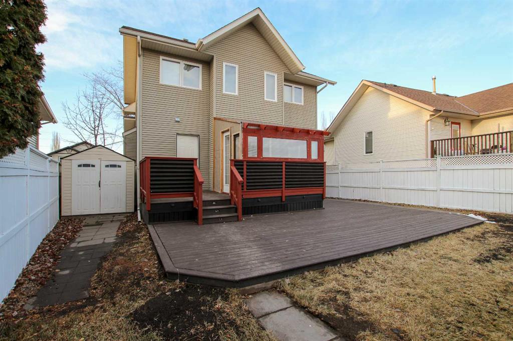 IMMEDIATE POSSESSION AVAILABLE ~ FULLY DEVELOPED 3 BEDROOM, 3 BATHROOM 2-STOREY IN WESTLAKE ~ 24' X 22' DETACHED GARAGE ~ Beautifully landscaped front yard with mature trees and shrubs offer eye catching curb appeal ~ Covered front veranda with space for a sitting area overlooks the front yard ~ Bright foyer with tile floors welcomes you and leads to the open concept main floor ~ The living room features hardwood flooring, large windows offering natural light, and is centred by a cozy gas fireplace with stone surround, mantle and TV niche above ~ Easily host large gatherings in the spacious dining room with more large windows and a wall pantry ~ The kitchen offers a functional layout and features warm stained extended height cabinets with crown moulding, full tile backsplash, window above the sink and ample counter space ~ Mud room has a built in bench and cabinets offers easy access to the huge two tiered deck and backyard ~ 2 piece main floor bathroom ~ The primary bedroom can easily accommodate a king size bed plus multiple pieces of furniture, and has dual closets ~ Two additional bedrooms are also a generous size with ample closet space ~ Oversized 4 piece bathroom centrally located to the bedrooms with a linen closet for storage ~ The fully finished basement offers plenty of additional space and includes a large family room, office nook with a built in desk, 3 piece bathroom with a walk in steam shower, laundry with a sink and space for storage ~ Also includes: central vacuum, window coverings ~ The backyard is landscaped with mature trees, has a fire pit, garden shed and tons of outdoor living space on the massive two tiered deck with a glass enclosed gazebo ~ 24' L x 22' W detached garage is insulated, finished with painted drywall, slatwall and wood paneling, has built in shelving/storage, and back alley access ~ Located on a tree-lined street and walking distance to multiple schools, parks, playgrounds, walking trails, Red Deer Poly, Heritage Ranch and with easy access to downtown and the highway ~ Immediate possession and move in ready!