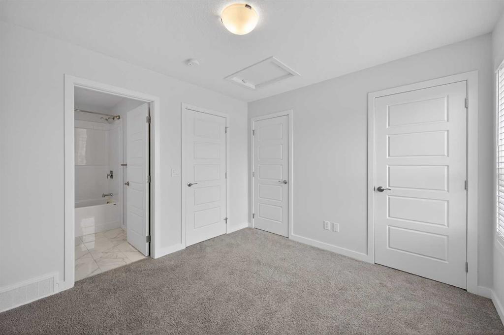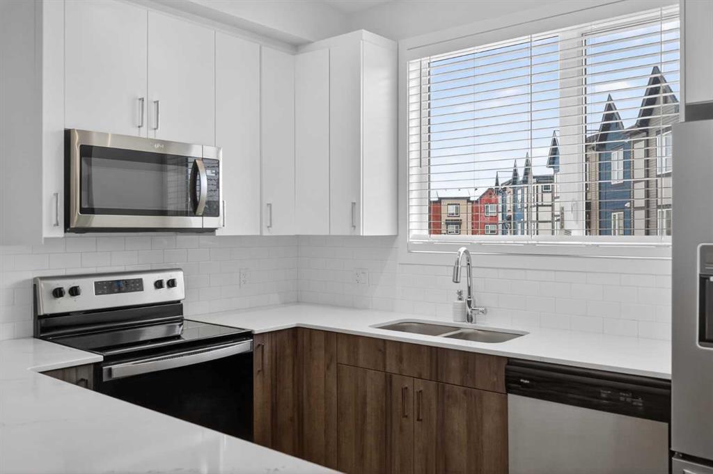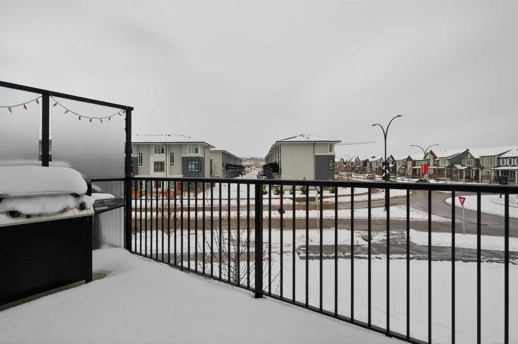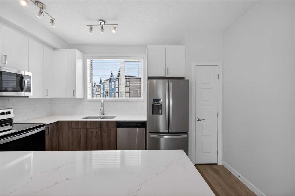 Welcome to this beautifully townhome tucked into a quiet complex in the sought after, master planned community of Belmont. Offering extra privacy and abundant natural light, this home perfectly blends modern style with everyday comfort. Stay protected year round with an oversized, insulated and drywalled double attached tandem garage, complete with a convenient driveway for additional parking. Inside, the welcoming entry leads to a bright and airy main level filled with natural light. Vinyl plank flooring, a neutral designer palette, and an open layout create a warm and inviting atmosphere ideal for both relaxing and entertaining. The spacious living room is highlighted by an oversized window that frames stunning prairie sky views. Just off the living area, step onto your private balcony perfect for morning coffee, summer barbecues, or unwinding on a quiet evening. The elegant dining area, illuminated by stylish designer lighting, flows effortlessly into the show stopping kitchen. Here you’ll find quartz countertops, stainless steel appliances, beautiful two tone cabinetry, a peninsula island with seating, a striking herringbone backsplash, and a generous walk in pantry offering excellent storage. A convenient powder room completes the main level. Upstairs, retreat to your two private primary suite, featuring a spacious walk in closet and a well appointed ensuite designed for relaxation. Making this layout ideal for families, guests, or a home office. Located in a family friendly community surrounded by the natural beauty of southern Alberta’s foothills, Belmont offers inclusive playgrounds, scenic green spaces, and miles of walking pathways. Exciting future amenities include a City of Calgary Recreation Centre, a public library, two schools, and a future LRT station for easy commuting. You’ll also enjoy being just minutes from Spruce Meadows, Sirocco Golf Club, Fish Creek Park, Sikome Lake, and the extensive shopping, dining, and services in nearby Silverado, Shawnessy, Walden, and Legacy. Don’t miss your chance to own in one of Calgary’s most exciting and growing communities where comfort, convenience, and community come together to create the perfect place to call home.