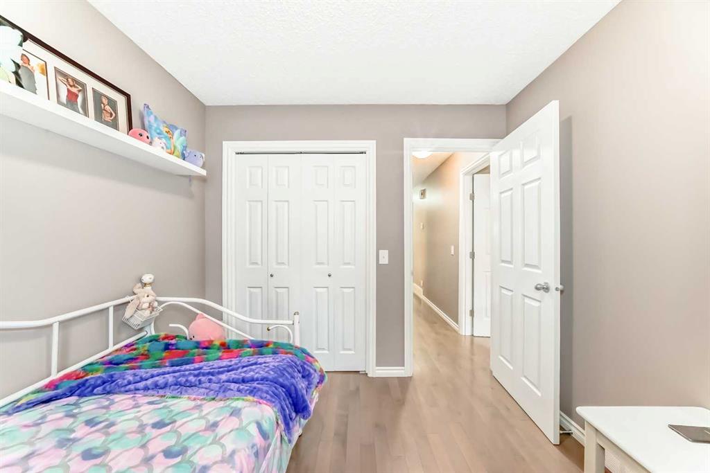 Excellent 3 bedroom up 1/2 duplex with single attached garage, terrific south views of the river valley and C.O.P., situated on an oversized 184 ft deep lot, just steps away from the amazing Silvercreek and Bowmont Park pathway system. This home has been in the family since 1982 and has been lovingly updated over the years, plus features a side entrance to the basement, giving you some options in the future. As you pull up to the property you will notice it's long double wide driveway, which can accommodate 3 cars, plus additional parking in the oversized single garage. As you enter the main living area you are greeted with hardwood flooring thru-out the entire mainfloor, freshly painted thru-out, plus an updated kitchen that features soft close shaker style cabinets, stainless steel appliances and granite counter tops. The lovely well-lit front living room features a newer cozy electric fireplace with tile surround and a custom mantle, and which leads out to the large 20' wide south facing deck that features dura decking and amazing views of the river valley and Canada Olympic park. All three bedrooms up are quite large, perfect for roommates or growing families, and the updated main floor bath with tile flooring is perfect to just move in and enjoy. The pantry storage room up is also equipped with laundry rough in's, in case you are wanting to keep everything all on the mainfloor. The finished basement features a side entrance, roughed in for a dishwasher and additional plumbing, and has direct access to the single garage. The huge sun drenched backyard is perfect for any green thumb / garden enthusiast and kids/pets. Additional upgrades the family has done over the years include; new roof 1 year ago, painted exterior 1 year ago, newer furnace and hot water tank plus all new interior doors and trim. Excellent starter home close to pathways, all levels of schools, the River, Crowfoot Shopping plus great access West to the mountains and only 15 mins to the airport via the Stoney Trail Ring Road. Call your favorite Realtor to view!