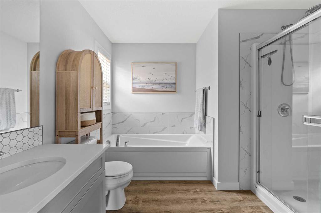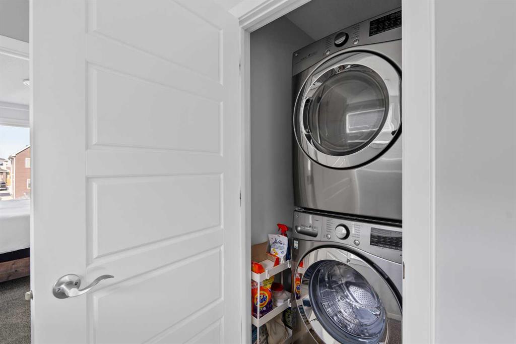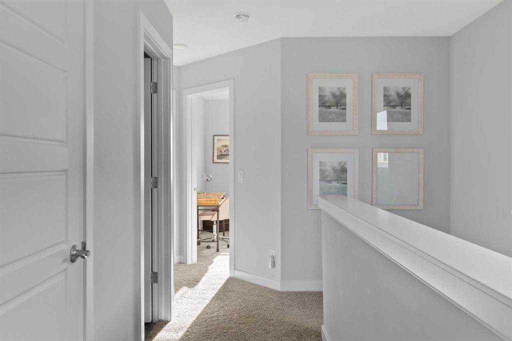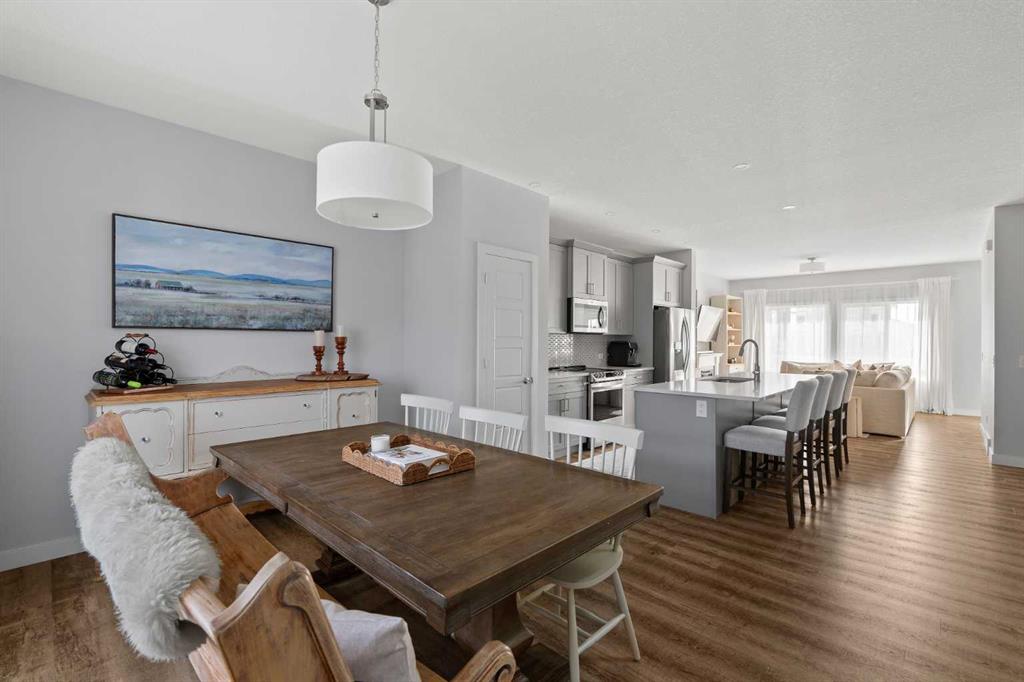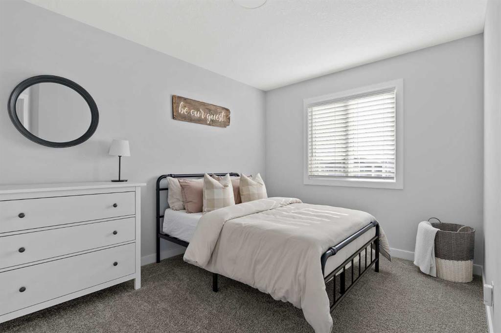 A pristine original-owner home in the heart of Chelsea, Chestermere - showcasing true pride of ownership and presenting as close to new as it gets. With nearly 1,650 sq. ft. of thoughtfully designed living space, this is the ideal family home offering 3 bedrooms, 2.5 bathrooms, a fully landscaped yard, a private double detached garage, and an undeveloped basement with rough-ins ready for your future vision. The open-concept main level is anchored by a stunning central kitchen, creating the perfect flow for both everyday living and entertaining. Finished with timeless light grey shaker cabinetry, an oversized quartz island, and a full suite of upgraded stainless-steel appliances, this kitchen is as functional as it is beautiful. A south-facing front great room is bathed in natural light through a wall of windows, while the expansive ~14' x 10' dining area at the rear comfortably accommodates any dining setup and overlooks the private backyard. A convenient powder room and large closets at both the front and back entrances complete the main level. On the upper level, the impressive ~14' x 12' primary suite easily fits a king-sized bed and additional furniture. It’s complete with a luxurious 5-piece ensuite featuring dual sinks, a soaker tub, a walk-in shower, and a generous walk-in closet with space for two. Two comfortable secondary bedrooms sit at the opposite end of the home, separated by a large main bathroom and an upper-level laundry room - an ideal layout for privacy and practicality. Outside, the property is fully landscaped, fenced, and completely move-in ready - saving you the time and cost typically associated with new construction. Enjoy multiple outdoor living spaces, including a charming full-width covered front porch to capture the south sun, and a large rear deck with gas line and pergola overlooking the private yard. The double detached garage provides secure parking and extra storage year-round - an especially appreciated benefit during the winter. Perfectly positioned within walking distance to parks, schools, and local amenities, while still only a quick drive to Calgary, this home delivers convenience, comfort, and exceptional value in the vibrant community of Chelsea in Chestermere. A truly move-in-ready home that combines thoughtful design, modern finishes, and unbeatable location - this is one you won’t want to miss.