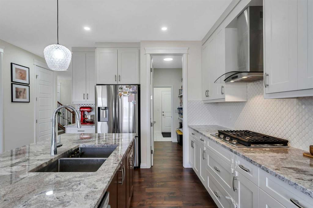 Welcome to 838 Edgefield Street in the growing community of Edgefield, Strathmore — a beautifully upgraded 4-bedroom family home offering over 2,400 sq ft of bright, modern living space. Ideally located just minutes from Highway 1 with an easy commute to Calgary, and within walking distance to George Freeman School, this home is perfect for families seeking comfort, space, and convenience. Step inside to discover a thoughtfully designed open-concept main floor featuring 8-foot doors, rounded wall corners, and energy-efficient triple-pane windows that flood the home with natural light. The main floor office/den is perfect for working from home or creating a quiet study space. The gourmet kitchen is the heart of the home, showcasing granite countertops, a gas stove, upgraded range hood, modern refrigerator, and plenty of cabinetry—ideal for everyday cooking and entertaining. The kitchen flows seamlessly into the spacious dining and living areas, highlighted by engineered hardwood flooring, custom moldings, upgraded baseboards, designer lighting, and mirrored coat-closet doors. Upstairs, you’ll find a generous primary suite retreat along with three additional bedrooms, a versatile bonus room, and two full bathrooms with granite countertops. A convenient upper-floor laundry room with sink adds everyday practicality. Additional features include: • Custom stair railing and upgraded front entrance door • Wider double attached garage with extra storage/workspace • Unfinished walkout basement ready for your future development Enjoy living close to major amenities including Walmart, Sobeys, RONA, restaurants, shopping, and everyday services, all just minutes away. Don’t miss this opportunity to own a beautifully upgraded home with a walkout basement in one of Strathmore’s fastest-growing communities.