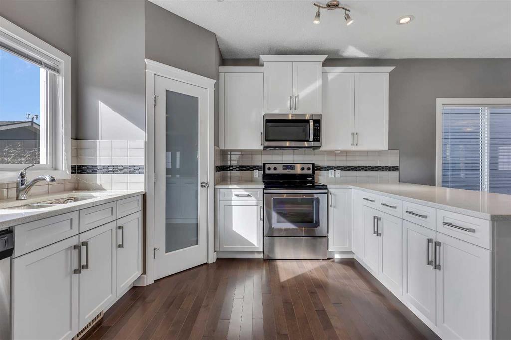 Welcome to 854 Evanston Drive NW in the family-friendly established community of Evanston! This wonderful two-storey home combines modern finishes with everyday functionality, offering everything you need in one of Calgary’s most convenient locations. The main floor features 9 foot ceilings and hardwood flooring throughout, setting an open and inviting layout with over 1,500 sqft of living space. A bright living room framed with a gas fireplace flows into the dining space and open u-shaped kitchen, where you’ll find a quartz island, full corner pantry, and plenty of storage. A powder room adds convenience for guests tucked-in behind the mudroom, while the south-facing backyard brings in plenty of natural light all day long. Upstairs, there are three bedrooms and two full bathrooms, including a spacious primary suite with dual vanities, a soaker tub, and a glass shower. The additional bedrooms are versatile for children, guests, or as a home office. The unfinished basement offers room to grow and customize – whether you’re thinking of a media area, home gym, or extra living space for you to dream and design. Out back from the mudroom, you're met with a lovely wooden deck extending into the south backyard. A double detached garage is excellent for two cars and is access by an asphalt alley providing easy access – no more dusty or bumpy pot-holed alleyways! Did you notice the park right adjacent to the alley as well? A quick soccer game, walk of the dog, game of catch, or a jog is right at your doorsteps with this property, one house next to the athletic field. Families will appreciate being within walking distance to Our Lady of Grace School, playgrounds, walking trails, parks and playgrounds. Evanston itself offers access to a number of schools, nearby shopping at Walmart, Co-op, FreshCo, and Costco (just to name a few), as well as gyms, restaurants, and everyday amenities. Getting around the city is simple with close proximity to Stoney Trail, Symons Valley Road, and Beddington Trail, and you’re only 17 minutes from Calgary International Airport. A great opportunity to move into a move-in ready home that delivers comfort, community, and convenience! Book your showing TODAY!