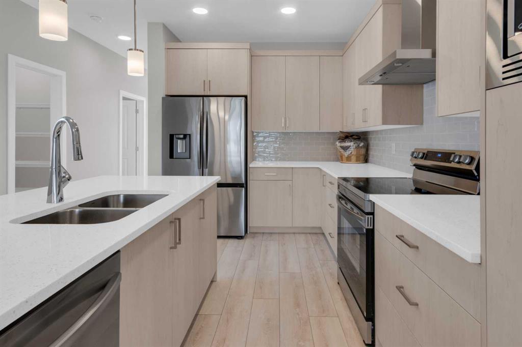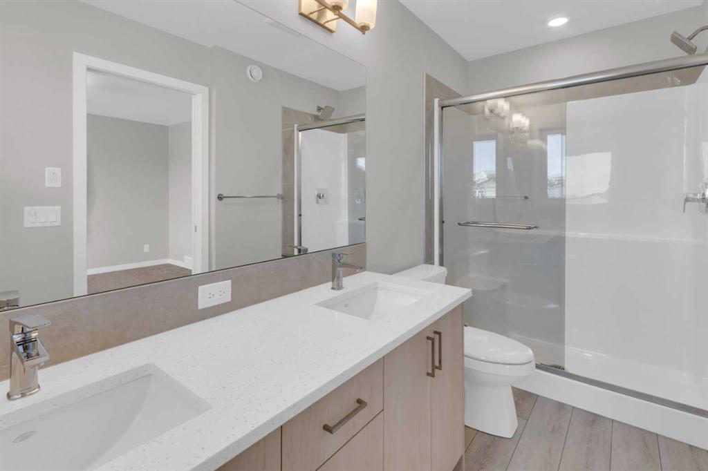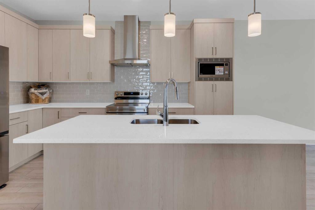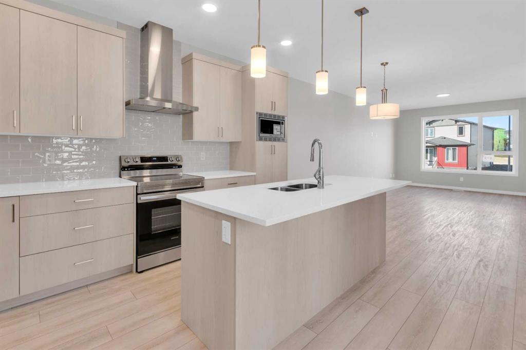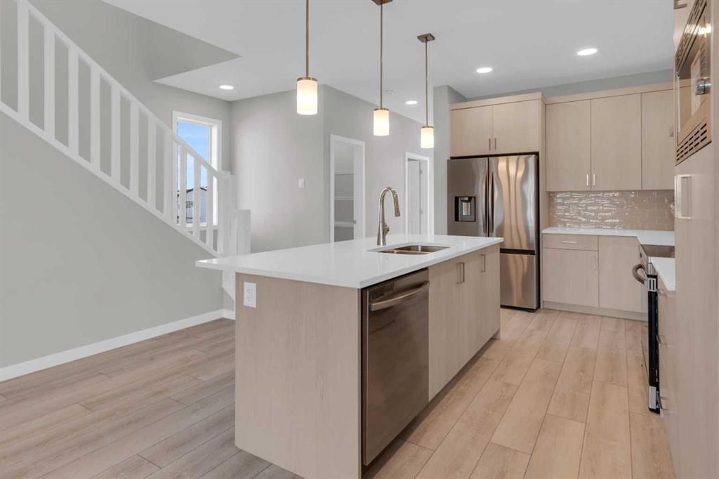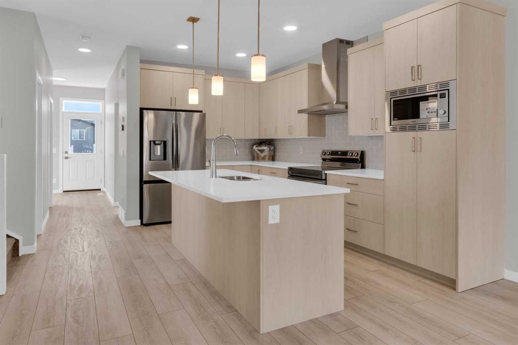 Introducing the COHEN: an amazing, BRAND NEW attached home by EXCEL HOMES offering 1748 SF above grade with a FULLY DEVELOPED, LEGAL SUITE, W/SEPARATE ENTRANCE, TWO BEDROOMS, TWO BATHROOMS AND FULL KITCHEN. Nestled in the vibrant Northeast community of Livingston. Step into a life of luxury and convenience with this stunning residence, where every detail has been meticulously crafted for comfort and style. Enjoy the benefits of living in an established neighborhood that brings a plethora of amenities right to your doorstep, along with swift access to major highways. The COHEN offers a sprawling 1748 square feet of thoughtfully designed living space, perfect for both families and entertaining. The open floor plan, complemented by neutral designer tones, creates a welcoming atmosphere that is both elegant and comfortable. The chef-quality kitchen stands as the heart of the home, equipped with ceiling-height cabinets, two banks of pot/pan drawers, and upgraded stainless steel appliances, including chimney fan, and built-in microwave. The expansive engineered stone countertops, a large island with seating, and a convenient pantry make it a dream kitchen for those who love to cook and entertain. The main floor also features versatile luxury vinyl plank flooring On the main floor you'll also find a FLEX ROOM that can be used as a home office, guest bedroom or playroom. and half bath for convenience.. Ascend to the second level where leisure meets luxury in the large central bonus room featuring vaulted ceilings & pot lighting — ideal for movie nights and family gatherings. The primary bedroom is a true retreat, boasting a walk-in closet and a spa-like 4 Pce ensuite with dual sinks, double wide shower & stone vanity tops. Additionally, two more generously sized bedrooms provide ample space and easy access to the main bathroom. The convenience continues with a laundry room strategically located on the same floor. The possibilities extend into the FULLY DEVELOPED basement - SEPERATE SIDE ENTRY to your LEGAL TWO BEDROOM / TWO BATHROOM BASEMENT SUITE WITH FULL APPLANCE PACKAGE. Your suite is built to upstairs standards & offers TWO bedrooms, TWO FULL BATHS, full kitchen w/lots of storage cabinets, SS appliances, PRIVATE LAUNDRY, vinyl plank flooring. Step outside to a southeast-facing backyard that's perfect for relaxation and outdoor activities & your deck is already built. Don't miss the chance to own this never-lived-in gem with quick possession available. Experience the blend of luxury, comfort, and convenience in Livingston—welcome to your new dream home at the COHEN. This home will include front & back yard sod and a 20x20 gravel parking pad. Also includes complete interior sprinkler system to main and upper floors! There is also a gas line to the bbq at the rear. With over 35 years of experience, more than 15,000 homes built, and 75 awards for design and industry excellence, Excel Homes continues to deliver quality, innovation, and peace of mind