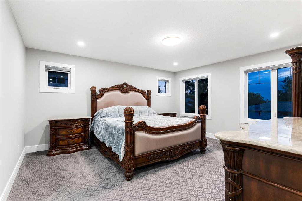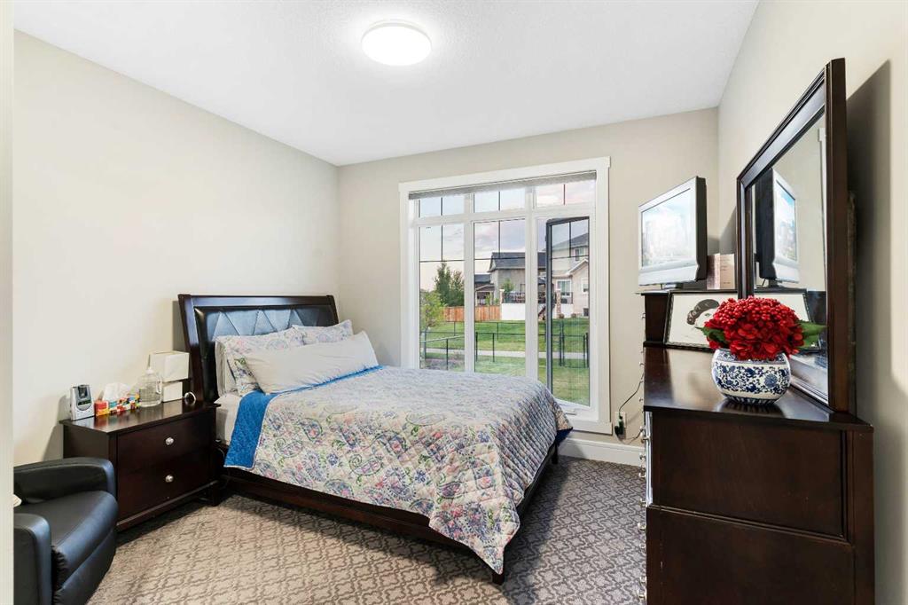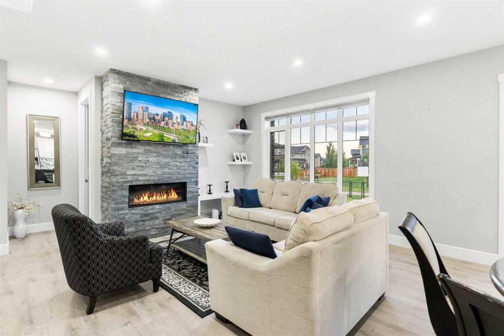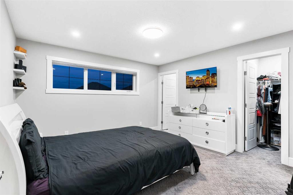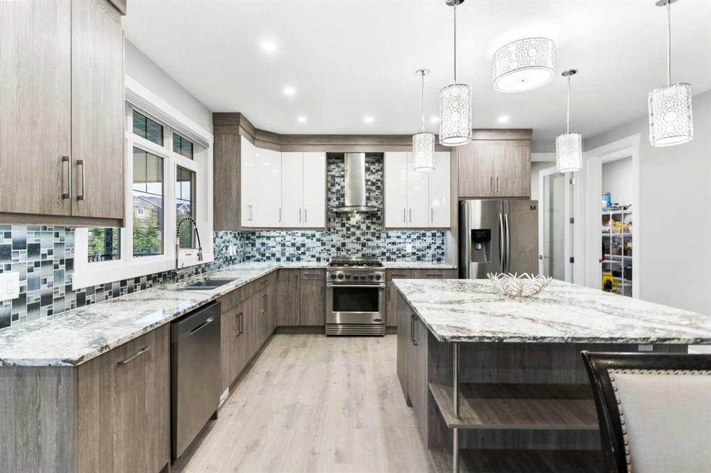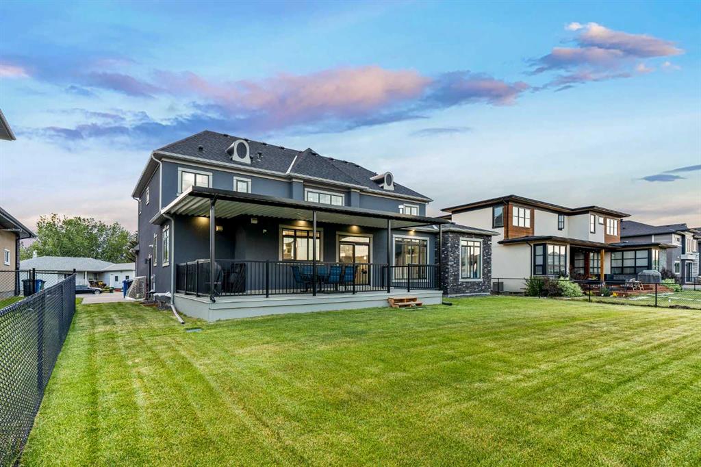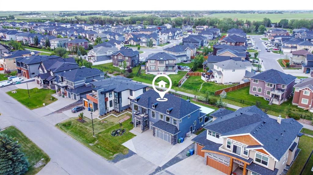 LOCATED on A MASSIVE ESTATE LOT (75ft x 122 ft)! 5 ENSUITES! BEDROOM AND FULL BATH ON MAIN LEVEL! EVERY BEDROOM HAS A W.I.C! COVERED DECK! GORGEOUS BACKYARD! BALCONY WITH LAKE VIEWS! EXTENDED DRIVEWAY! This modern marvel stands out with its combination of dark stone and greyish blue stucco exterior! Offering just under 5100 SQ FT of Quality Luxurious Living Space with 7 Bedrooms, 7 Baths (6 FULL bath and 1 half bath) and Attached Triple Garage! Spacious and functional Open Floorplan Concept. The main floor offers a living room, dining, family room with fireplace, breakfast nook with access to your COVERED DECK and half bath. The kitchen is chef's dream; fully equipped with Quartz Countertops, Stainless Steel Appliances, Kitchen Island, Huge Pantry and SPICE KITCHEN! Another awesome feature on the main level is the BEDROOM WITH ITS OWN ENSUITE! Perfect for families with older individuals. Now make your way to the upper level, featuring a bonus room, FULL bath and 4 bedrooms. Of the 4 bedrooms, 2 are masters with their own ensuites. The grand master however boasts a 5 PC ensuite and a W.I.C fit for a King and Queen! You can access your BALCONY WITH LAKE VIEWS from the bonus room. The laundry feature is conveniently located on the upper level. This home still has more to offer. The FULLY FINISHED BASEMENT WITH SEPARATE ENTRANCE is an amazing place to chill and hangout. Featuring a rec room with WET BAR and 2 bedrooms with ensuites! In addition to this, the basement is roughed-in and setup to be an illegal suite! Moving on to the exterior of the home, you have an extended driveway as well as a large backyard that is spacious and gorgeous! Low maintenance landscape as well! This home is just a stone's throw from Chestermere Lake and has easy access to all the amenities you need! GREAT VALUE! AMAZING LOCATION! HUGE LOT! QUALITY BUILD!