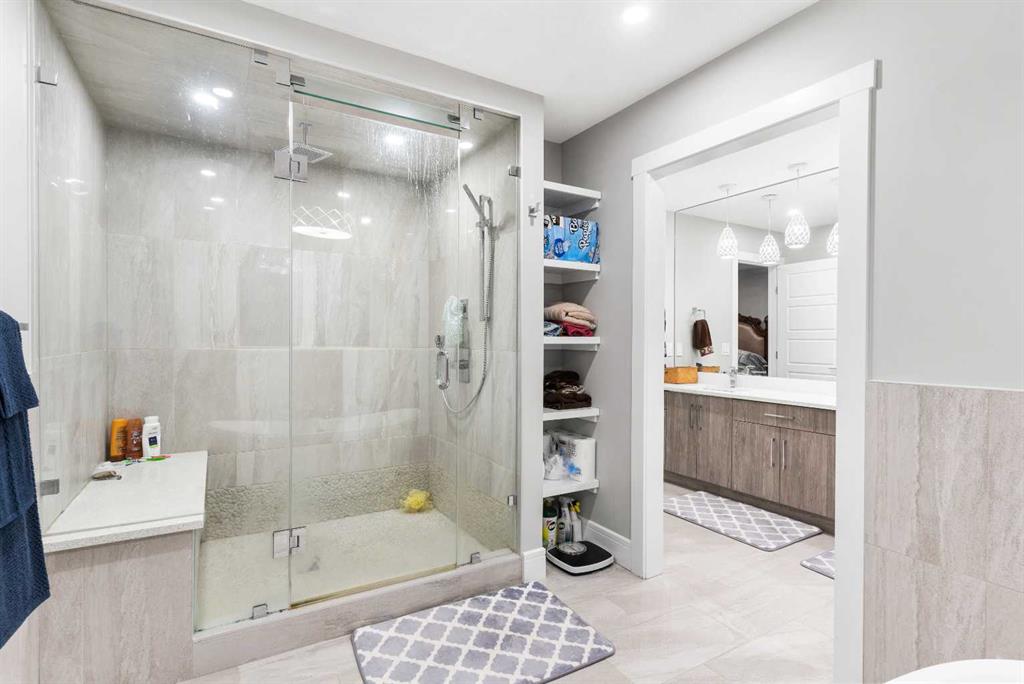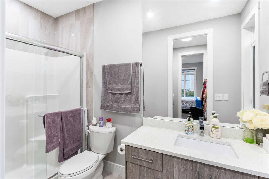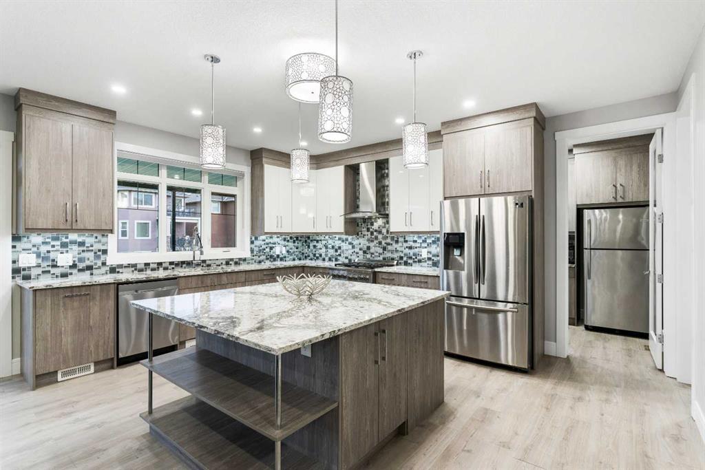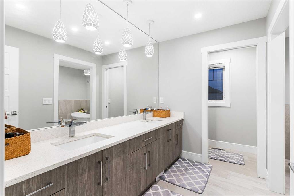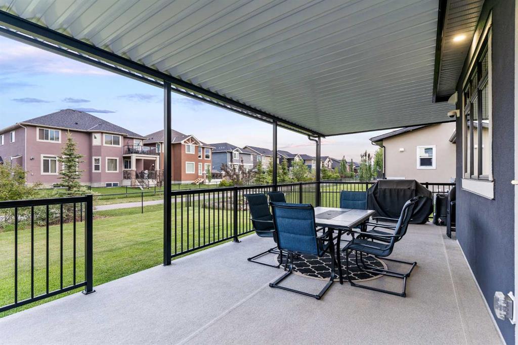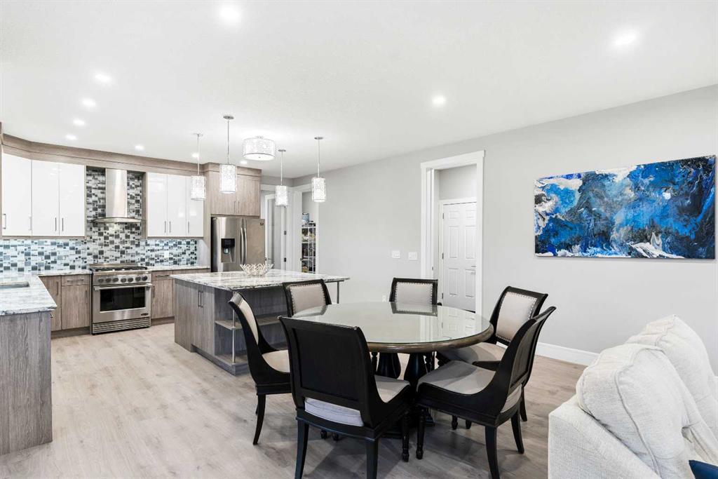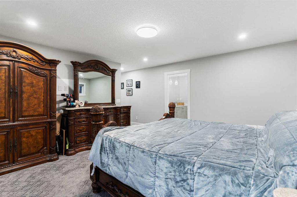 LOCATED on A MASSIVE ESTATE LOT (75ft x 122 ft)! 5 ENSUITES! BEDROOM AND FULL BATH ON MAIN LEVEL! EVERY BEDROOM HAS A W.I.C! COVERED DECK! GORGEOUS BACKYARD! BALCONY WITH LAKE VIEWS! EXTENDED DRIVEWAY! This modern marvel stands out with its combination of dark stone and greyish blue stucco exterior! Offering just under 5100 SQ FT of Quality Luxurious Living Space with 7 Bedrooms, 7 Baths (6 FULL bath and 1 half bath) and Attached Triple Garage! Spacious and functional Open Floorplan Concept. The main floor offers a living room, dining, family room with fireplace, breakfast nook with access to your COVERED DECK and half bath. The kitchen is chef's dream; fully equipped with Quartz Countertops, Stainless Steel Appliances, Kitchen Island, Huge Pantry and SPICE KITCHEN! Another awesome feature on the main level is the BEDROOM WITH ITS OWN ENSUITE! Perfect for families with older individuals. Now make your way to the upper level, featuring a bonus room, FULL bath and 4 bedrooms. Of the 4 bedrooms, 2 are masters with their own ensuites. The grand master however boasts a 5 PC ensuite and a W.I.C fit for a King and Queen! You can access your BALCONY WITH LAKE VIEWS from the bonus room. The laundry feature is conveniently located on the upper level. This home still has more to offer. The FULLY FINISHED BASEMENT WITH SEPARATE ENTRANCE is an amazing place to chill and hangout. Featuring a rec room with WET BAR and 2 bedrooms with ensuites! In addition to this, the basement is roughed-in and setup to be an illegal suite! Moving on to the exterior of the home, you have an extended driveway as well as a large backyard that is spacious and gorgeous! Low maintenance landscape as well! This home is just a stone's throw from Chestermere Lake and has easy access to all the amenities you need! GREAT VALUE! AMAZING LOCATION! HUGE LOT! QUALITY BUILD!