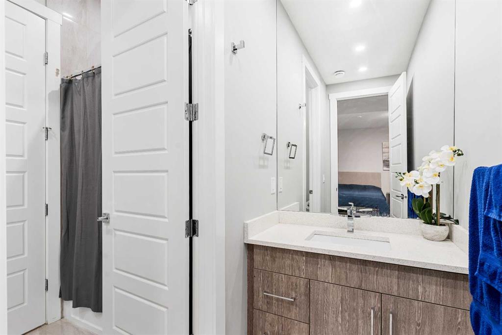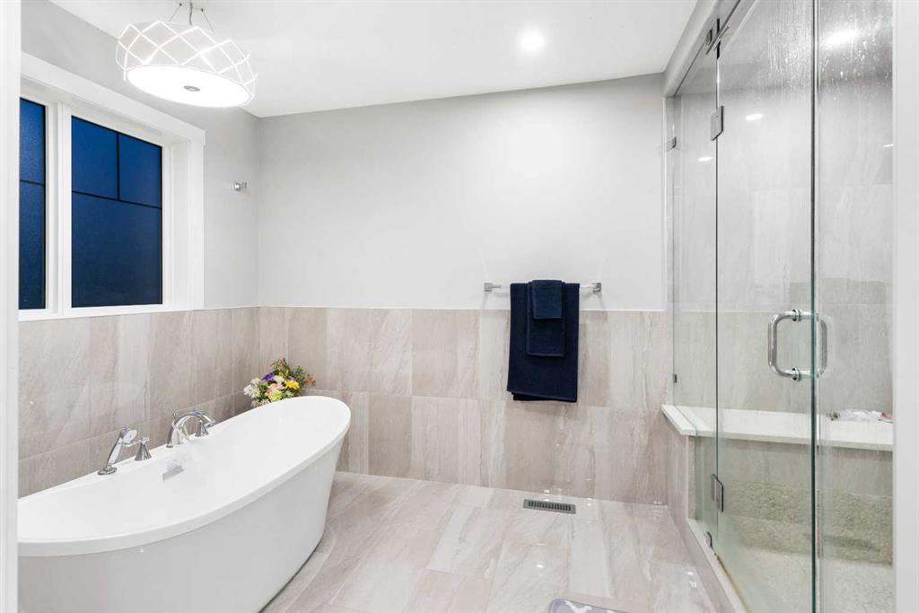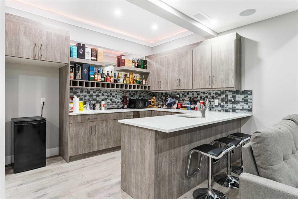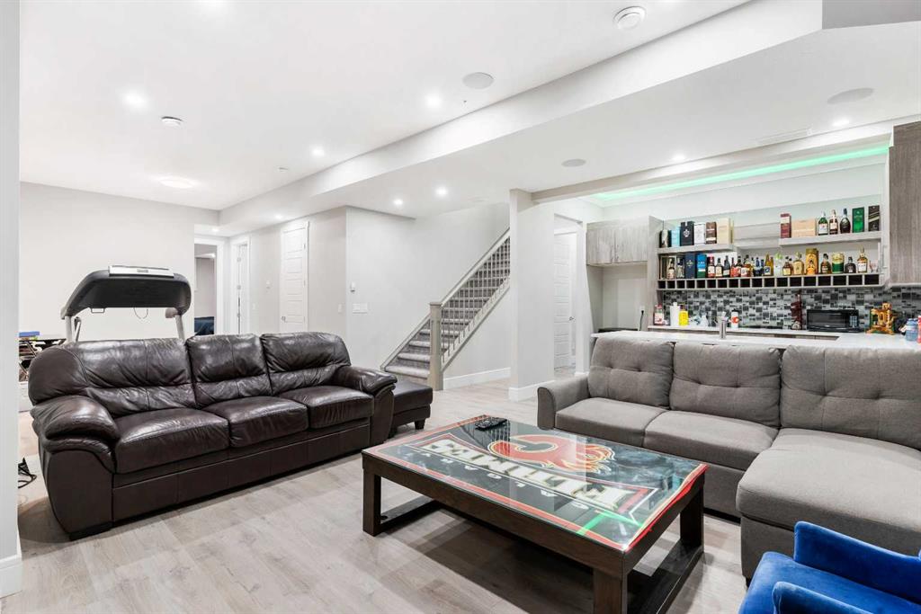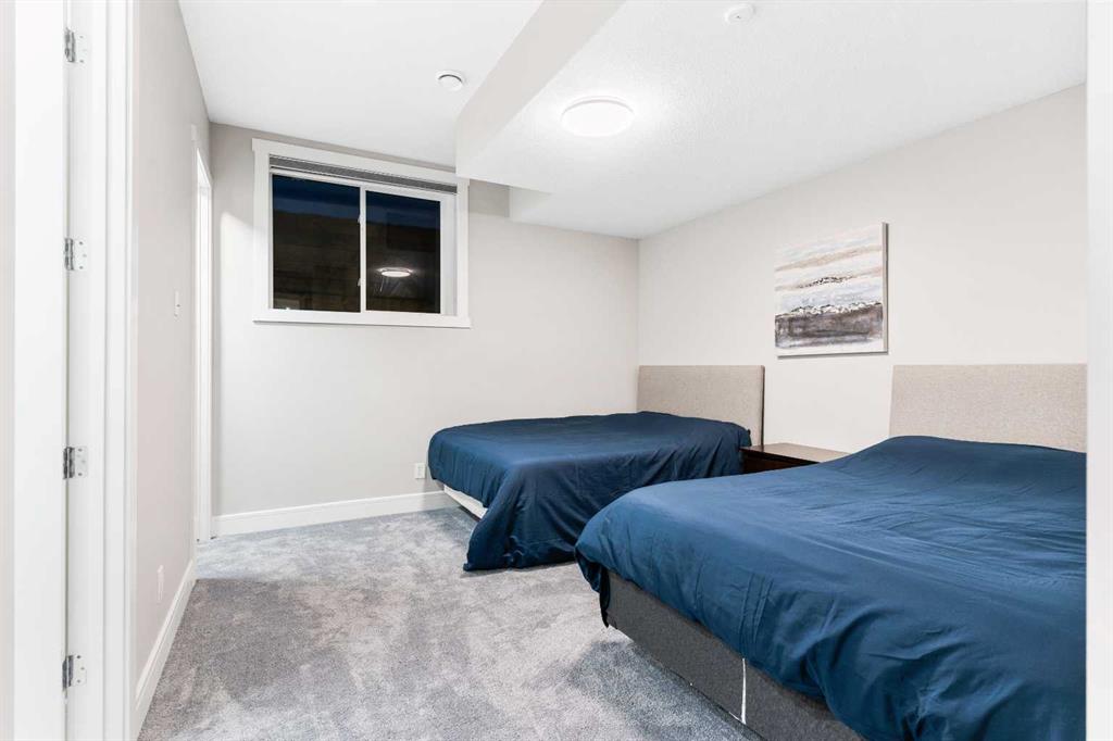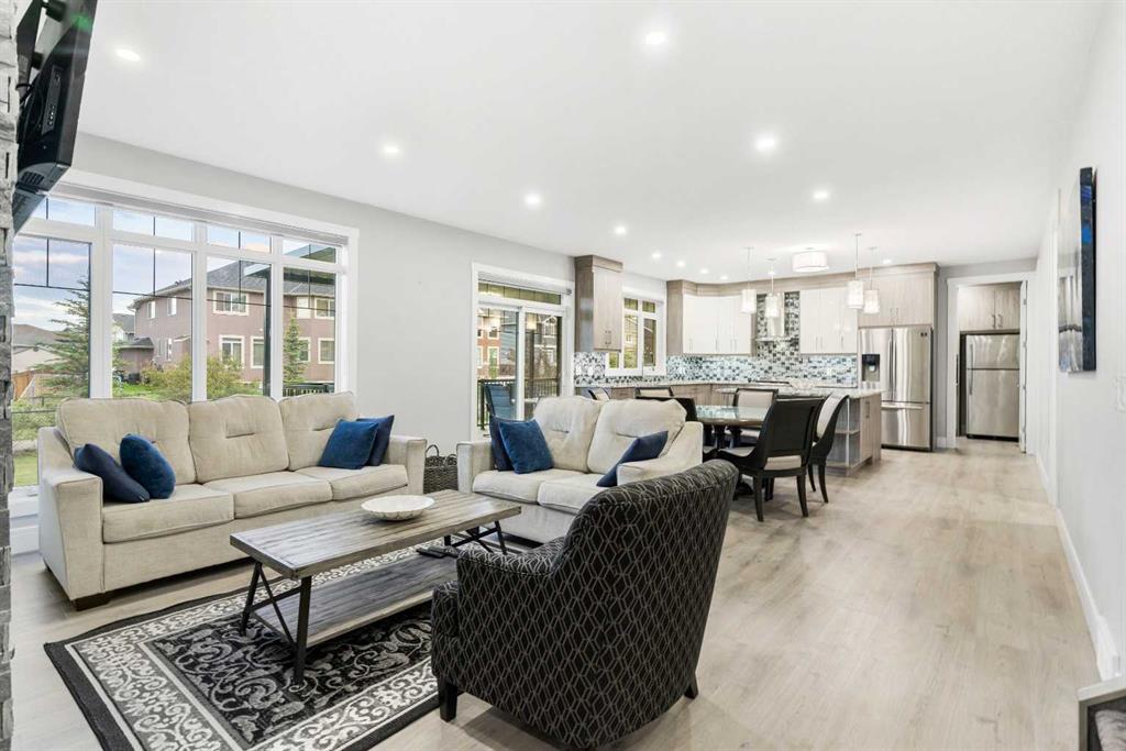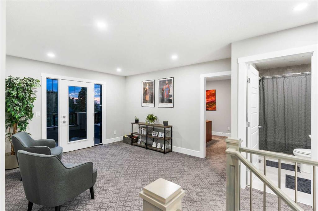 LOCATED on A MASSIVE ESTATE LOT (75ft x 122 ft)! 5 ENSUITES! BEDROOM AND FULL BATH ON MAIN LEVEL! EVERY BEDROOM HAS A W.I.C! COVERED DECK! GORGEOUS BACKYARD! BALCONY WITH LAKE VIEWS! EXTENDED DRIVEWAY! This modern marvel stands out with its combination of dark stone and greyish blue stucco exterior! Offering just under 5100 SQ FT of Quality Luxurious Living Space with 7 Bedrooms, 7 Baths (6 FULL bath and 1 half bath) and Attached Triple Garage! Spacious and functional Open Floorplan Concept. The main floor offers a living room, dining, family room with fireplace, breakfast nook with access to your COVERED DECK and half bath. The kitchen is chef's dream; fully equipped with Quartz Countertops, Stainless Steel Appliances, Kitchen Island, Huge Pantry and SPICE KITCHEN! Another awesome feature on the main level is the BEDROOM WITH ITS OWN ENSUITE! Perfect for families with older individuals. Now make your way to the upper level, featuring a bonus room, FULL bath and 4 bedrooms. Of the 4 bedrooms, 2 are masters with their own ensuites. The grand master however boasts a 5 PC ensuite and a W.I.C fit for a King and Queen! You can access your BALCONY WITH LAKE VIEWS from the bonus room. The laundry feature is conveniently located on the upper level. This home still has more to offer. The FULLY FINISHED BASEMENT WITH SEPARATE ENTRANCE is an amazing place to chill and hangout. Featuring a rec room with WET BAR and 2 bedrooms with ensuites! In addition to this, the basement is roughed-in and setup to be an illegal suite! Moving on to the exterior of the home, you have an extended driveway as well as a large backyard that is spacious and gorgeous! Low maintenance landscape as well! This home is just a stone's throw from Chestermere Lake and has easy access to all the amenities you need! GREAT VALUE! AMAZING LOCATION! HUGE LOT! QUALITY BUILD!
