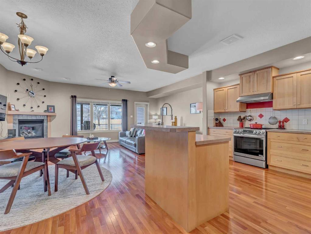 SPACIOUS HALF DUPLEX BACKING ONTO GREEN SPACE! A must-see, this well-maintained, move-in-ready home is located in a mature community close to schools, parks, and walking paths. Enjoy quick access to many of the city’s favourite restaurants, shopping, and major travel routes, while being only a short walk from all the amenities of the Medicine Hat Mall. This home features a modern, spacious layout and numerous recent updates. The open-concept main floor boasts 9-foot ceilings and includes a welcoming living room with a cozy gas fireplace, a large kitchen, and a dining area—all overlooking the beautiful backyard and peaceful green space beyond. Whether you’re enjoying your morning coffee or winding down in the evening, the relaxing views create a calm and inviting atmosphere throughout the main living area. The kitchen offers maple cabinetry, a walk-in pantry, newer stainless steel appliances, and a functional island with upgraded fixtures, including a Blanco sink. Beautiful hardwood flooring throughout this space creates a warm and cohesive look. Also on the main level is a spacious, welcoming foyer with an entry closet, a convenient flex space/boot room, a 2-piece bathroom, and access to the attached oversized single garage, which is fully drywalled, insulated, painted, and equipped with upper storage shelving. Upstairs features recently replaced carpet throughout. The primary bedroom includes a huge walk-in closet and a full ensuite complete with a shower and a deep jetted soaker tub. Two additional generously sized bedrooms, a 4-piece bathroom, and a large laundry room with plenty of cabinetry and shelving, along with a clothing hanging rod complete the upper level. The fully renovated lower level offers new flooring, paint, and upgraded ceiling finishes, along with a modern 2-piece bathroom featuring a new vanity, Toto toilet with bidet, and plumbing roughed-in for the addition of a shower or tub if desired. The oversized open rec room provides the perfect space for family movie nights, kids’ playtime, or gathering with friends to relax and unwind. Outside, the yard is fully fenced and landscaped with the convenience of underground sprinklers. A large covered deck off the living room includes a gas BBQ with a dedicated gas line and a retractable sun/wind screen—an ideal spot for summer BBQs, quiet evenings, or simply enjoying the peaceful green space views. Additional features include central vacuum, central A/C, a water softener, a humidifier, and custom blinds throughout. This is a fantastic home in a desirable location offering comfort, space, and a peaceful setting. Reach out to your favourite agent today for more information or to book your private showing.