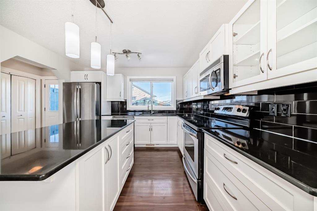 Welcome to 9 Panton View. This well-maintained two-storey EAST facing, NO CONDO FEE home offers exceptional value, NATURAL LIGHT, comfort, and everyday functionality. Perfectly positioned across from a GREEN SPACE and PARK, the inviting front porch provides the ideal setting to enjoy your morning coffee in a peaceful, scenic environment. The OPEN-CONCEPT main floor is bright and welcoming, featuring a spacious living room that flows seamlessly into the dining area and a thoughtfully designed kitchen. Complete with a LARGE ISLAND and BREAKFAST BAR, ample cabinetry, and a sink overlooking the private backyard, this space is both functional and inviting. A convenient two-piece powder room completes the main level. Upstairs, you will find three generously sized bedrooms, including a SPACIOUS primary suite with its own private ENSUITE, creating a comfortable retreat at the end of the day. A full 4-PIECE bathroom and the added convenience of upper-level laundry enhance the home’s practical layout. The unfinished basement offers excellent potential, providing an open canvas for future development to suit your lifestyle. A separate, oversized STORAGE ROOM adds valuable functionality beyond the utility space. Step outside to a fully LANDSCAPED and fenced backyard, complete with a LARGE rear DECK, perfect for outdoor entertaining, and a DOUBLE DETACHED garage with convenient alley access. Ideally located within WALKING distance to SCHOOLS, PARKS, PLAYGROUNDS, and everyday amenities. This home also offers quick access to shopping, dining, and services at The Gates of Panorama Hills. Residents enjoy exclusive access to the Panorama Hills Community Centre, featuring a splash park, multi-sport courts, and a variety of family-friendly amenities. Recent updates include NEW ROOFING and SIDING, along with fresh PAINT and PROFESSIONALLY cleaned FURNACE and CARPETS, allowing for immediate possession. This is a fantastic opportunity to own a move-in ready home in a highly desirable community. Book your private showing today.