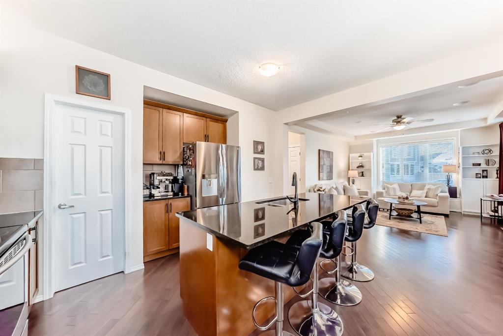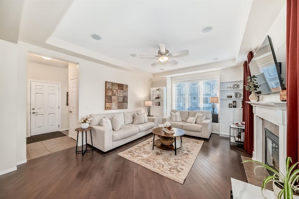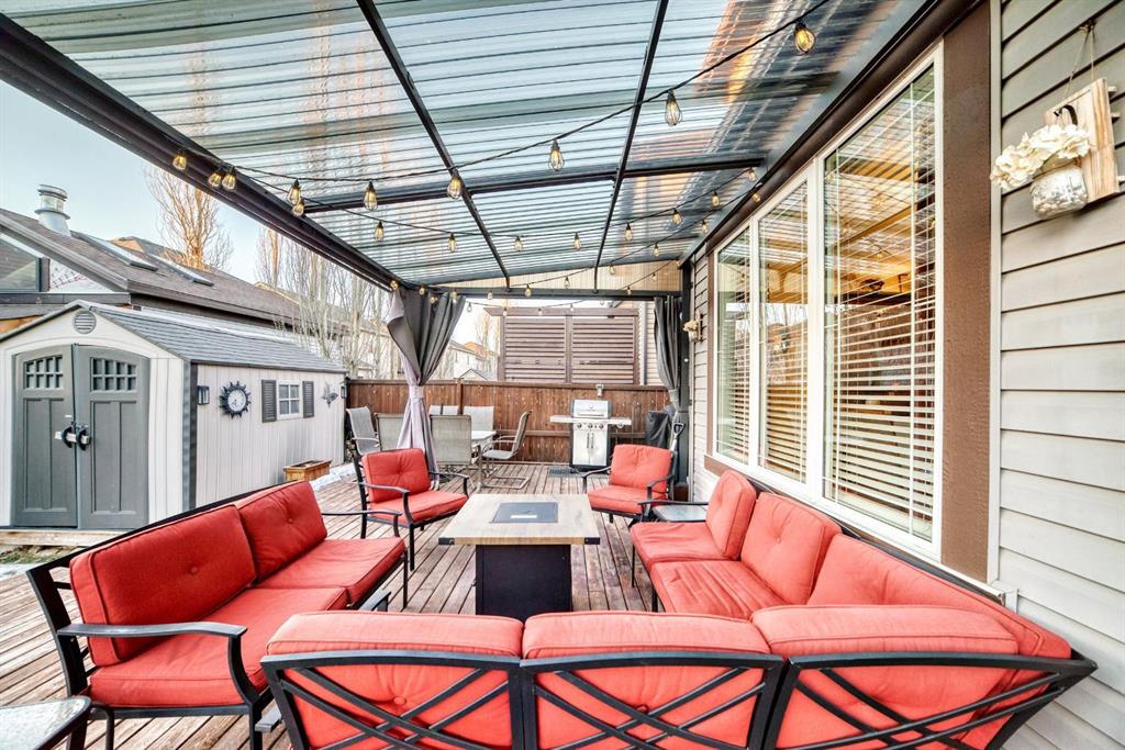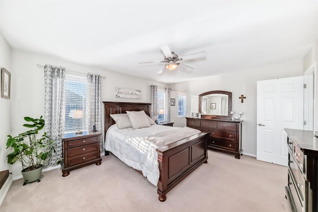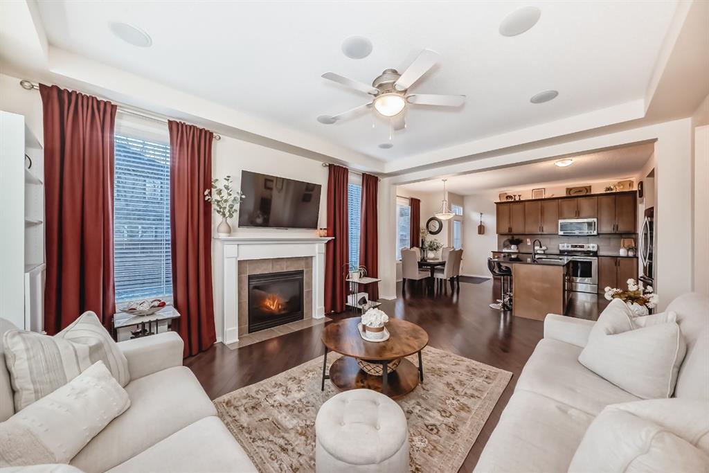 Situated on a sun-filled, SW facing corner lot in the desirable community of Windsong, this exceptionally well-maintained home offers outstanding curb appeal and 1952 sq ft of thoughtfully designed living space, ideal for families. From the moment you arrive, pride of ownership is evident, complemented by lush landscaping with numerous established perennials that enhance the home’s curb appeal and outdoor charm. Upon entry, you are welcomed by a bright, open foyer featuring a stylish wallpaper accent wall and an abundance of natural light. Just off the entrance is a main floor office with a pleasant view of the streets—perfect for working from home. French doors provide privacy when needed while still allowing light to flow through the space, creating a functional yet elegant work environment. The open-concept main floor is highlighted by 9’ ceilings and diagonally laid hardwood flooring, offering both warmth and visual appeal. The living room is bright and inviting, featuring multiple windows, charming built-in bench seating overlooking the street, and in-ceiling speakers for an enhanced entertainment experience. The space is anchored by a beautiful fireplace with a classic mantle and tile surround, making it the perfect gathering spot for family and guests. The adjacent spacious dining area easily accommodates a large table, ideal for everyday meals and entertaining. The kitchen is both stylish and highly functional, showcasing rich espresso cabinetry, granite countertops, and SS appliances. A large central island with seating provides ample prep space and a casual dining option, while the pantry ensures plenty of storage for a busy household. Upstairs, the home offers 4 generously sized bedrooms. The primary retreat is spacious and inviting, complete with a dedicated seating area, walk-in closet, and a 4pc ensuite. Three additional large bedrooms share a well-appointed 4pc main bathroom, and a convenient upper-level laundry room with countertop and built-in shelving adds everyday ease. The SW facing backyard is a true highlight, beautifully landscaped with numerous perennials and designed for both relaxation and entertaining. Enjoy a large ground-level deck off the kitchen, a gazebo complete with lighting and sun shades, and a second designated dining area for outdoor meals. Two gas lines are available—perfect for a BBQ and a fire table. The yard also includes a storage shed, gated access, and receives sunlight throughout the day. The unfinished basement provides excellent future potential, featuring a bathroom rough-in and ample space to add additional bedrooms, a recreation room, or a home gym if desired. Completing the property is a double attached garage, equipped with upper cabinets and shelving for excellent storage and organization. Ideally located close to Windsong Heights School (K-9), Chinook Winds Park, Splash park, and pathways, this home offers the perfect blend of location, functionality, and lifestyle.