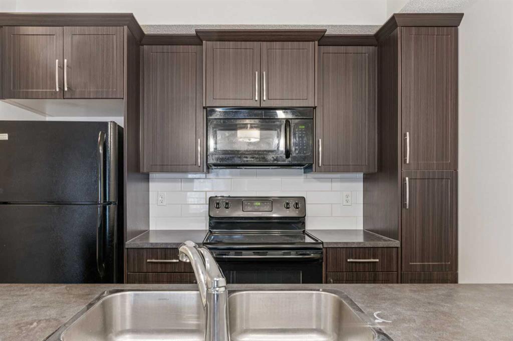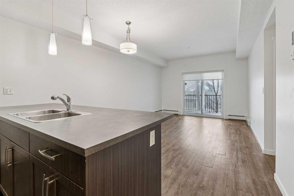 Bright & Contemporary Condo in Sought-After Sunset Ridge! Welcome to this beautifully appointed TWO-bedroom apartment located in The Trading Post of Sunset Ridge, a friendly and well-established community. Offering over 715 sq. ft. of thoughtfully planned living space, this home blends modern design with everyday practicality. The generous primary bedroom, open-concept layout, and inviting eat-in kitchen create a comfortable and functional living environment. Expansive vinyl windows and a patio door allow natural light to pour in, enhancing the bright, open feel throughout the unit. The second bedroom is ready for children, guest to to utilize as a home office, or quiet retreat, adapting easily to your needs, and has a full size closet. This fully sprinklered building provides added peace of mind, while in-suite laundry, a dedicated storage locker, and a heated underground parking stall add everyday convenience. Step onto the spacious covered balcony to enjoy serene southwest ravine views and glimpses of the mountains—an ideal setting to relax at the end of the day. The building boasts durable Hardie plank siding, attractive landscaping, secure underground parking, and well-maintained, light-filled common areas. Elevator access and multiple stairwells ensure easy movement throughout the complex. Unmatched convenience awaits with medical and dental clinics, a pharmacy, and retail services located right on the main floor, along with nearby restaurants, a convenience store, and a gas station just steps away. Experience exceptional value and a connected lifestyle in Sunset Ridge—this condo offers more than just a place to live, it offers a place to feel at home.