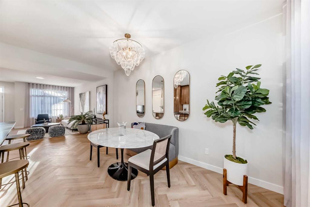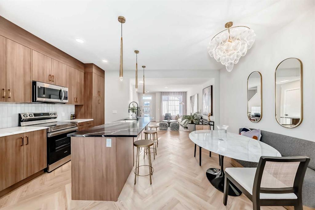 Welcome to this beautifully crafted semi-detached Talo model by Rohit Homes, situated in the vibrant and rapidly growing community of Heartland in Cochrane. This home is an excellent fit for families, first-time buyers, or anyone looking to right-size without compromising on style or versatility. Offering 3 bedrooms, 2.5 bathrooms, and 1,520 sq. ft. of well-designed living space, this brand-new home features a bright, open-concept main floor with 9' ceilings and a seamless connection between the kitchen, dining, and living areas—ideal for both daily living and entertaining. The contemporary kitchen serves as the focal point, complete with quartz countertops, a central island, and modern cabinetry that blend practicality with sophisticated design. At the rear, you'll find a parking pad preserving the home’s inviting curb appeal. Upstairs, the spacious primary suite includes a private ensuite and generous closet space, complemented by two additional bedrooms and a full bathroom—ideal for kids, guests, or a home office. A convenient upper-floor laundry room adds to the everyday ease of living. Set in the dynamic community of Heartland, you'll enjoy quick access to parks, schools, scenic pathways, local amenities, and major routes—making commuting to Calgary or weekend escapes to the mountains a breeze. Don’t miss your chance to live in this stylish and functional duplex in one of Cochrane’s most desirable new neighborhoods—schedule your private showing today! Please