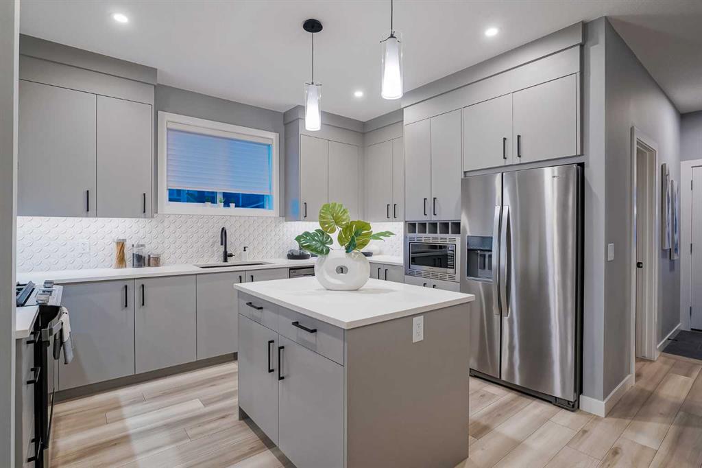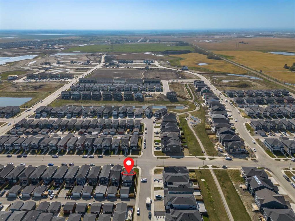 On a large corner lot w/ rare extra parking, this home stands out immediately—for its location, welcoming curb appeal, and design. The backyard holds a double garage, and there’s even room beside it to create an additional parking pad w/ a simple fence modification. Inside, the house is bright from the moment you walk in. Extra windows, open railing, and 9’ ceilings on both the main floor and the 9-foot basement give the home a sense of volume that most properties in the area can’t match. The main floor includes an office that can double as a small bedroom and a half bath w/ a full vanity. The living room centres around an oversized fireplace fit for a King & Queen—framed by custom built-ins that instantly elevate the space. Storage is a quiet strength throughout, w/ a whole pantry wall in the dining area, a kitchen island w/ additional storage, and more cabinet space than you’ll use. The kitchen is clean & modern, w/ excellent sightlines, plenty of prep space, and a smooth flow to the rest of the main level. Upstairs, the primary suite delivers what most buyers are actually hunting for: a well-proportioned bedroom, a walk-in closet w/ built-in shelving/drawers, and an ensuite w/ a large dual vanity, a deep soaker tub and a generous walk-in shower. Two more bedrooms (one w/ a walk-in closet w/ built-ins), a laundry closet, and a full bath finish the floor. The window coverings throughout the home are high-end silhouette-style blinds, an upgrade that adds softness & light control. Additional upgrades include A/C, a water softener, and a complete radon mitigation system for peace of mind. The basement remains unfinished but is well set up, w/ 9’ ceilings, two large egress windows, and a layout that makes future development straightforward. Outside, the yard is fully fenced & freshly stained. The roof on both the house & the garage is new as of October 2025. At 1,651 sq ft above grade, this home offers a balanced, intelligently designed layout in a location that’s only getting better w/ every new amenity being built around it. The corner lot, the light, the upgrades, the storage, the parking—everything adds up to a home that’s hard to beat in this price bracket. Chelsea continues to grow into one of Chestermere’s most appealing new communities, w/ pathways a block from the home that link you to parks, playgrounds, and the extensive trail system shared w/ neighbouring Dawson’s Landing—including future pathway access to the 22-acre eco-park located a few blocks away. Amenities are on the way as well. A new public K–9 school in Dawson’s Landing has full construction funding; a future Grades 10–12 public high school is planned for Chelsea; and a new Catholic K–9 school is also in the works. Chelsea’s upcoming shopping district will add everyday conveniences, including a future grocery store and additional retail and services, all within minutes of the home. It’s a location w/ strong outdoor appeal today and meaningful long-term upside as the community build-out continues.