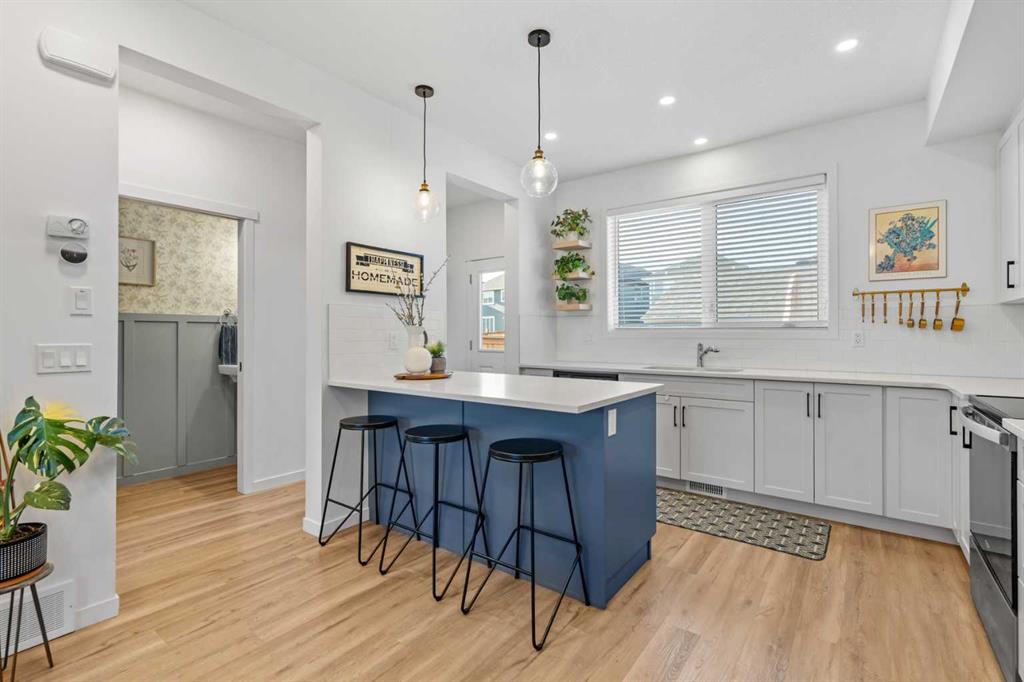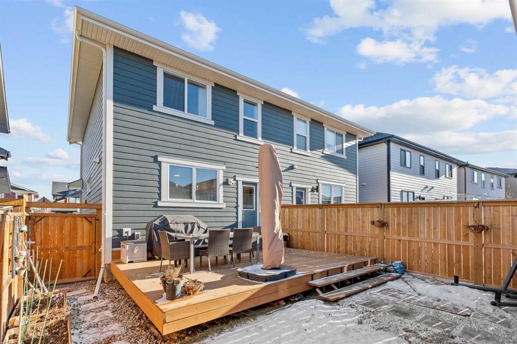 **OPEN HOUSE SAT JAN 31 12PM-3PM + SUN FEB 1 2PM-4PM** BEAUTIFUL SEMI-DETACHED HOME | 4 BED / 3.5 BATH |2000+ SQ FT OF LIVING SPACE | FULLY DEVELOPED BASEMENT | OVERSIZED DOUBLE DETACHED GARAGE | SUNNY SW FACING BACKYARD | LAKE COMMUNITY OF MAHOGANY Welcome to this modern, move-in-ready semi-detached home located in the highly sought-after lake community of Mahogany, offering unbeatable access to year-round amenities, pathways, parks, schools, shopping, and the Mahogany Beach Club. From the moment you arrive, you will appreciate the clean, contemporary exterior and low-maintenance landscaping that make everyday living easy. Step inside to a bright and functional main floor layout designed for both comfort and entertaining. A spacious foyer welcomes you in and flows seamlessly into the front living room, with the dining area perfectly positioned in the center of the home and the kitchen tucked at the rear. The kitchen showcases modern finishes, including dual-tone cabinetry, stainless steel appliances, and ample counter and storage space. Off to the side, you will find a thoughtfully updated mudroom and 2-piece bathroom, both renovated beyond builder-grade finishes to elevate the overall feel of the home. Upstairs, the primary bedroom is truly impressive, large enough to comfortably accommodate a king-sized bed, complete with a walk-in closet and a private 4-piece ensuite bathroom. Two additional well-sized bedrooms, another full bathroom, and a conveniently located upper-floor laundry room complete this level, making it ideal for families or busy professionals. The fully developed basement adds even more living space, featuring a spacious recreation room perfect for movie nights or a home gym, a large fourth bedroom with its own walk-in closet, a full bathroom, and plenty of additional storage space. Outside, enjoy a sunny southwest-facing backyard that offers excellent sun exposure throughout the day. The large deck is perfect for summer BBQs and relaxing evenings. There’s also a gas line for your BBQ as well! All while minimal lawn care keeps maintenance to a minimum. Completing the property is an oversized double detached garage, providing ample space for vehicles, storage, or hobbies. Recent upgrades to the home include the following: Garage, Half Bath Reno, Mudroom Reno + Light Fixtures (2025), Backyard Landscaping (2023), Deck (2022). This home offers space, style, and access to one of Calgary's best lake communities, all in a well-designed, move-in-ready package. Do not miss this opportunity, book your showing today!