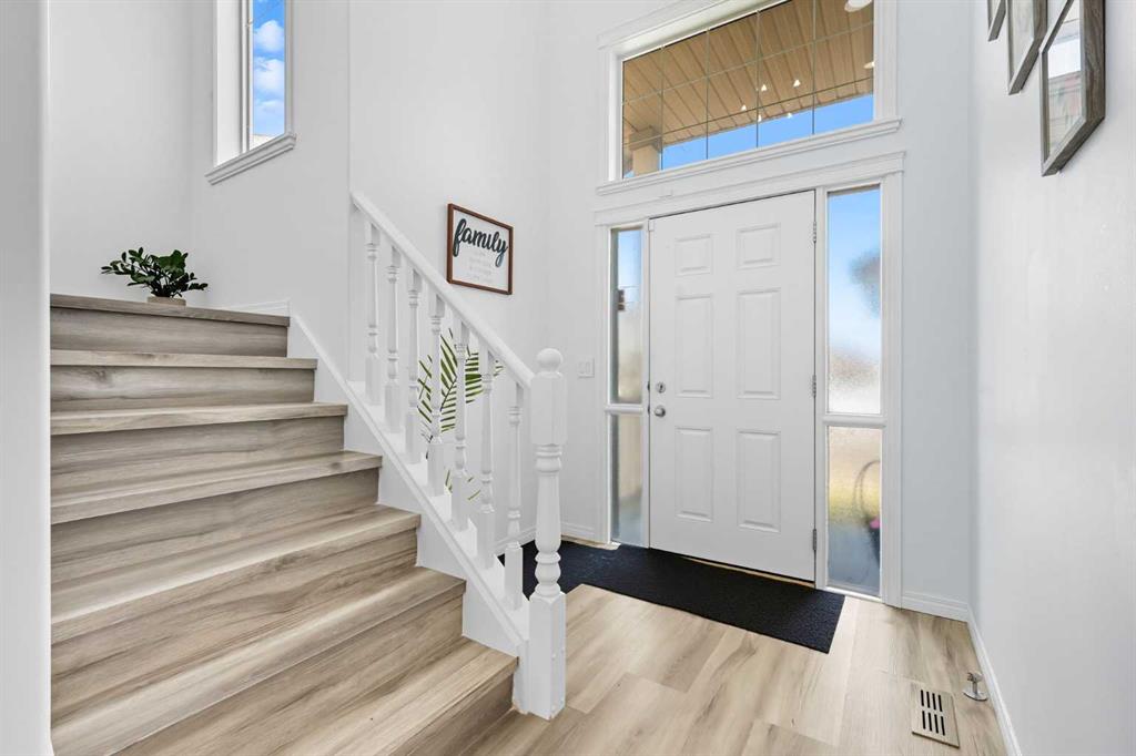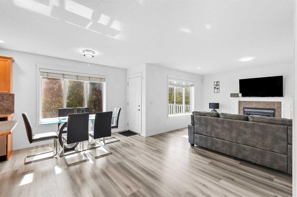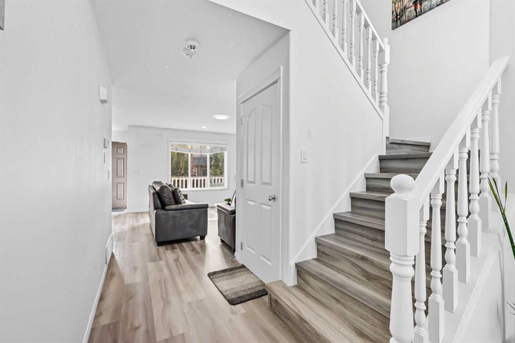 Welcome to this beautifully updated 5-bedroom, 3.5-bathroom home offering over 2,400 sq. ft. of total living space in one of Airdrie’s most prestigious and peaceful cul-de-sacs. Perfect for first-time buyers or growing families, this home sits on a massive lot with incredible curb appeal and is just steps from playgrounds, parks, and everyday amenities. Inside, you’ll love the brand-new vinyl flooring, fresh paint throughout, modern pot lights and flush-mount lighting, updated toilet seats, and sleek new stainless steel appliances. The main floor is bright and open with large south-facing windows, a cozy gas fireplace, and plenty of space for family gatherings. Upstairs, you’ll find three generously sized bedrooms including a spacious primary suite with a walk-in closet and private ensuite, plus a versatile bonus room. The fully developed walkout basement features a 2-bedroom illegal suite with its own washroom, full kitchen, separate laundry, appliances, rec room/living area, and a private entrance—perfect for rental income or extended family living. Step outside to your private backyard oasis featuring a two-tiered deck, mature trees, and a stunning waterfall stream feature that creates a serene retreat. With a double attached garage, expansive driveway, and an unbeatable location close to schools, shops, and Nose Creek Park, this property truly has it all. Don’t miss your chance to own this one-of-a-kind property—book your private showing today with your favourite realtor!