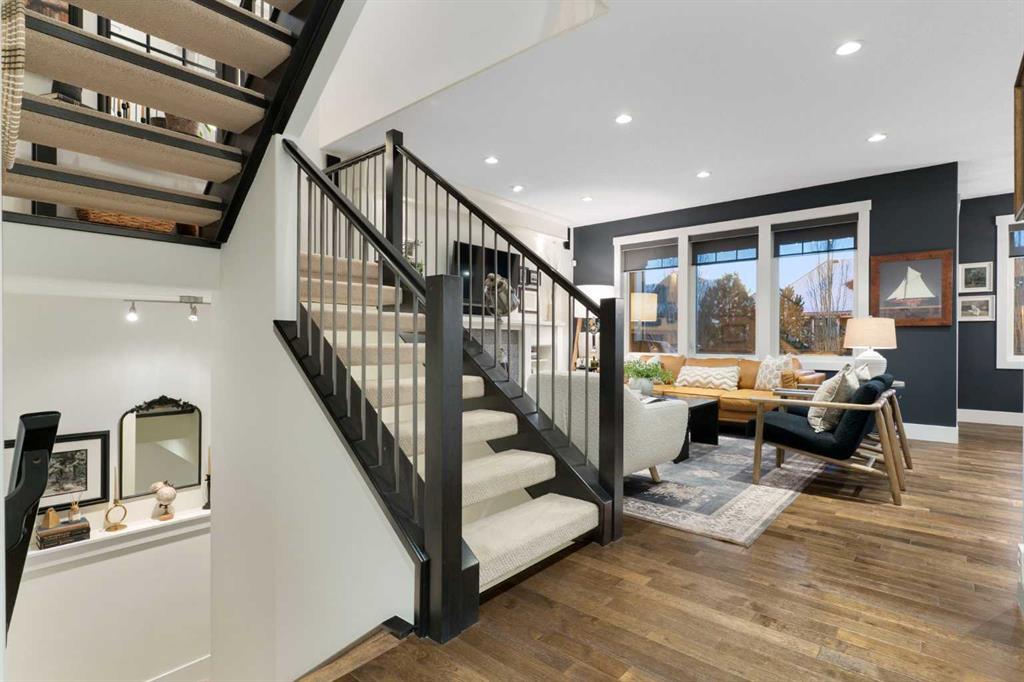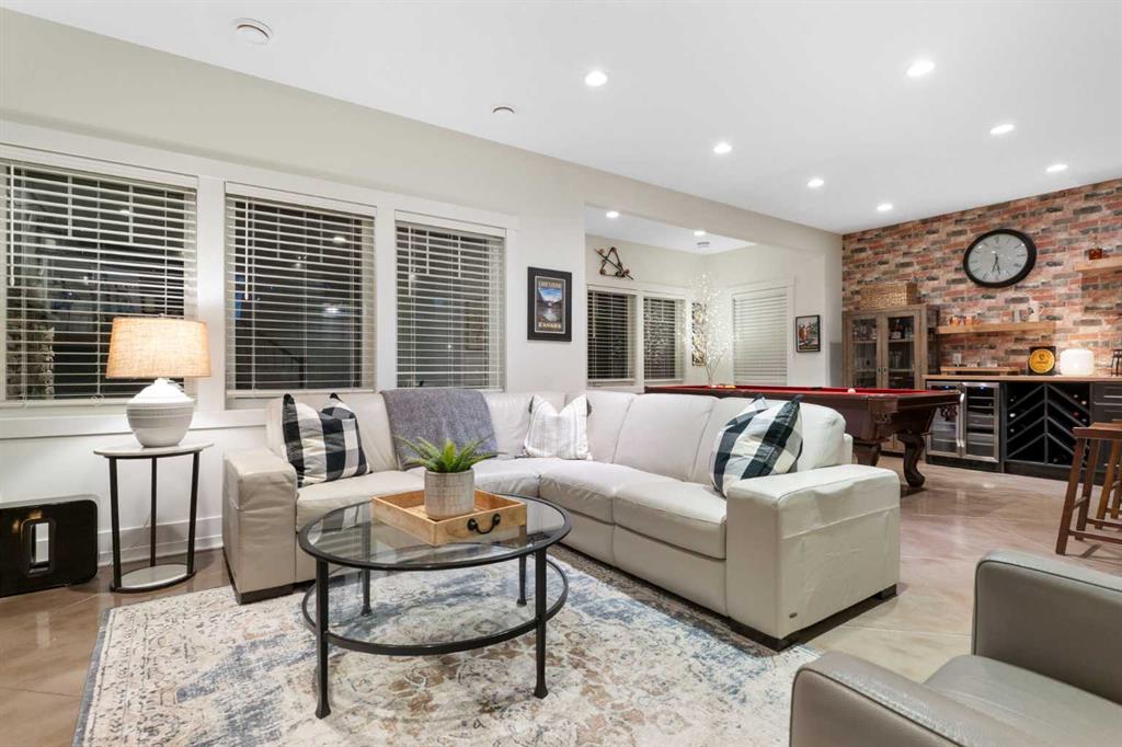 Hello, Gorgeous! Welcome to 267 Coopers Hill, a west-facing walkout estate home backing directly onto the pathway system in the prestigious community of Coopers Crossing. Located on a quiet street, this beautifully upgraded residence offers timeless design, thoughtful functionality, and refined finishes throughout. Nine foot ceilings span all three levels, while expansive windows fill the home with natural light and frame peaceful green space views. The main level features a welcoming sunken entry with travertine tile and custom millwork, leading into an open concept living space anchored by a chef-inspired kitchen. Quartz countertops, full-height cabinetry with crown molding, a striking backsplash, and a premium appliance package updated in 2024 including a gas cooktop and double wall ovens create a space ideal for entertaining. The dining area opens onto a full-width west-facing deck, while the living room showcases custom built-ins surrounding a natural gas fireplace. Upstairs, a spacious bonus room, three generously sized bedrooms, and upper-level laundry provide a functional family layout. The primary retreat features vaulted ceilings, a custom walk-in closet, and a spa-inspired ensuite with heated floors, dual sinks, a soaker tub, and a glass shower. The fully developed walkout basement offers polished concrete floors with in-floor heating, a gas fireplace, a custom bar area, a fourth bedroom, and a three-piece bathroom. The covered walkout patio includes a third gas fireplace enclosed by phantom motorized screens and is prewired for a future hot tub or sauna. The professionally landscaped west backyard offers mature trees, privacy, and direct access to the pathway system. Over 120,000 dollars has been invested in upgrades since 2022, including new appliances in 2024 and replacement of the furnace and hot water tank in 2022, making this home truly turnkey. Additional highlights include gemstone exterior lighting, central vacuum, water softener, upgraded insulation, and a fully finished heated garage with epoxy flooring and extensive storage. This exceptional property offers elevated estate living in one of Airdrie’s most desirable neighbourhoods.