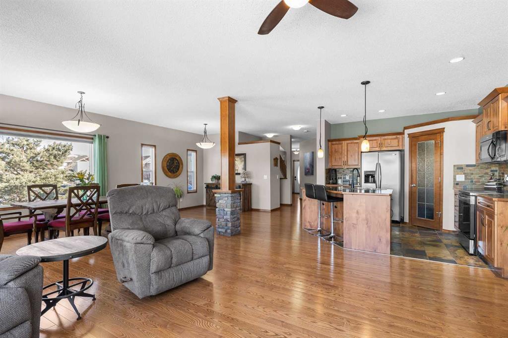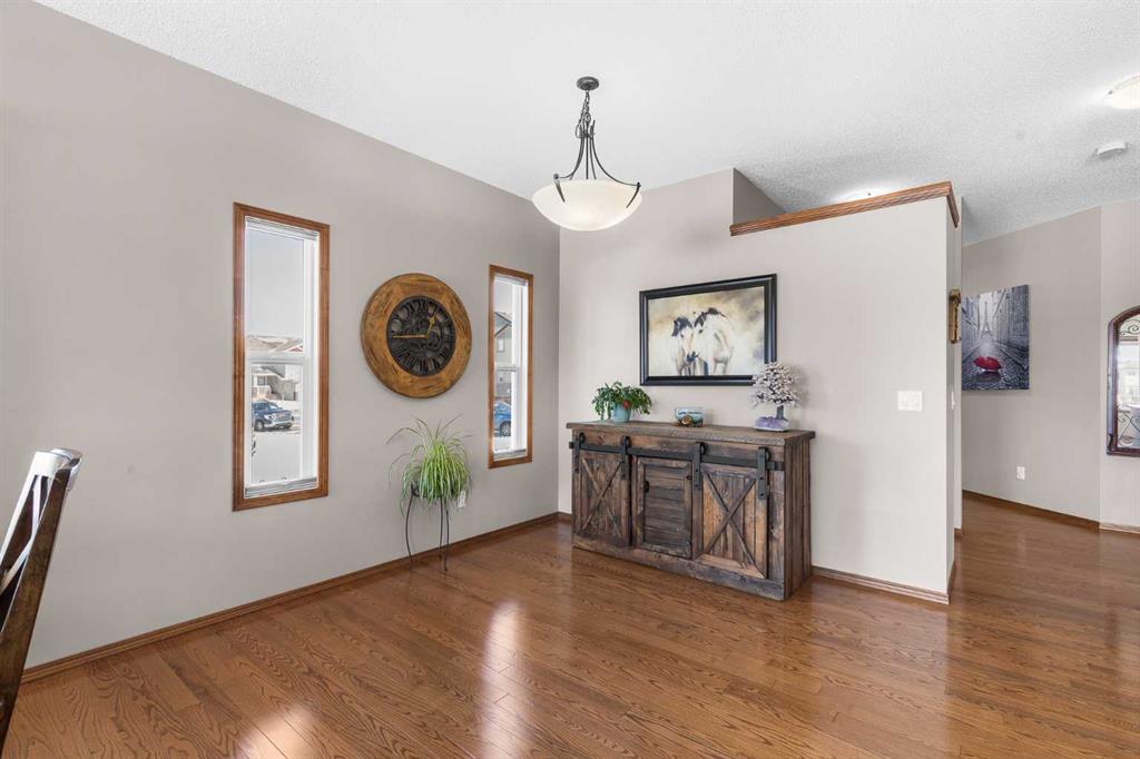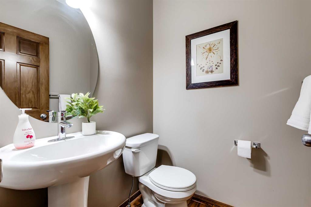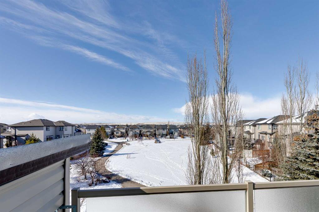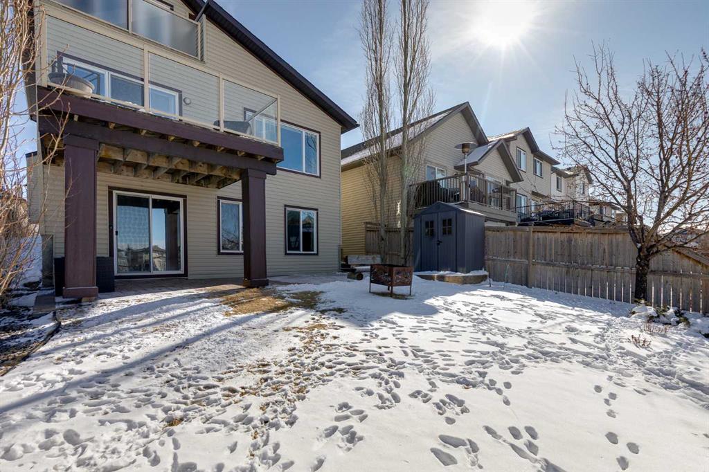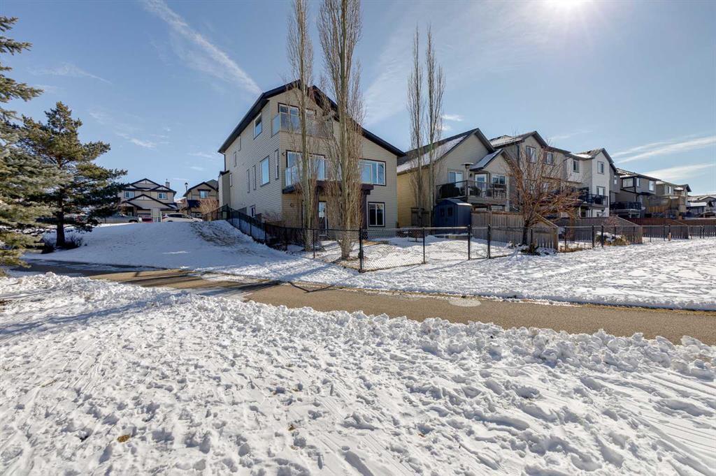 Welcome to this exceptional two-storey home in the highly desirable community of Prairie Springs in Airdrie, offering over 3,200 square feet of beautifully designed living space and a location that is truly hard to beat. Perfectly positioned on a corner lot with green space on two sides and a playground just behind, this home enjoys an abundance of natural light thanks to additional windows and the privacy of having no neighbours directly behind or beside you. Walking paths and scenic parkways are just steps away, inviting you to explore the outdoors right from your doorstep. The main floor is bright, open, and welcoming, featuring warm hardwood floors, rich-toned cabinetry, and a thoughtfully designed layout ideal for both everyday living and entertaining. The kitchen offers a walk-through pantry, generous workspace, and flows effortlessly into the spacious dining area and inviting living room, complete with a cozy fireplace. Just off the garage, a large and unique mudroom provides the perfect drop zone for busy households. Step outside onto the upper deck overlooking the beautifully manicured, fenced yard, complete with a shed and a covered lower patio — perfect for summer evenings or weekend gatherings. Upstairs, you’ll find three spacious bedrooms, including an oversized primary retreat featuring a charming reading nook and a private balcony — ideal for morning coffee or an evening glass of wine. The luxurious ensuite includes a waterfall soaker tub, separate shower, and walk-in closet. The additional bedrooms are versatile for children, guests, or home office space. Convenience continues with an upper-floor laundry room equipped with full-size machines and hanging space. The fully finished walk-out basement expands your living options even further. It features a large recreation room with plenty of space for movie nights, games, or a work-from-home setup, along with a bedroom, kitchenette area (illegal suite), storage, and a renovated 3-piece bathroom. A second laundry area with newer stackable machines adds flexibility for multi-generational living or guests. Surrounded by mature trees, green space, and plenty of street parking for visiting friends and family, this home combines space, privacy, and lifestyle in one of Airdrie’s most loved neighbourhoods.