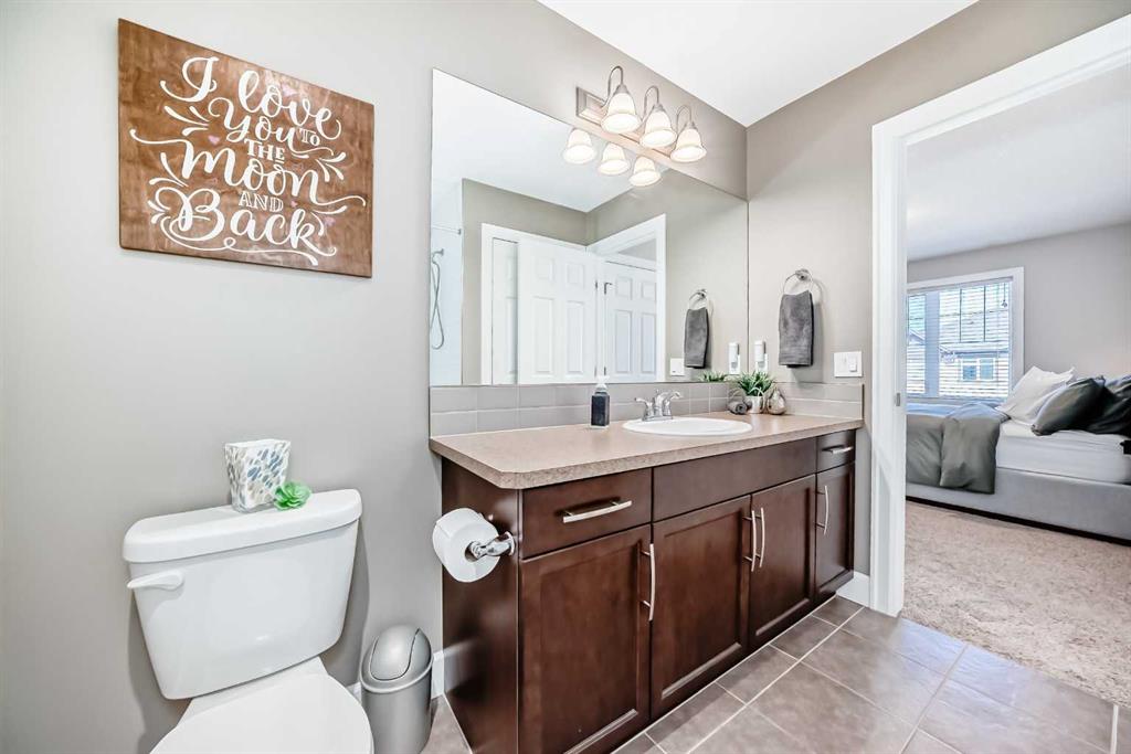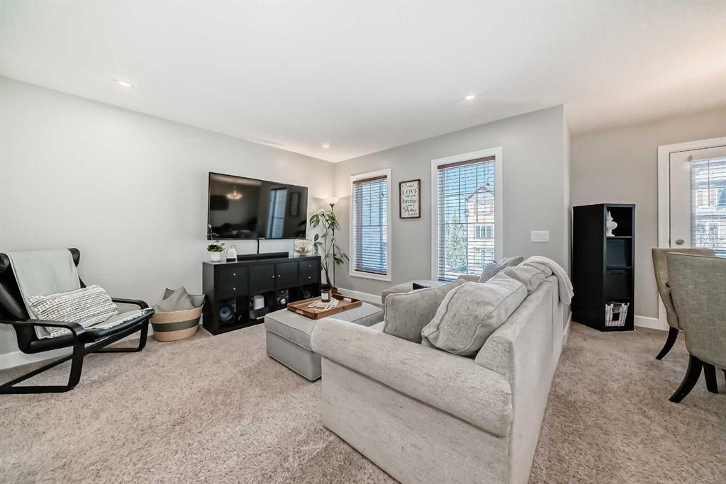 Hello, Gorgeous! Welcome to this beautifully maintained home in the sought-after community of Windsong in Airdrie, offering over 1,368 sqft of above-grade living space, no condo fees, and a layout designed for comfortable everyday living. This 2-bedroom, 1.5-bath home is an excellent opportunity for first-time buyers or investors looking for value, functionality, and a move-in ready property. The main living area is bright and inviting, featuring a well-designed layout with a spacious living room, dedicated dining area, and a functional kitchen complete with ample cabinetry, pantry storage, tiled flooring, and an oversized island perfect for casual dining or entertaining. Step outside to the private front balcony with glass privacy panels, aluminum railing, and BBQ hookup, creating an ideal space to relax or host. Upstairs, you’ll find two generously sized bedrooms, including a primary retreat with a large walk-in closet and convenient cheater ensuite access. A bonus nook at the top of the stairs provides flexible space for a home office, reading area, or additional storage. The lower level offers a spacious front entry, main floor laundry, and a large utility room with additional storage options. The fully drywalled single attached garage and driveway provide added convenience and practicality. Situated on a quiet, low-traffic street close to walking paths, parks, shopping, and everyday amenities, this home delivers a perfect balance of comfort, location, and long-term value.