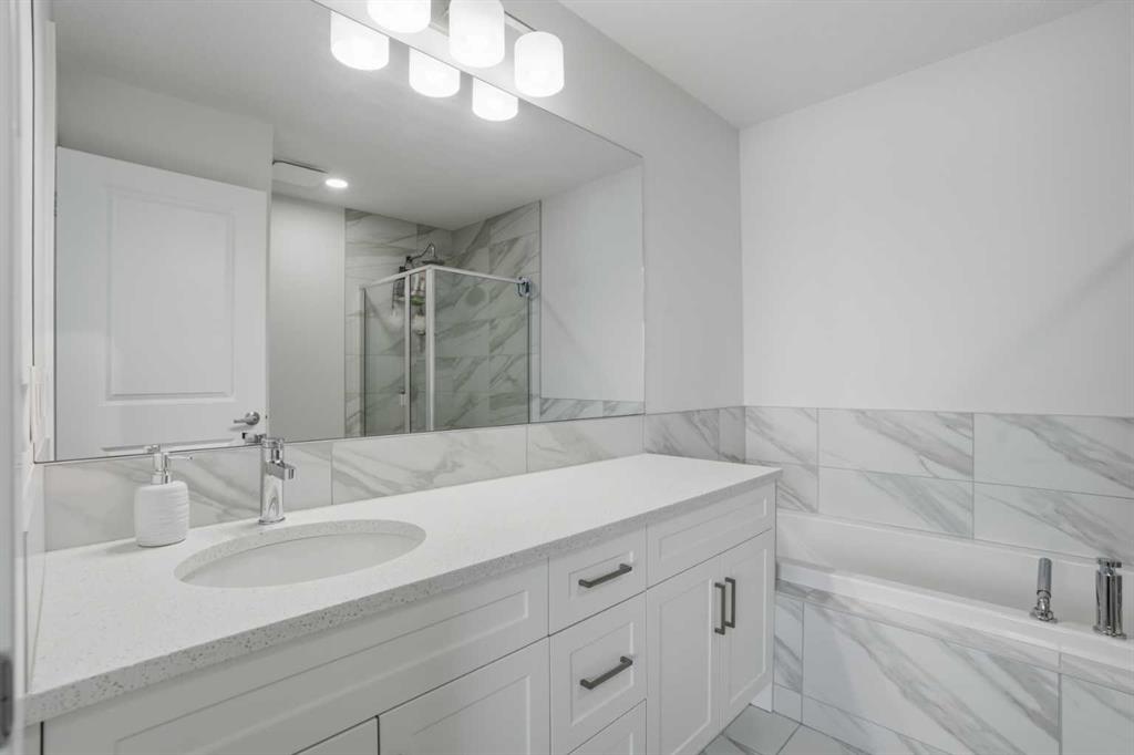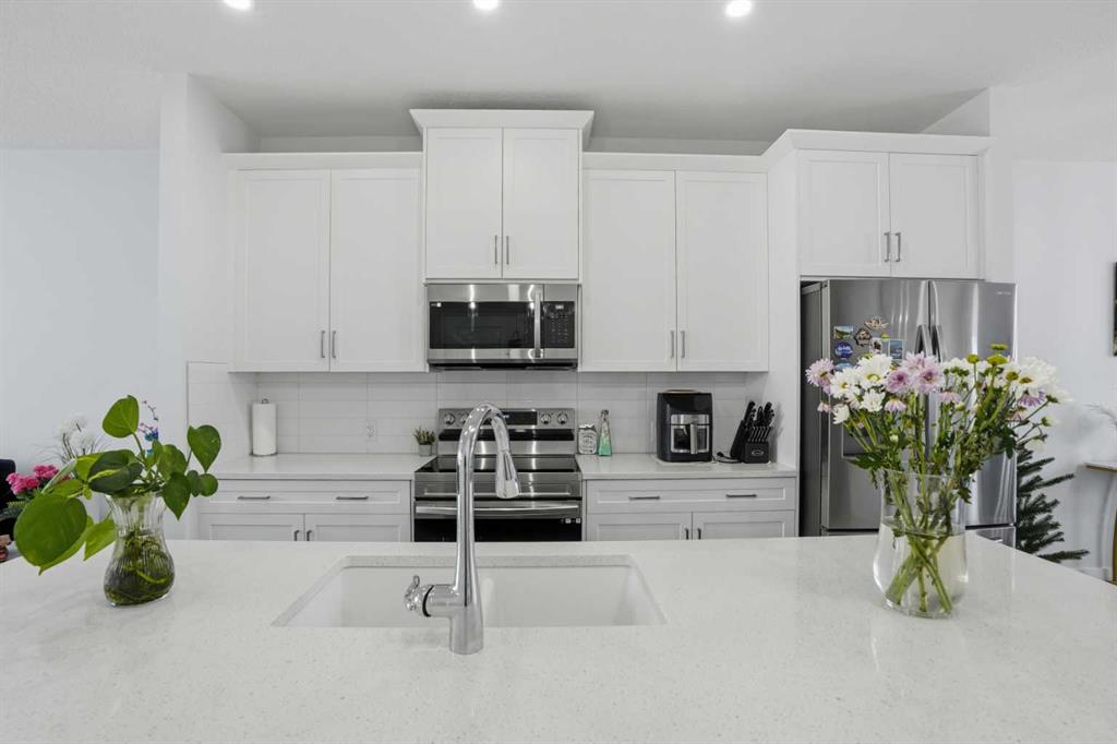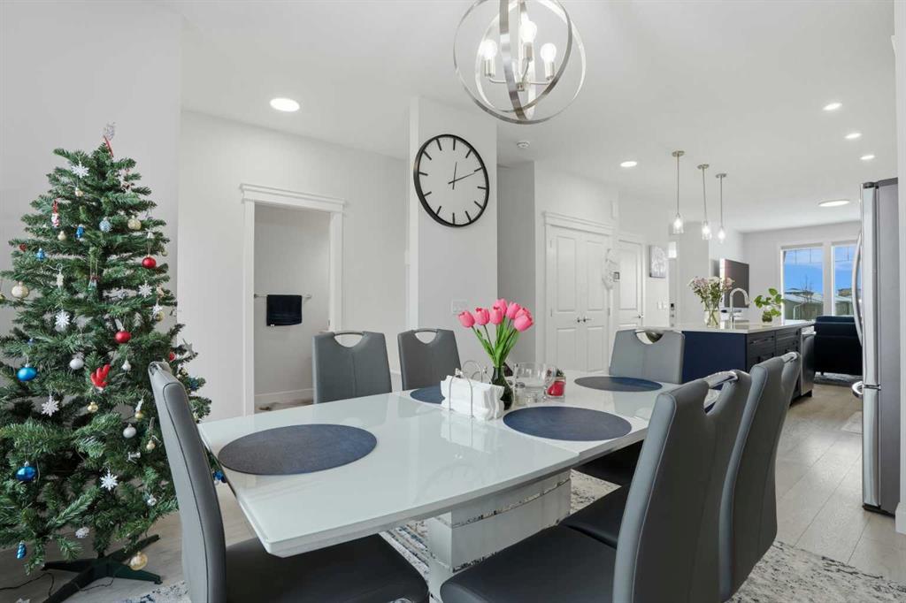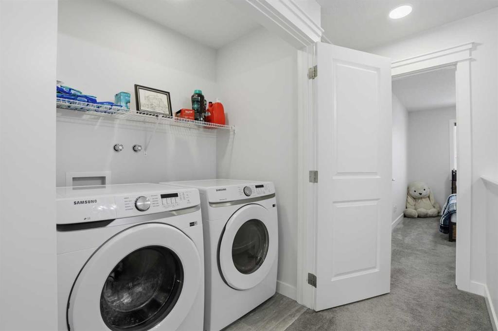 Fully Upgraded | Semi-Detached | 1,588 SqFt | Quartz Countertops | High Ceilings | Wide Plank Flooring | Large Windows | Great Natural Lighting | Two Toned Kitchen | Stainless Steel Appliances | Kitchen Island with Barstool Seating | Pantry | Mud Room & Powder Room | 3 Spacious Upper Level Bedrooms | 2 Full Bathrooms | Upper Level Laundry | Unfinished Basement | Great Backyard | Deck | Fully Fenced | Double Detached Garage with Rear Lane Access. Here's your opportunity to reside in 9 times community of the year: Copper Crossing in Airdrie. This fully upgraded, semi-detached house is available for quick possession. This 2023 built property comes with a plethora of stunning upgrades, a double detached garage, and a side entrance to the 9ft high basement. The entrance opens into a spacious living area bright with natural light. The open concept floor plan adjoins the living room to a gorgeous two tone kitchen that has a large island, quartz counters, stainless steel appliances, plenty of cabinets along with a spacious pantry. The rear dining room overlooks the backyard. The mud room is located perfectly, just next to the rear entrance with access to the garage, backyard, and a wooden deck with a barbeque gas line. This level is complete with a 2pc powder room. Upstairs, this house features 3 bedrooms, a laundry area, and 2 full bathrooms. The primary bedroom spacious enough for a king-size bed, has a walk-in closet and 5 pc ensuite with a separate stand-alone shower and a soaker tub. The other two rooms are cozy and well-lit, sharing a common 4pc bathroom with a tub/shower combo. The unfinished basement is a blank canvas for your future development needs. The basement has a separate entrance and a 3 pc rough-in. The mechanicals are neatly done in one corner which leaves a good space for future developments. Outside, the backyard has the deck for summer BBQs but is also fully fenced which adds to your family's price. Hurry and book your showing today, because this one is sure to sell fast!