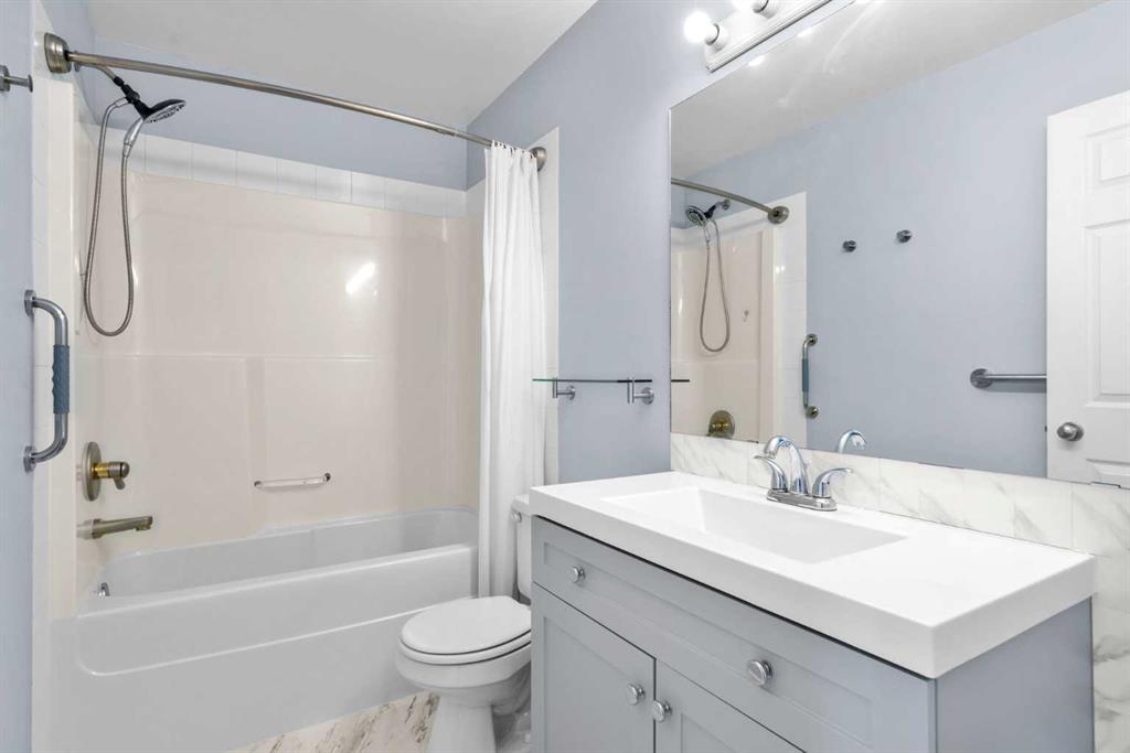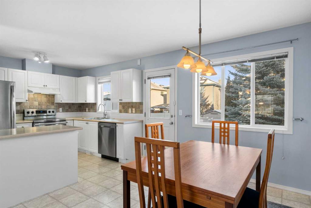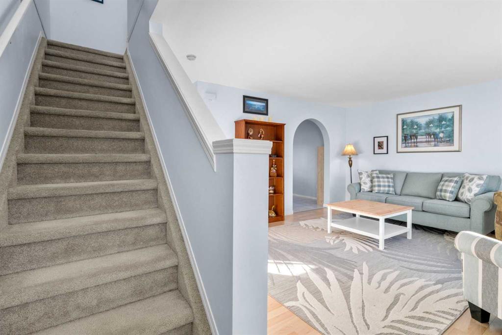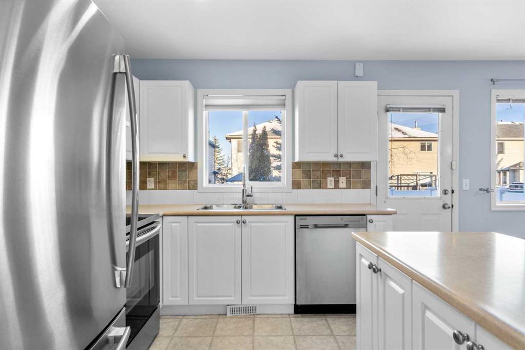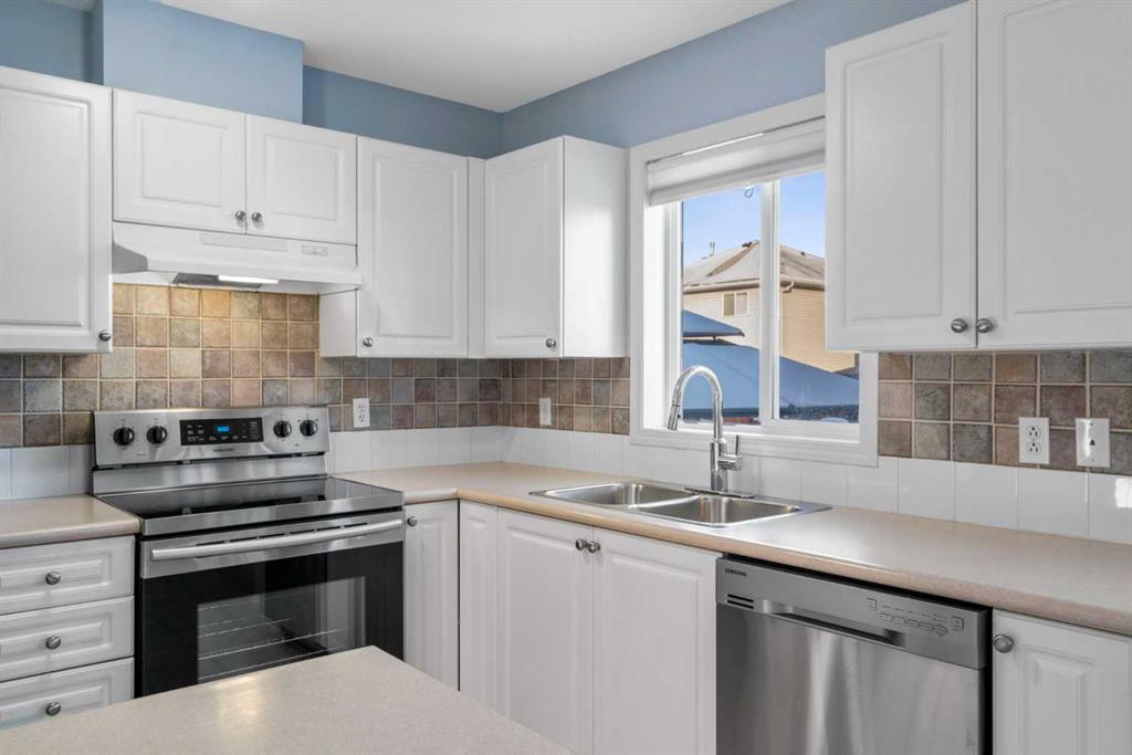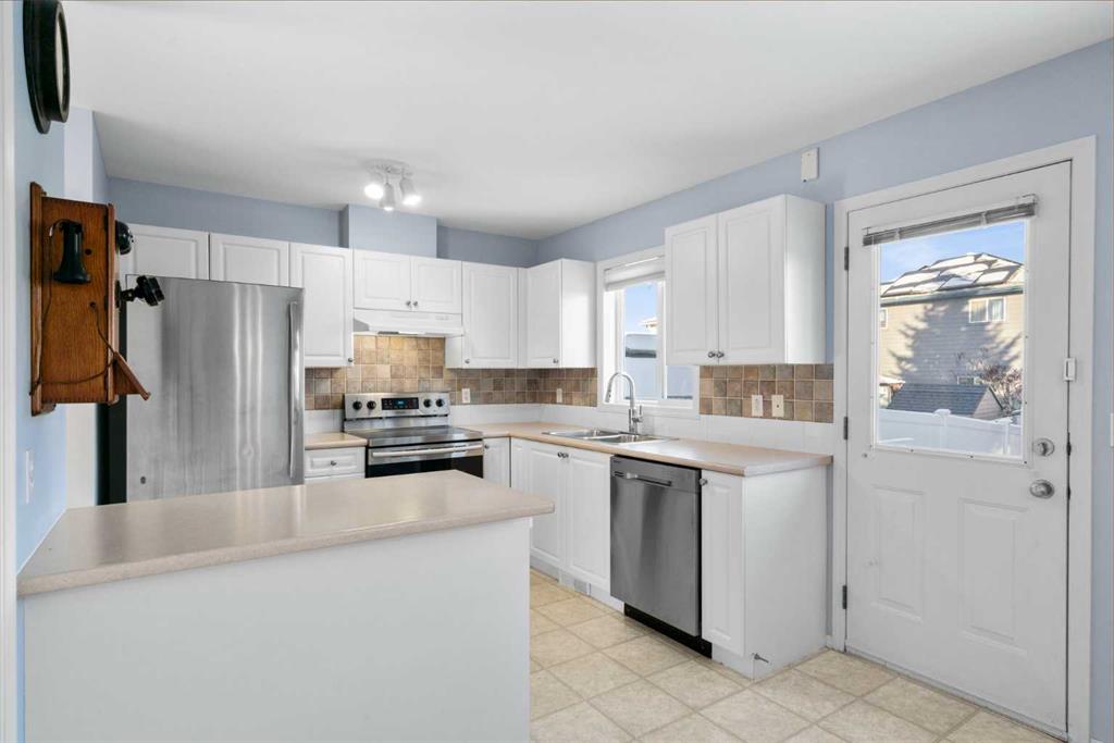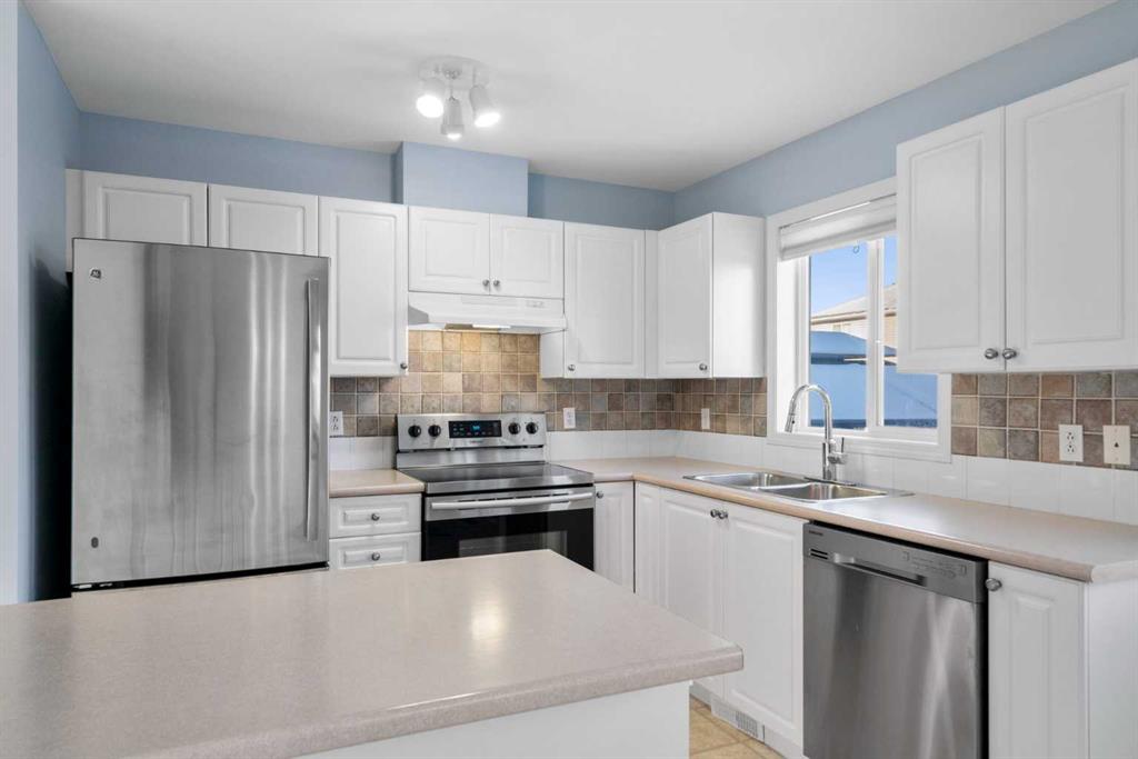 Welcome to Stonegate Crossing, where comfort, convenience, and outdoor space come together in one of Airdrie’s most well-located townhome communities. This well-maintained 3-bedroom, 1.5-bath townhome offers 1,228 sq. ft. of bright, functional living space and one of the home’s most sought-after features — a large, fully fenced and private backyard, perfect for kids, pets, and relaxed outdoor living. Whether it’s summer BBQs, a safe place for children to play, or room for your dog to roam, this yard truly sets the home apart. The open-concept main floor is filled with natural light thanks to large south-facing windows, creating a warm and welcoming atmosphere. Durable laminate flooring flows through the living space, leading into a clean, timeless kitchen with white cabinetry, stainless steel appliances, and a versatile island — ideal for everyday living or casual entertaining. The adjacent dining area opens directly to the patio and backyard, making indoor-outdoor living effortless. Upstairs, you’ll find three generously sized bedrooms, including a peaceful primary retreat, along with an updated 4-piece bathroom designed for both comfort and practicality. The full unfinished basement provides excellent storage today and a blank canvas for future development, while the high-efficiency furnace adds peace of mind and year-round comfort. Enjoy the convenience of two assigned parking stalls right outside your front door, plus visitor parking immediately adjacent. This pet-friendly complex is exceptionally well-managed and offers some of the lowest condo fees in Airdrie at just $353/month, delivering outstanding value. Ideally located within walking distance to schools, playgrounds, shopping, restaurants, Superstore, and Canadian Tire, with easy access to major routes — this home offers a lifestyle that’s both simple and connected. Whether you’re a growing family, a pet owner, or a buyer looking for space, value, and long-term flexibility, this is an opportunity you won’t want to miss. Book your private showing today and experience the lifestyle at Stonegate Crossing for yourself.