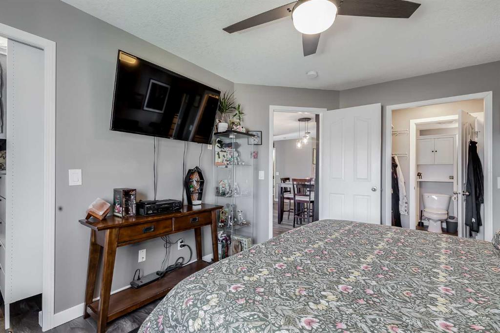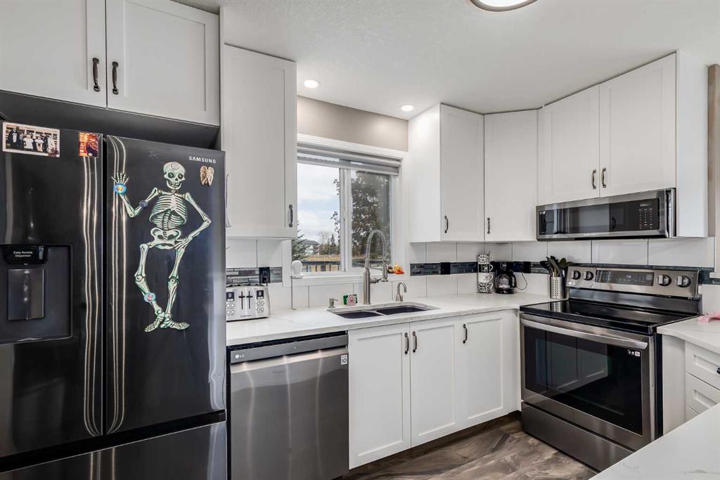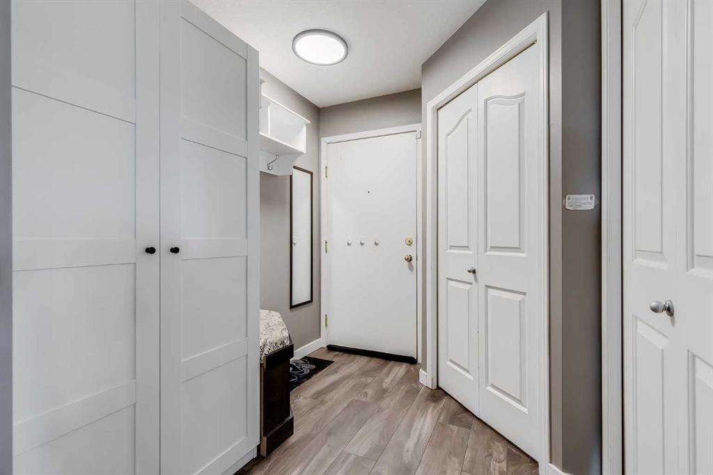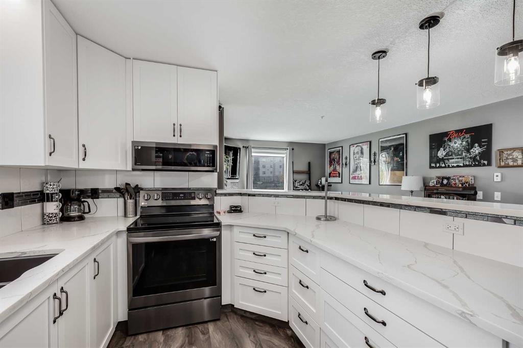 This stunning 2-bedroom, 2-bathroom condo is a rare find — over 1000 sq ft, and beautifully renovated from top to bottom! This unit is set in one of Airdrie’s most peaceful locations, backing onto a serene pond alive with birds and nature. Inside, every detail has been refreshed: new paint, flooring, trim, light fixtures, knock-down ceilings, and a brand-new kitchen with quartz counters, stylish cabinetry, hidden spice rack, “magic corner” storage, and all new stainless-steel appliances. Thoughtful touches continue throughout — built-in storage, an extra fridge and freezer, and new washer & dryer. The spacious primary suite offers not one but two walk-in closets with built in storage, and a full ensuite. Enjoy morning coffee or evening sunsets on your large wraparound patio with no neighbours in sight. This well-managed building includes ALL utilities (heat, electricity, water, sewer, garbage, insurance, and reserve fund) — truly worry-free living. Comes with one titled underground stall and one above-ground stall for convenience. Peaceful, stylish, and completely move-in ready — this is the perfect blend of comfort, quality, and quiet living right in the heart of Airdrie.