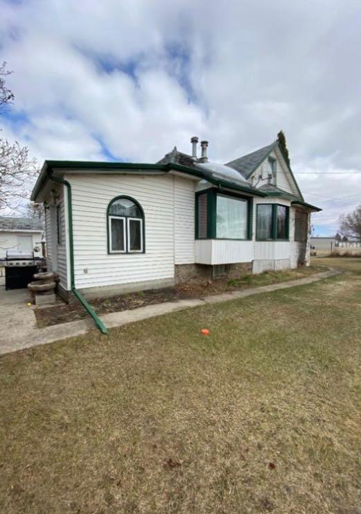 Step back in time with this beautifully preserved 1919 character home in the charming village of Bawlf Alberta. Nestled on a spacious, private lot, this property offers the perfect balance of small town, peace and timeless craftsmanship . Full of original charm, the home features, hardwood floors, an authentic tin ceiling, and countless vintage details that tell a story of a bygone era. Thoughtful updates, including main floor, laundry, bring modern convenience to this classic space. Outside, you’ll find two garages – one original to the property and one built in 1999 – offering plenty of room for storage, hobbies or a workshop. The yard is surrounded by mature trees and wooded area, providing exceptional privacy, and no neighbours on the north side. This unique property is a rare opportunity for anyone who loves heritage homes, quiet, living, and the charm of Alberta historic communities. Only 20 minutes east of Camrose, Bawlf offers on of the highest ranked K-12 schools in the province. Quaint but a lot to offer!