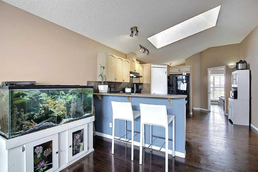 EXCELLENT VALUE. Welcome to this lovely, beautifully maintained corner lot bungalow in the beautiful community of Mackenzie Town. Nicely updated, this 2 bdrm 1.5 bath home has wood flooring, vaulted ceilings, a detached dbl garage, nice deck and gazebo and an ILLEGAL 2 BEDROOM SUITE DOWNSTAIRS WITH SEPARATE ENTRANCE. Walking in there is an entrance way with a coat closet, then into the open floor plan with a good-sized kitchen with plenty of cabinet and counter space, a breakfast bar and a pantry. Wardwood flooring throughout the kitchen, dining and living room. The room is vaulted, with huge oversized high windows allowing an abundance of natural light in. The living room will fit your big furniture for your family. There's laundry on this floor, a 4-piece ensuite for the primary bedroom, another bdrm and a mudroom to complete the main floor. Downstairs is an illegal 2-bdrm basement suite with its own entrance. The family room is very spacious with a cozy gas fireplace for cool nights. Bright white cabinetry in the kitchen. then 2 bdrms with large, up-to-code windows, a 4-piece bathroom, and separate laundry. Enjoy BBQing and relaxing on your own patio with a private fenced yard. Dbl detached garage in the back for parking and storage. New roof in 2021. new Hot water tank in 2023. All of this in the truly coveted neighbourhood of Mackenzie Town. There are few communities in Calgary that compare to this neighbourhood, with its hundreds of shops and restaurants. Recration, schools, close to Deerfoot and Stoney. You'll love the lifestyle. Dont' miss this opportunity.