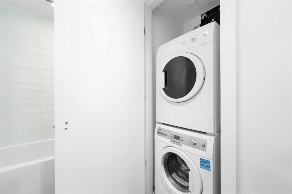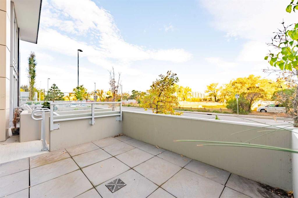 Welcome to Unit 103 at Avenue West End — a rare multi-level townhouse-style condominium offering a perfect blend of luxury, functionality, and downtown sophistication. Boasting 1,139 sq. ft. of modern living space, this stunning 2-bedroom plus den, 2.5-bathroom home features soaring floor-to-ceiling windows that flood the space with natural light and highlight the contemporary open-concept design.The sleek kitchen showcases stainless steel appliances, quartz countertops, and ample cabinetry, flowing seamlessly into the spacious living area — ideal for entertaining or relaxing. Enjoy year-round comfort with central air conditioning and sleek roll-up blinds for privacy and style. Upstairs, both bedrooms are generously sized, with the primary suite offering a private ensuite and large closet space.Step outside to your enclosed front patio, perfect for morning coffee or evening gatherings. This pet-friendly building is rich in amenities, including a fully equipped fitness centre, dog wash station, bicycle workshop, 24-hour concierge and security, plus a titled storage unit. You’ll also appreciate the convenience of two titled underground parking stalls and in-suite laundry. Located in the prestigious Avenue West End, you’re just steps from the Bow River pathways, LRT, shopping, restaurants, and everything downtown Calgary has to offer. Luxury. Location. Lifestyle. Unit 103 is truly urban living at its finest.