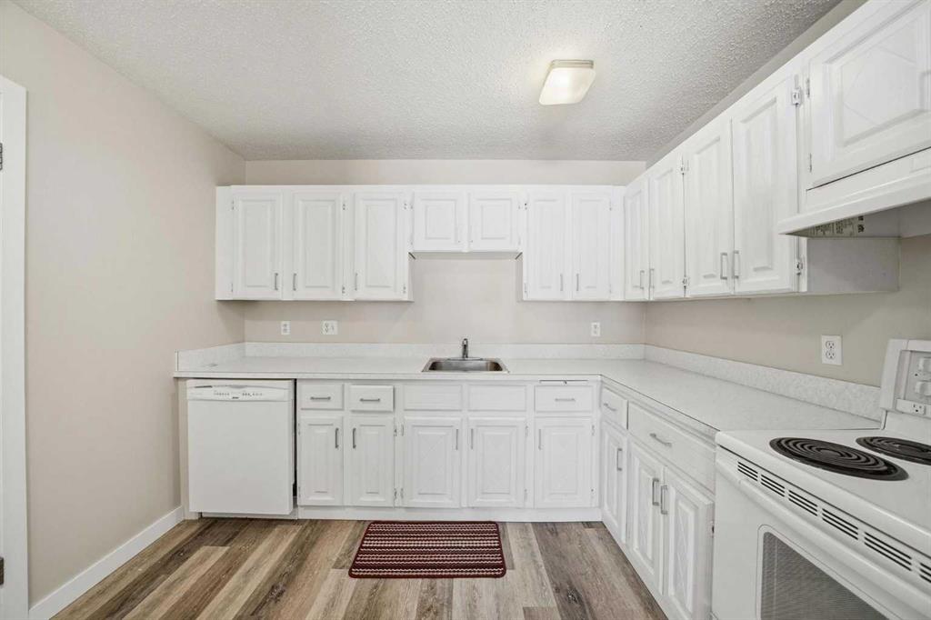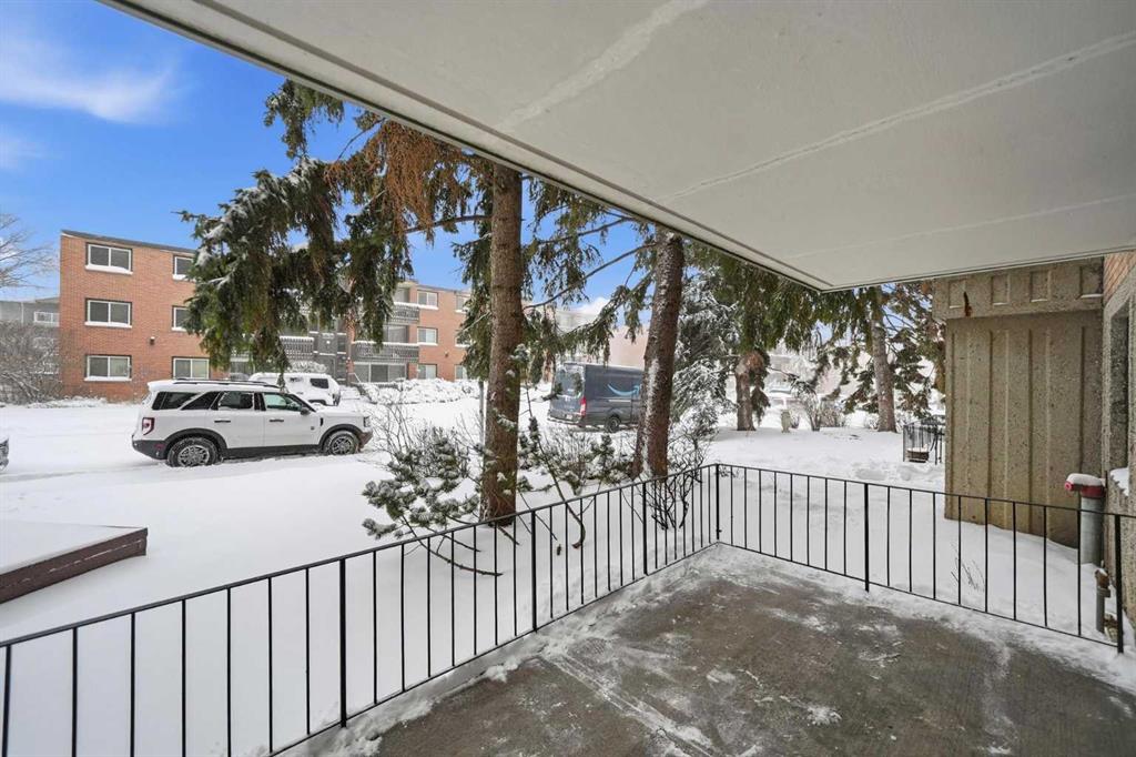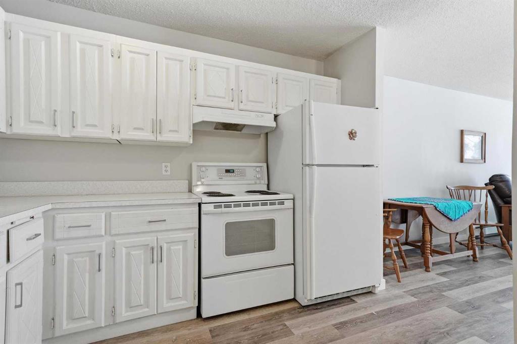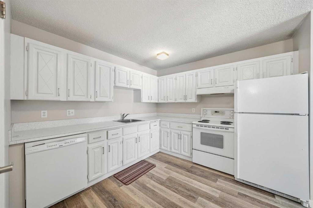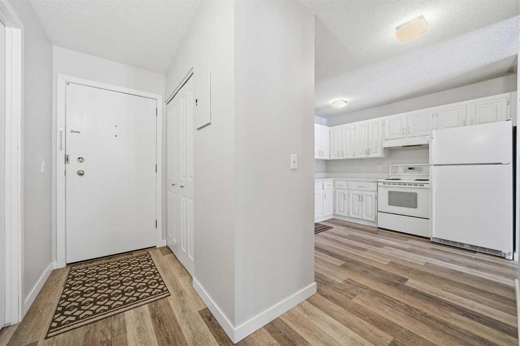 Welcome to Chinook Manor, A 40+ Age Restricted Building. This bright and spacious 1-bedroom, 1-bathroom main floor unit offers both comfort and convenience. With 617 sq. ft. of well-designed living space, this north facing home features a functional layout, including a fully equipped kitchen and a generous living room with sliding glass doors that lead directly to a large private patio with easy ground-level access. Recent updates include luxury vinyl plank flooring and fresh paint, giving the home a clean and refreshed feel while still offering an excellent opportunity for future customization. The kitchen is equipped with well-maintained cabinetry, recently refreshed with a modern white finish, along with matching white appliances including a refrigerator, stove, and dishwasher, all in good working order. Large windows throughout the unit allow for plenty of natural light. Residents enjoy access to a range of building amenities, including a fitness room, billiards room, social/party room, shared laundry facilities, hobby workshop and storage units. Please note that laundry is not in-suite. Underground parking may be available subject to availability, in addition to surface parking and ample street parking. There is a strict no-pet policy. Ideally suited for down-sizers or investors, this property presents strong potential as a rental or renovation project. Conveniently located by near major routes McLeod trail, Chinook mall, C-train, Elbow Drive, grocery stores, restaurants and bus routes. This is a fantastic opportunity to own in a well-connected area.