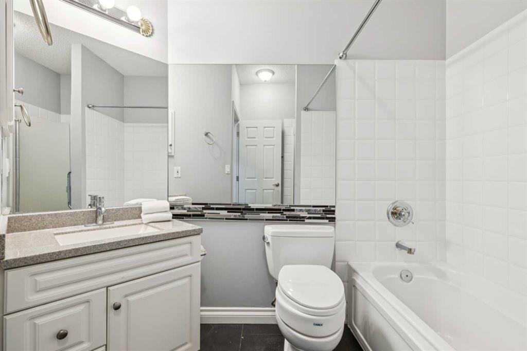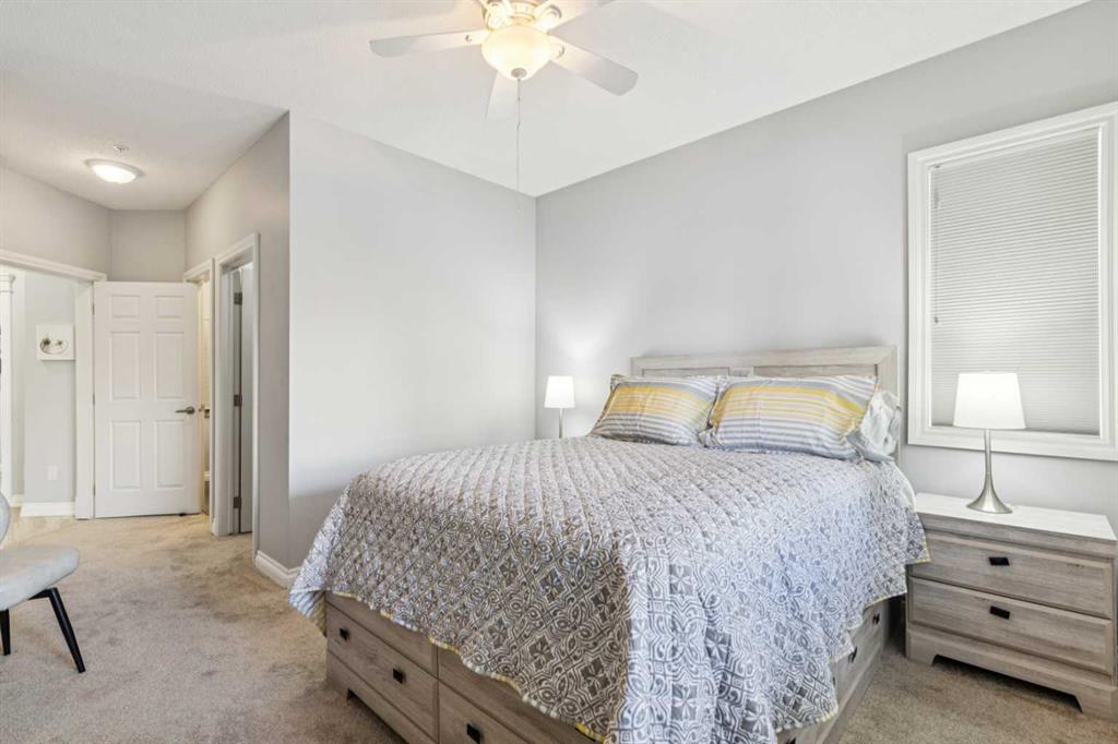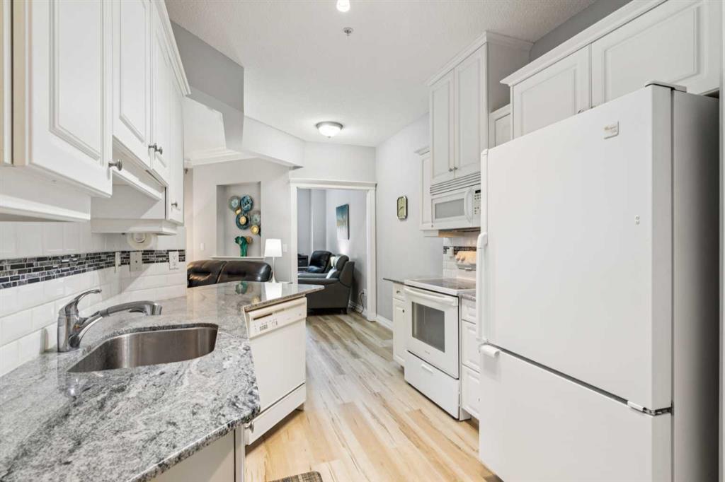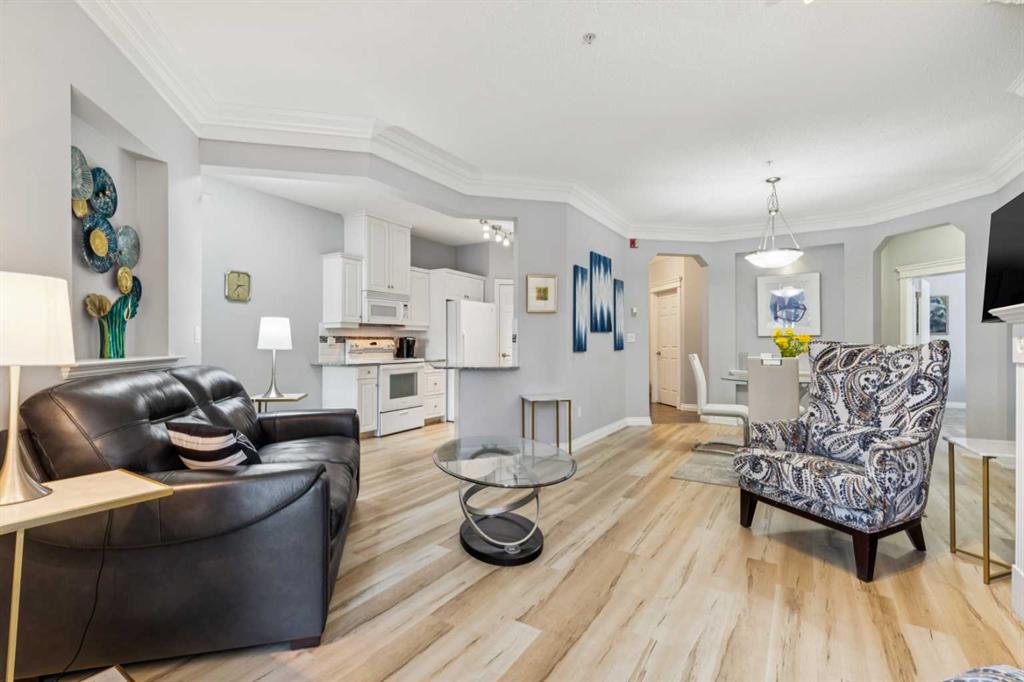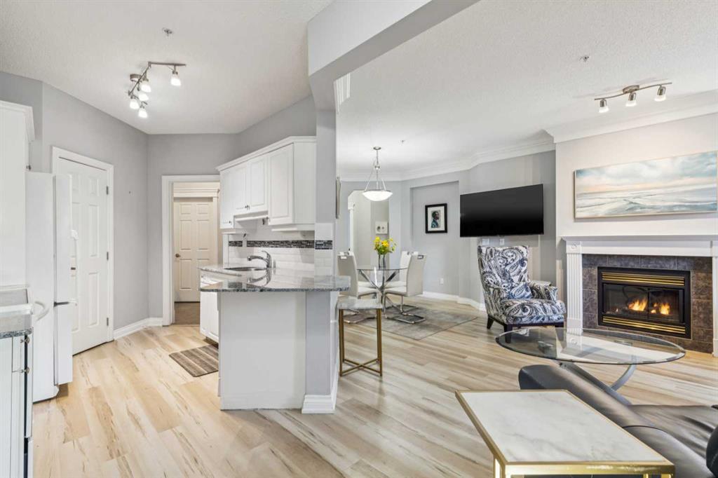 Welcome to the Chateaux of Bonavista, where this bright corner ground-floor condo delivers space, comfort, and flexibility in a well-managed complex. A generous foyer with a large closet offers an inviting entrance before leading into the functional kitchen, complete with full-size appliances, garburator, ample cabinetry, and a full pantry for excellent storage. The spacious dining area anchors the home and flows effortlessly into the living room, where a gas fireplace adds warmth and sliding doors open to a large private patio. Clean, fresh flooring and infloor heating throughout enhance the home’s bright, well-cared-for feel. Tucked behind the main living area is a versatile flex room—ideal for a home office, hobby space, or reading nook. A hallway leads to the private sleeping quarters, beginning with a full bathroom for guests, followed by a generous secondary bedroom with great natural light and closet space. The primary suite features a walk-in closet, a private 3-piece ensuite, and peaceful views overlooking the patio and green space. The outdoor patio is a standout feature, offering a fenced, landscaped area that connects directly to the condo’s green space—perfect for relaxing, entertaining, or giving young ones a safe place to play. This home is completed with two deeded underground parking stalls, a large storage locker, underground guest parking, and an excellent reserve fund. Located in the heart of Lake Bonavista, residents enjoy community atmosphere, mature trees, top-rated schools, nearby shopping and dining, and easy access to major roadways—making this one of Calgary’s most desirable communities to call home.