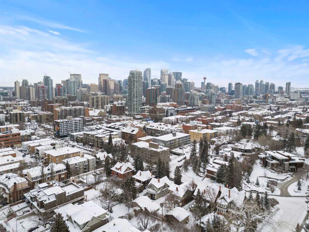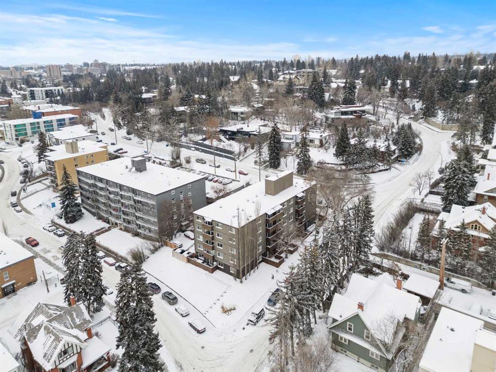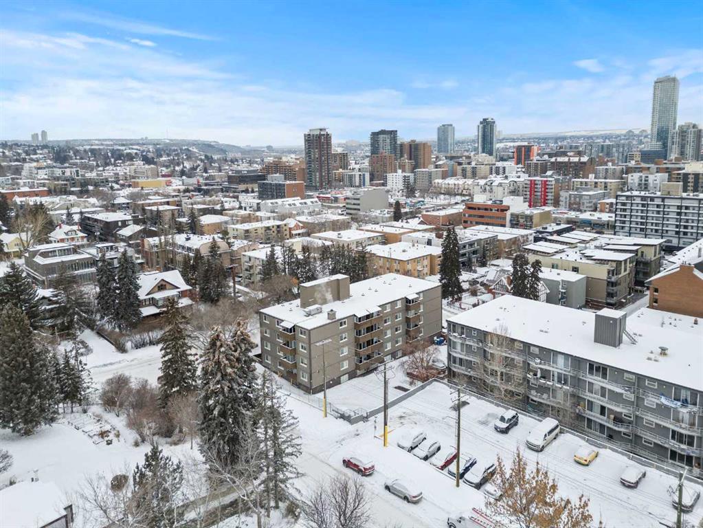 Welcome to this beautifully updated 1-bedroom condo tucked away in a solid concrete building in the heart of Lower Mount Royal. You’ll love being just steps from vibrant 17th Avenue, with its incredible mix of restaurants, cafés, and shops — yet still enjoying a quiet, peaceful place to call home. Whether you prefer biking or walking, downtown, the Bow River, and Calgary’s scenic pathway system are all easily within reach. Inside, the open-concept layout feels bright and welcoming, highlighted by gorgeous hardwood floors throughout. The kitchen is both stylish and functional, featuring an eating bar, stainless steel appliances, concrete countertops, and crisp white cabinetry. The spacious bedroom offers a walk-in closet, while the updated 4-piece bathroom carries the same clean, modern aesthetic. You’ll also appreciate the convenience of in-suite laundry, with an additional shared laundry room available in the building. Parking is easy with ample street parking, resident and visitor permit options, and a dedicated bike storage room conveniently located on the main level. This well-managed building has seen important upgrades, including a newer torch-down roof and an energy-efficient 6-stage boiler — all helping keep condo fees affordable. Immaculately maintained and perfectly located, this is a fantastic opportunity in Lower Mount Royal — ideal for first-time buyers or investors alike. Contact me today to arrange your private showing!