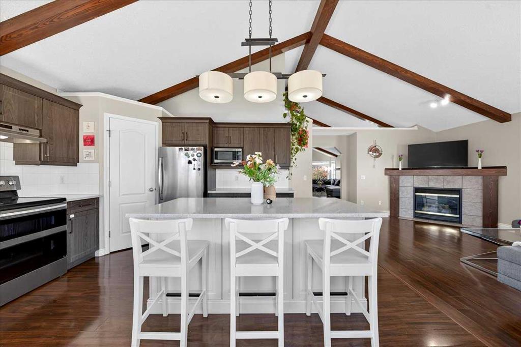 Welcome to this beautifully upgraded and spacious bi-level home, perfectly situated on a sunny corner lot in a family-friendly neighbourhood of Citadel With over 2,500 sq.ft. of total developed space, this home offers an exceptional layout, including a legal walk-out basement suite — ideal for extended family or income potential. Step inside to soaring vaulted ceilings with custom Fir box beams, creating warmth and architectural charm. The main floor features a bright and open living room, a formal dining room, and a cozy family room with a corner gas fireplace—a perfect spot for relaxing or entertaining. Plenty of natural lights flowing through big windows. The upgraded kitchen is both functional and stylish, with quartz countertops, a large island with seating for four, soft-close cabinets and drawers, stainless steel appliances. Step outside to your beautifully landscaped backyard, complete with a pressure-treated deck with privacy screens, mature bushes, perennials, and fruit trees including apples. The main level includes three bedrooms, while the primary suite is tucked away on its own upper level, offering extra privacy. The spacious retreat features a walk-in closet and a 4-piece en-suite bathroom. The fully finished, legal walk-out basement SUITE adds tremendous flexibility, complete with two additional bedrooms, a full 3-piece bath, a den/storage room, and a large rec room. A dedicated laundry area with upper cabinetry is located in the mechanical room. Additional upgrades and features include : Central Air Conditioning, Newer High-Efficiency Furnace (2018), No-String Cordless Blinds, Insulated Garage with Updated Thermal Door & Opener, Corner Lot with Extra Natural Light & Space. Ideally located within walking distance to schools, parks, and transit, with quick access to Stoney Trail, Crowchild Trail, and nearby shopping centers. Recently LEGALIZED basement SUITE adds charm and functionality of this well-loved home—making it a perfect choice for your next chapter. Check out the virtual link for more information.